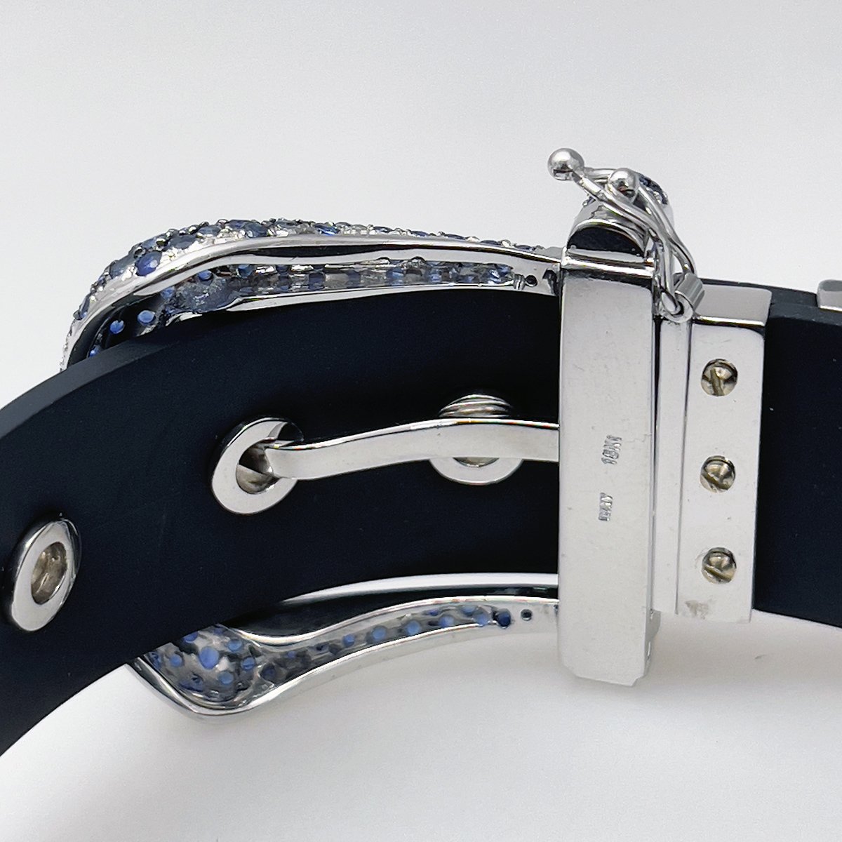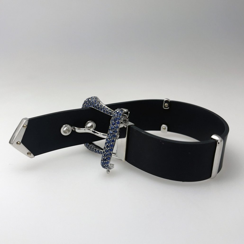 Tags Blue Sapphire Encrusted Buckle, Buckle Bracelet, Contemporary, Rubber Bracelet, Trendy