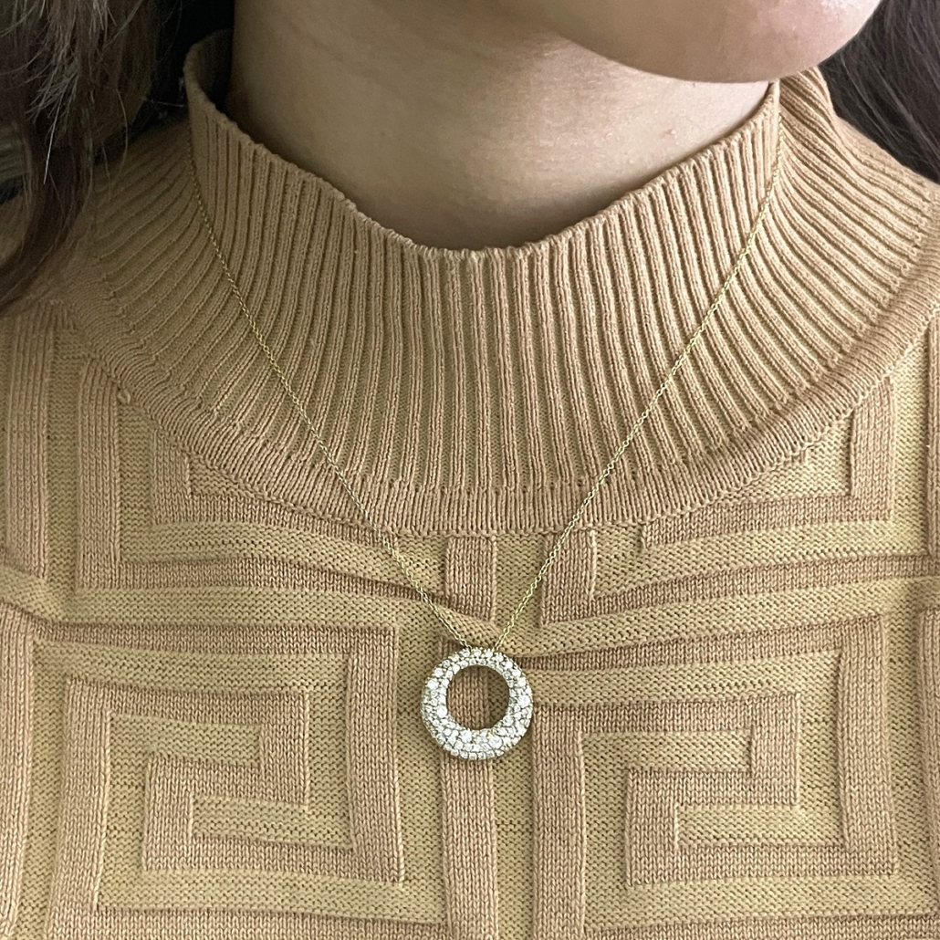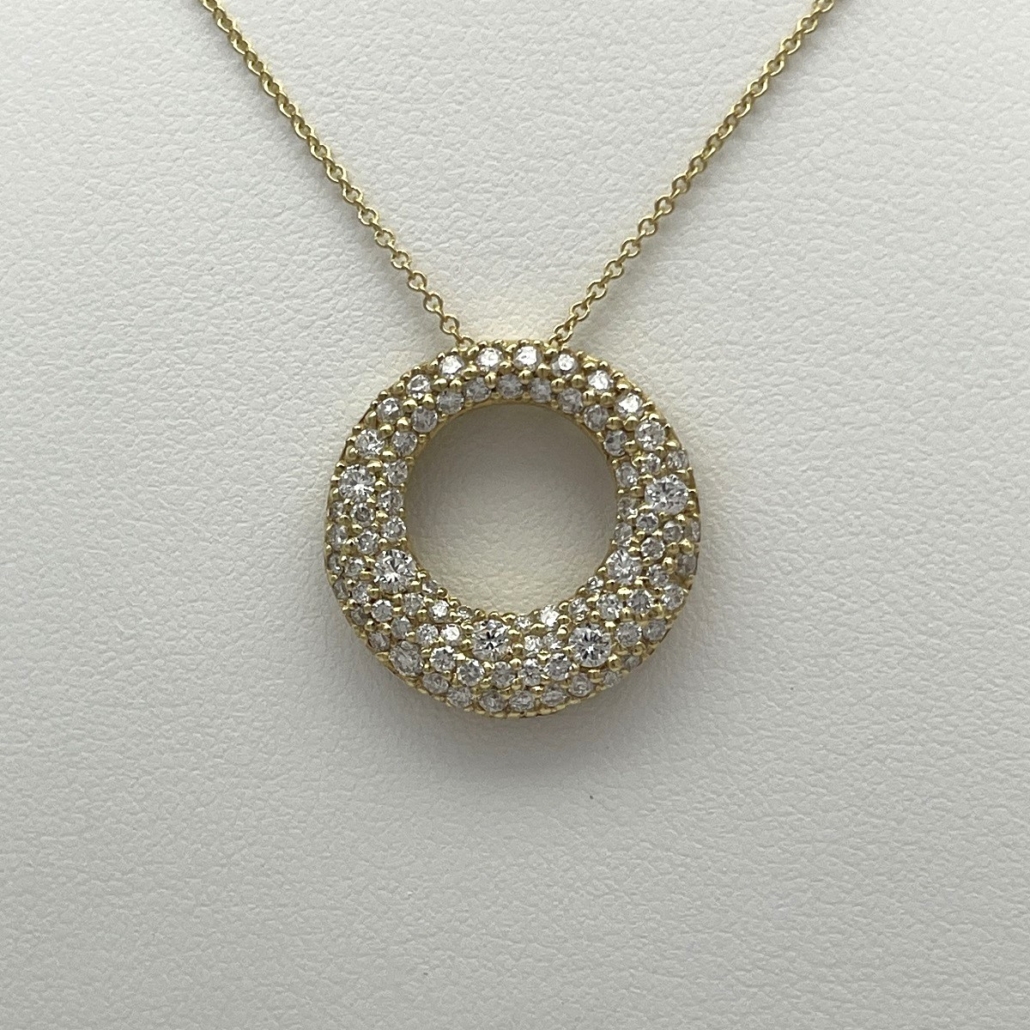 Tags 14k Yellow, Circle, Cluster, Diamond, Fancy, Necklace, pave, Pendant, Slide