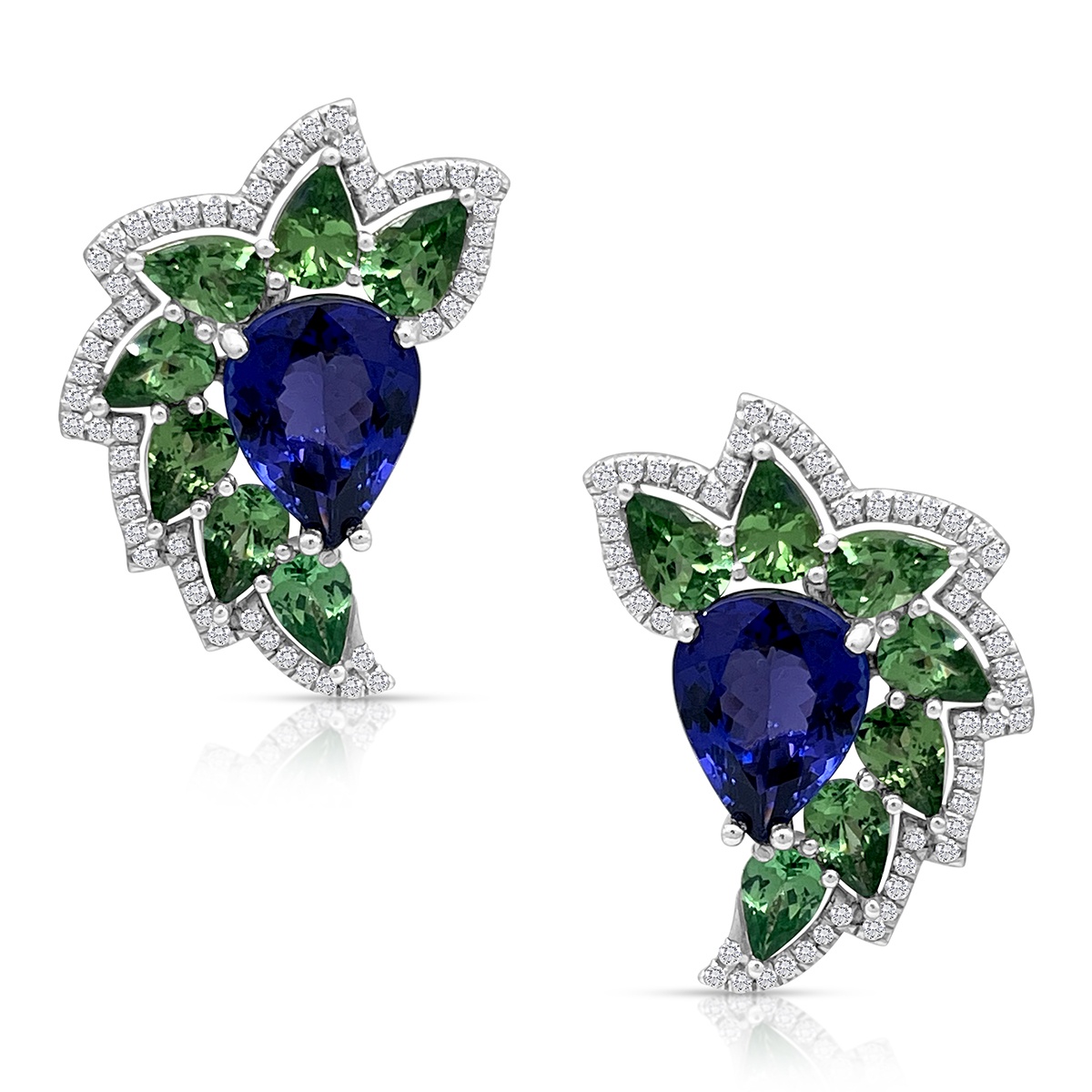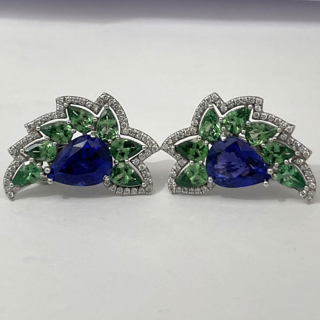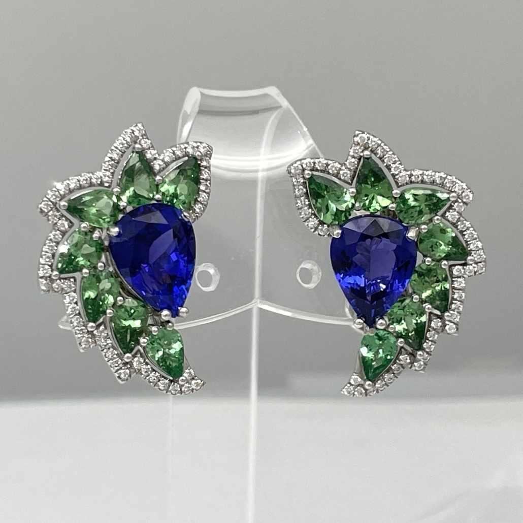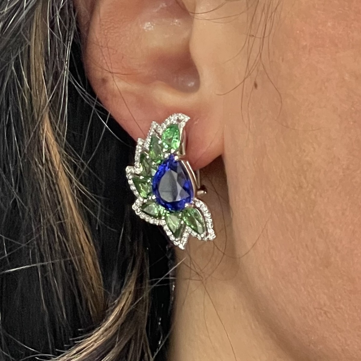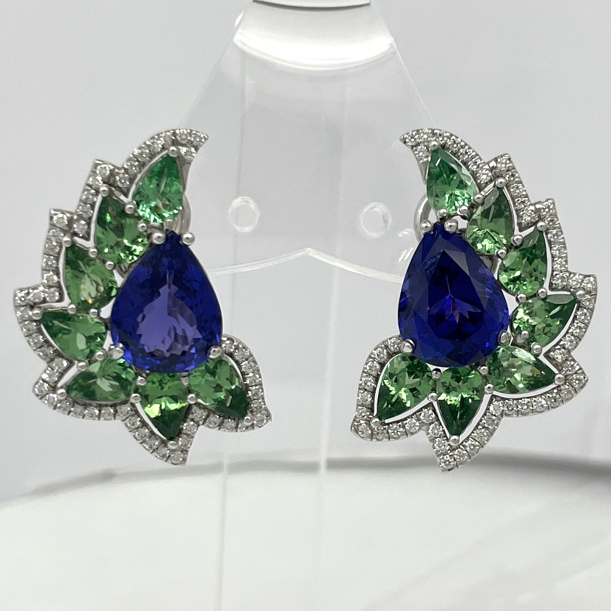 Tags 18k White, Blue, Cluster, Desire, Diamond, earrings, Elegant, Fancy, garnet, Garnet Earrings, gemstone, Green, Green Garnet Earrings, Green Garnet Jewelry, Green Garnets, Majestic, Omega Backs, One-Of-A-Kind, Pear Shaped Cut, tanzanite, Tanzanite Earrings
