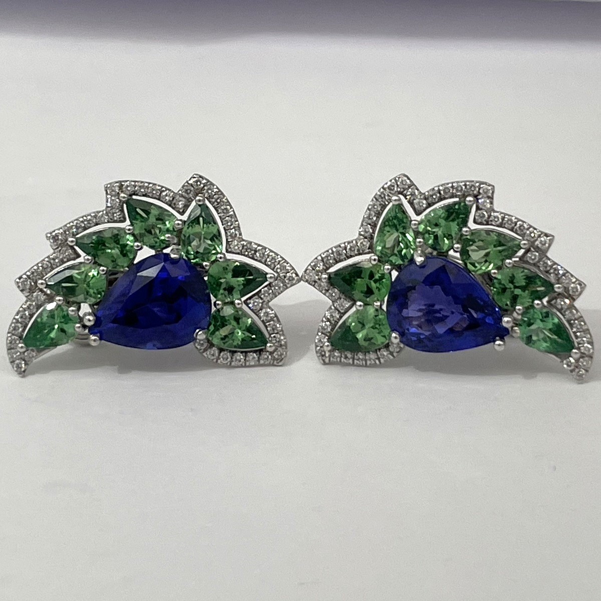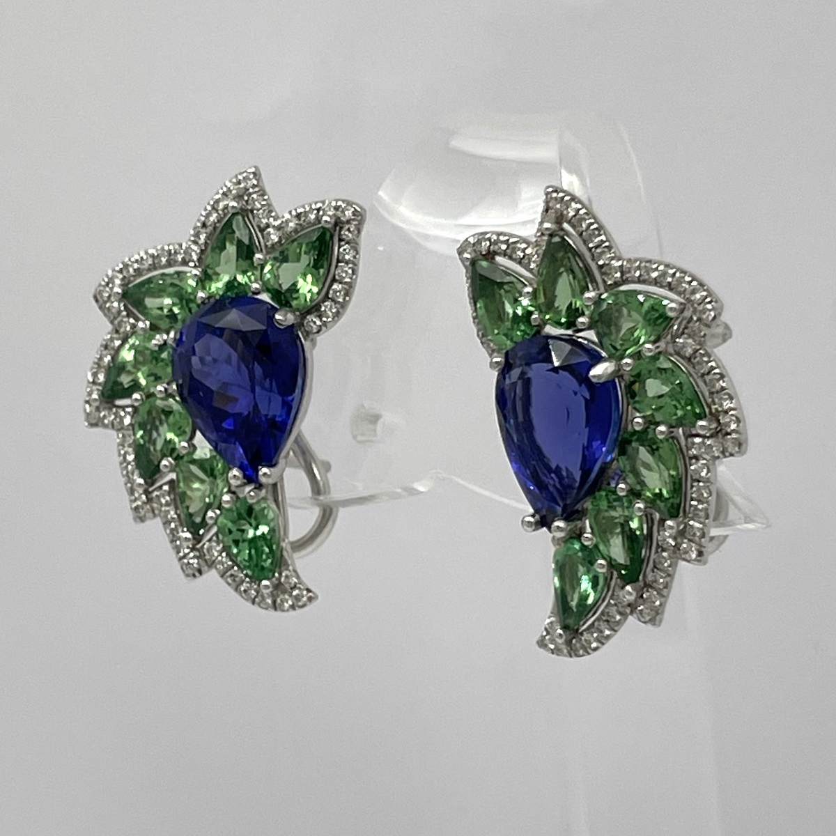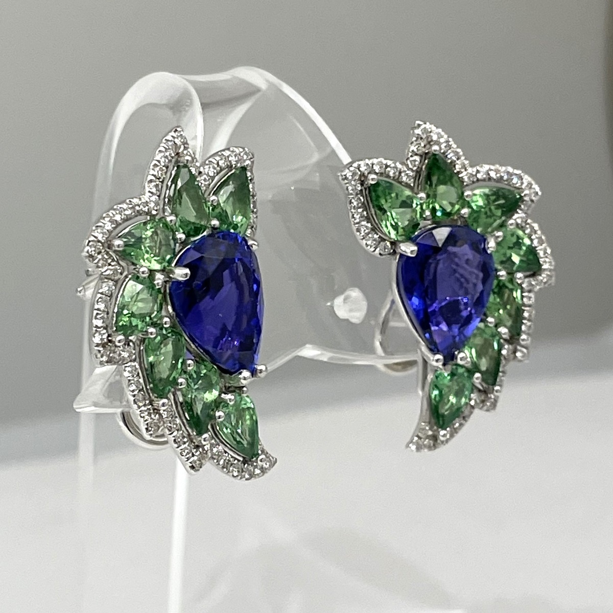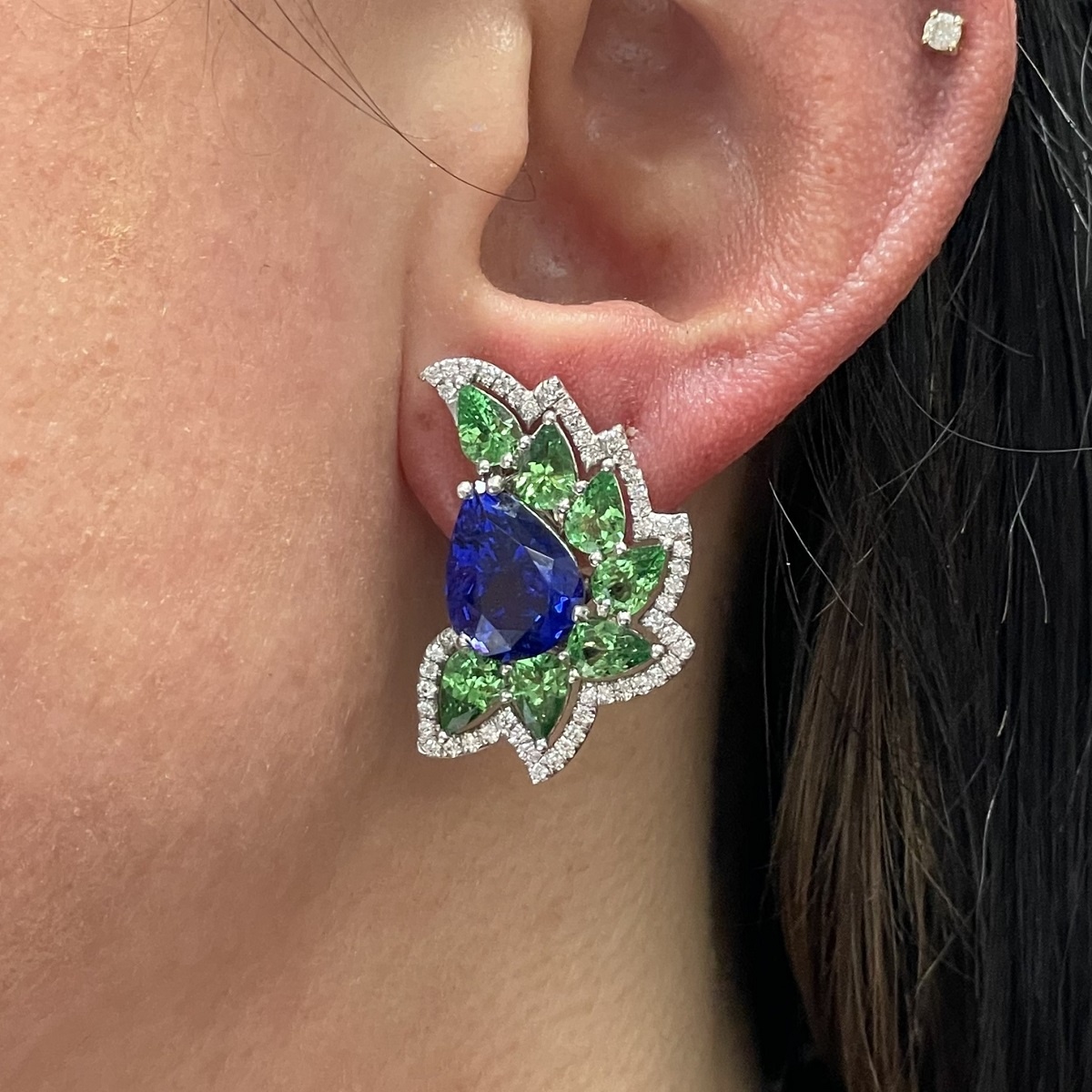 Tags 18k White, Blue, Cluster, Desire, Diamond, earrings, Elegant, Fancy, garnet, Garnet Earrings, gemstone, Green, Green Garnet Earrings, Green Garnet Jewelry, Green Garnets, Majestic, Omega Backs, One-Of-A-Kind, Pear Shaped Cut, tanzanite, Tanzanite Earrings