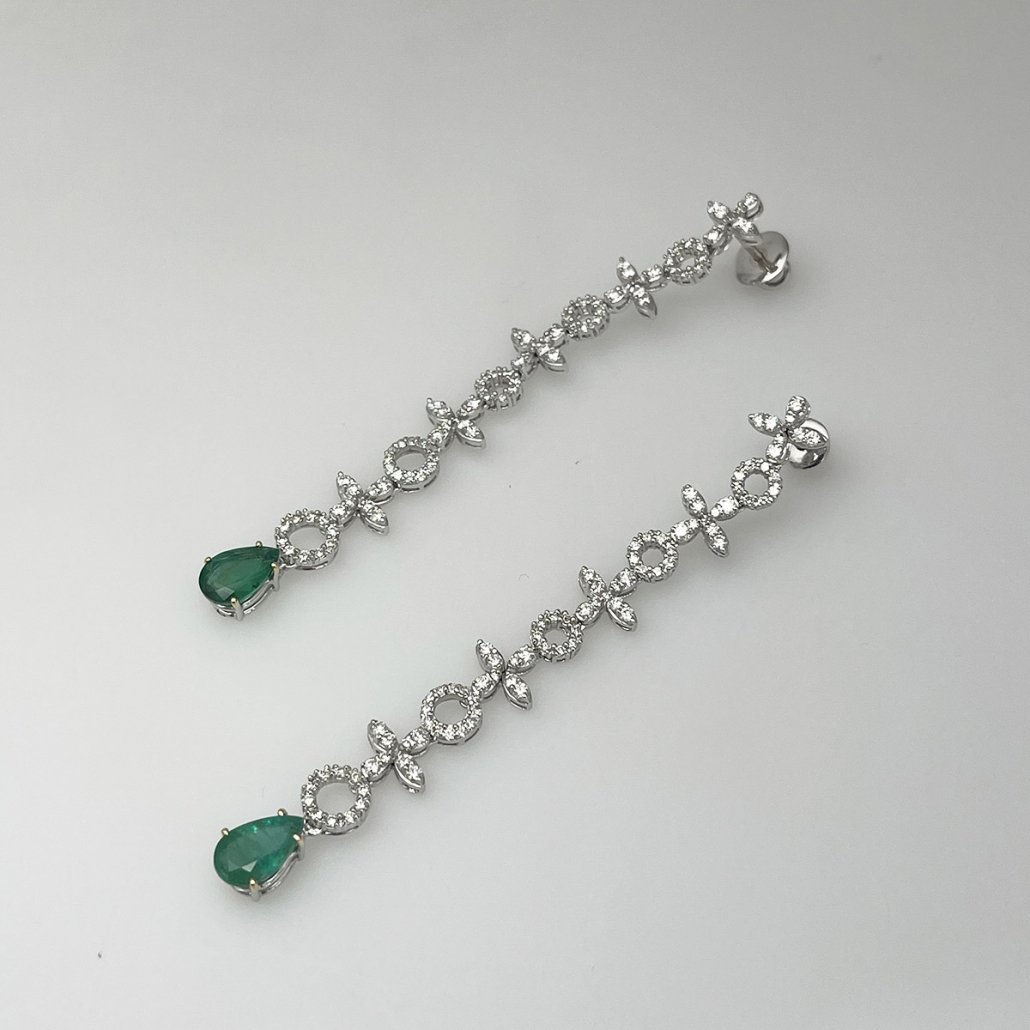 Categories 18K White, Dangles, Diamonds, Earrings, Emerald, Fine Jewelry, Gemstone Earrings, Gemstones, Master Earring, Master Stone, Master Stone 2, Ready to Buy