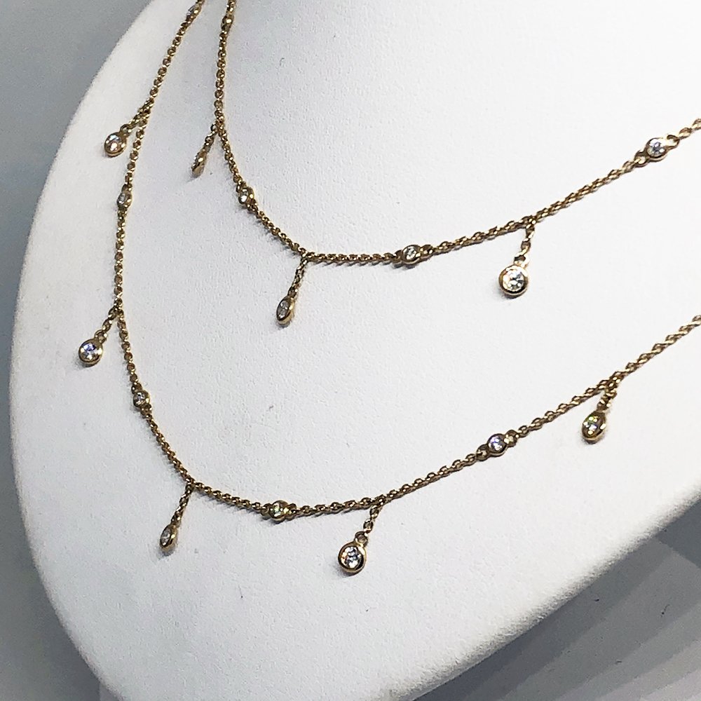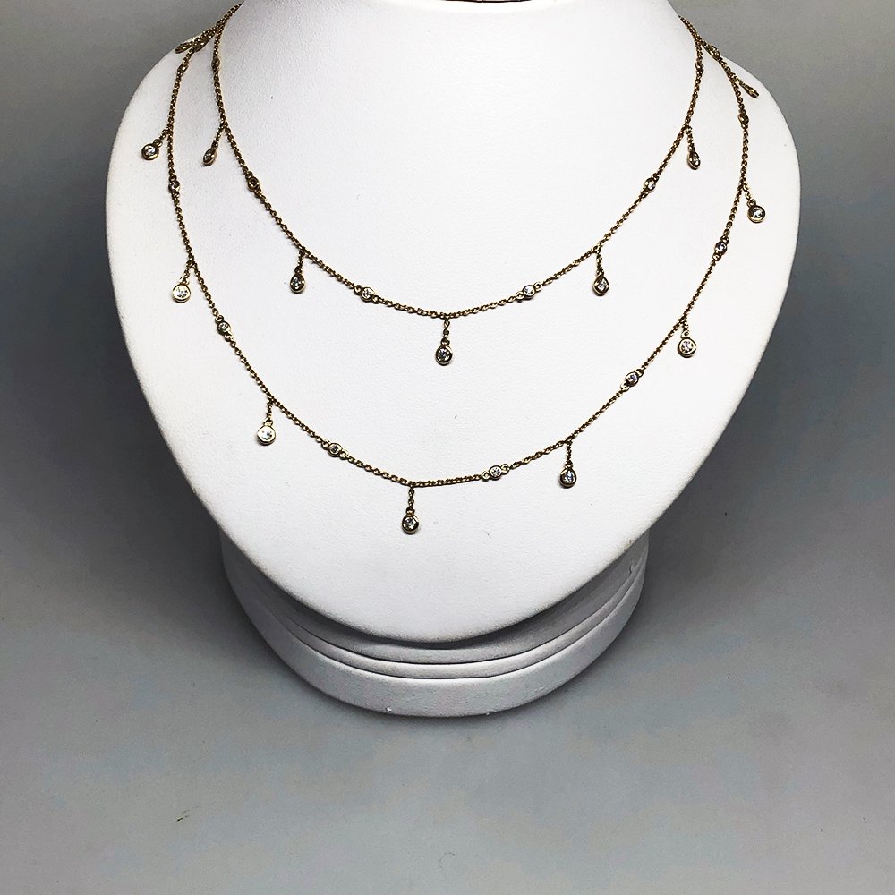 Tags 14K Yellow Gold, Dangling Diamonds, Diamonds By The Yard, Fancy Diamond Necklace, Ready to Purchase