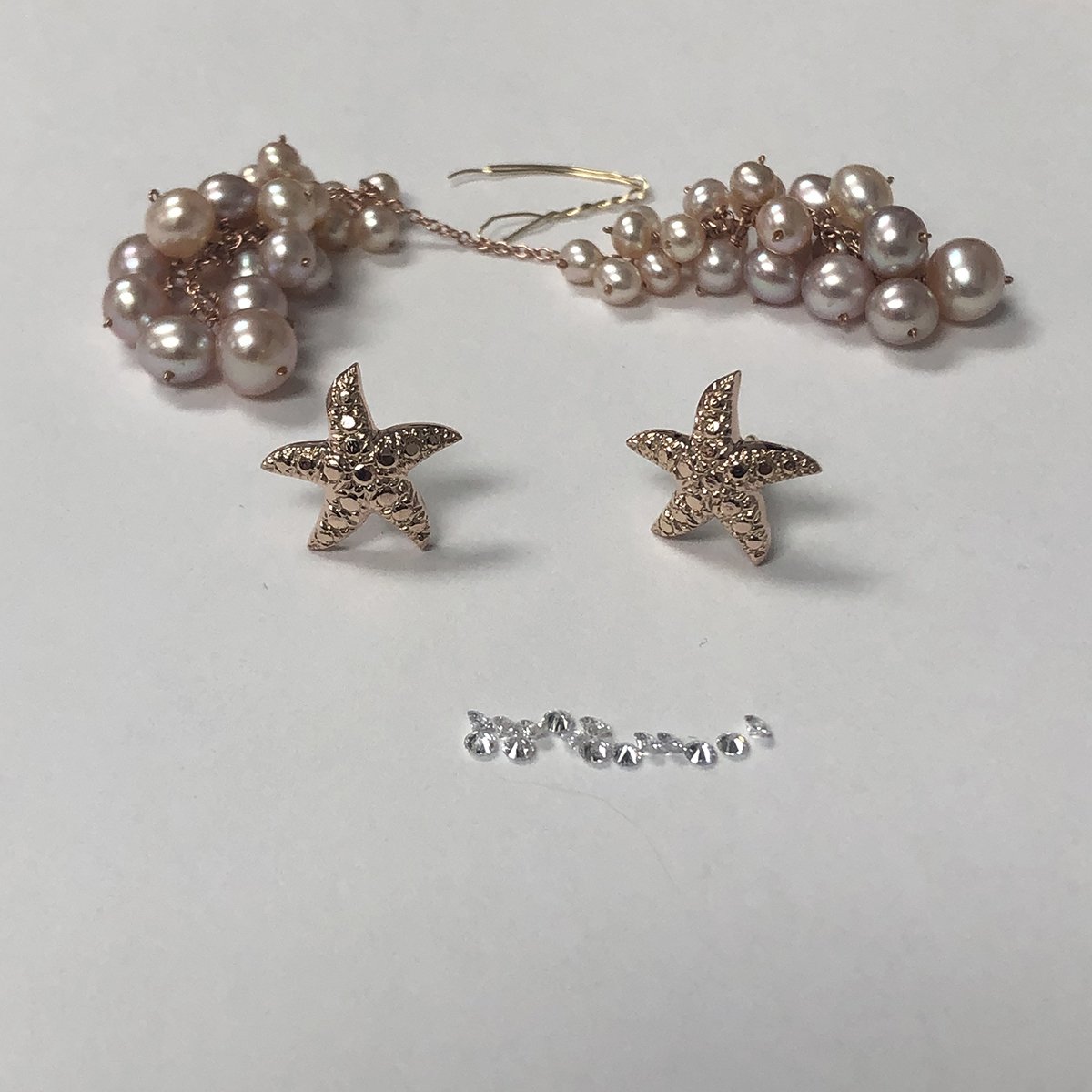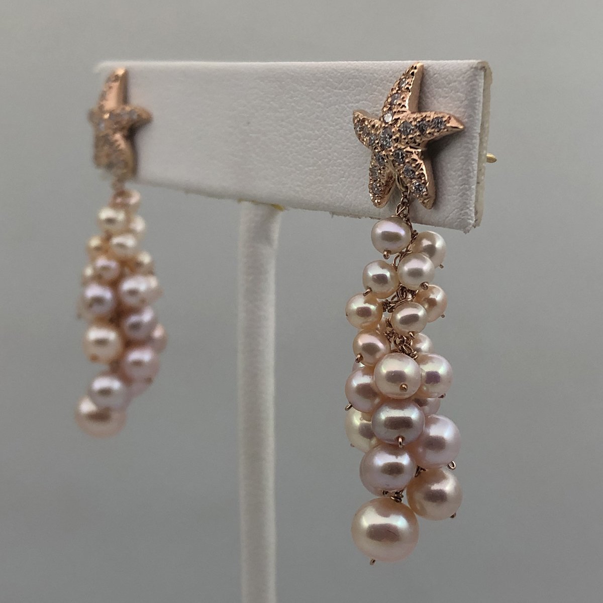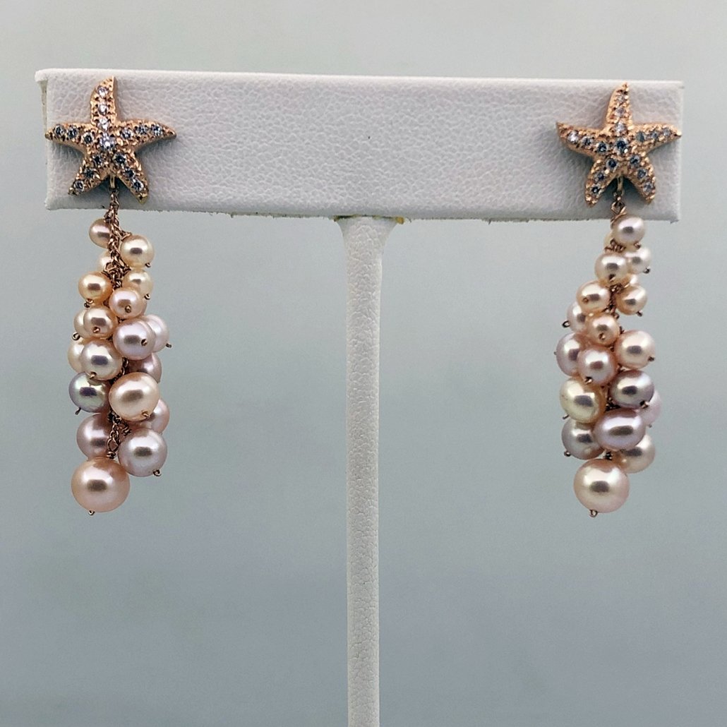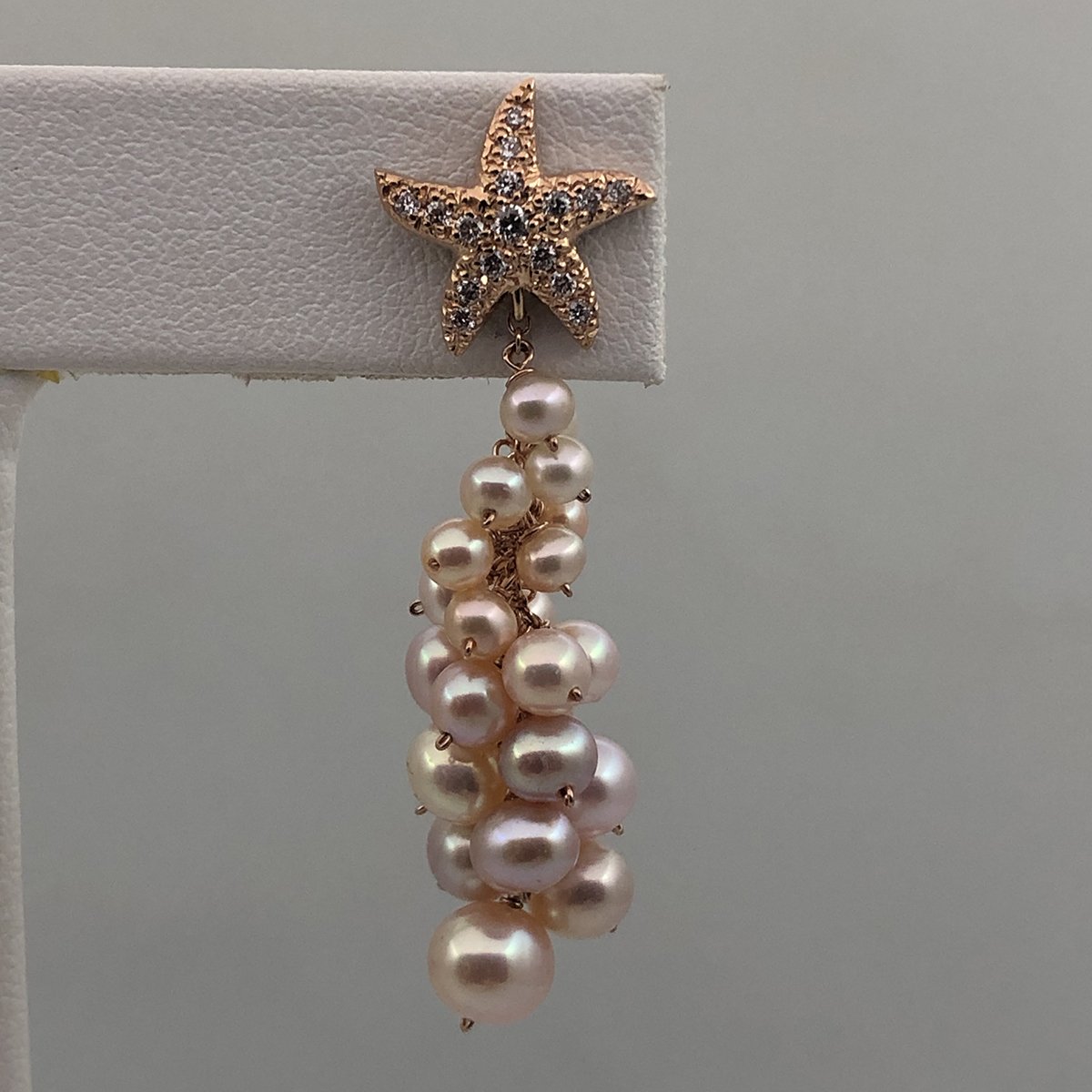Tags 14k Pink, 14k Rose, Beach, Cluster, Dangle, Diamond, earrings, Fancy, Hanging, Ocean, Pearl, Pink, Sea, Star, Starfish, Studs