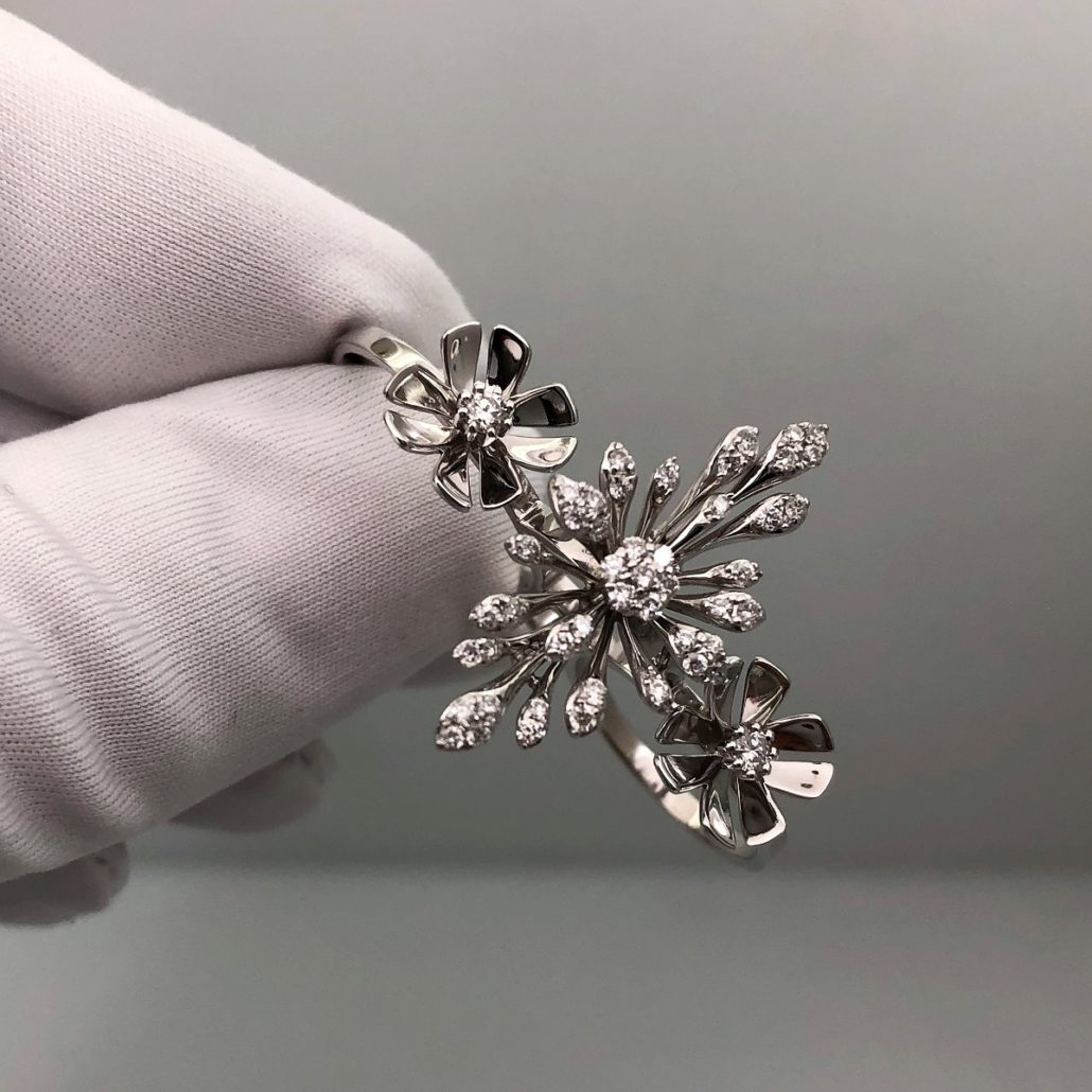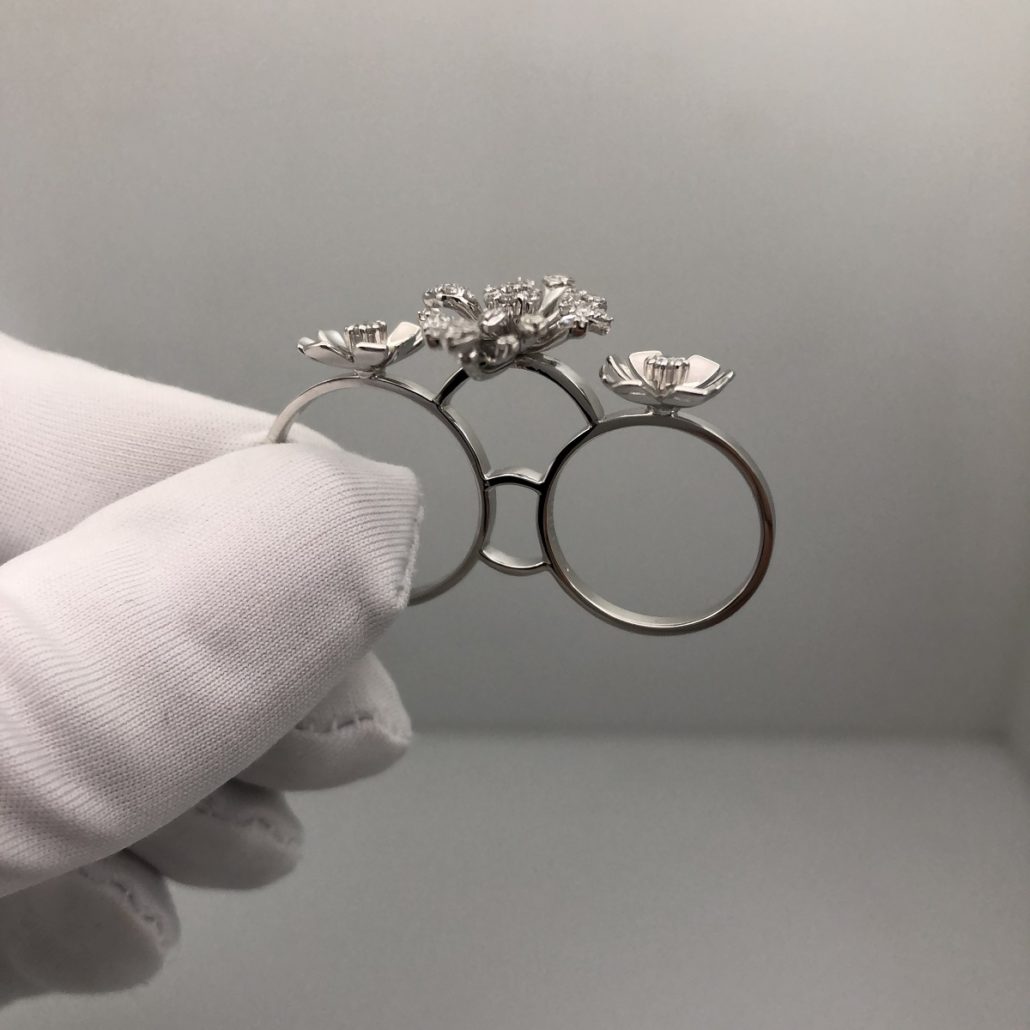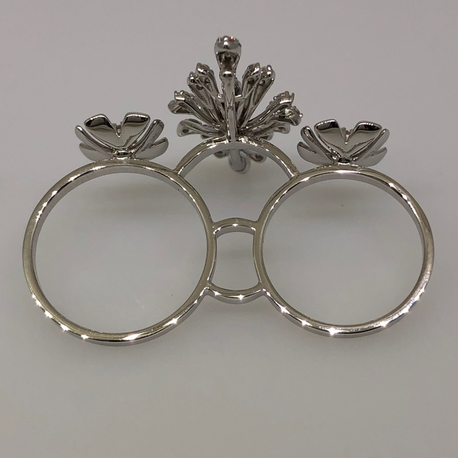 Tags Custom Made White Gold Ring, diamond custom floral design, Double Ring, floral design, Knuckle Ring, made in NYC, One-Of-A-Kind, Twin Ring, Two finger ring, Very Unique Ring