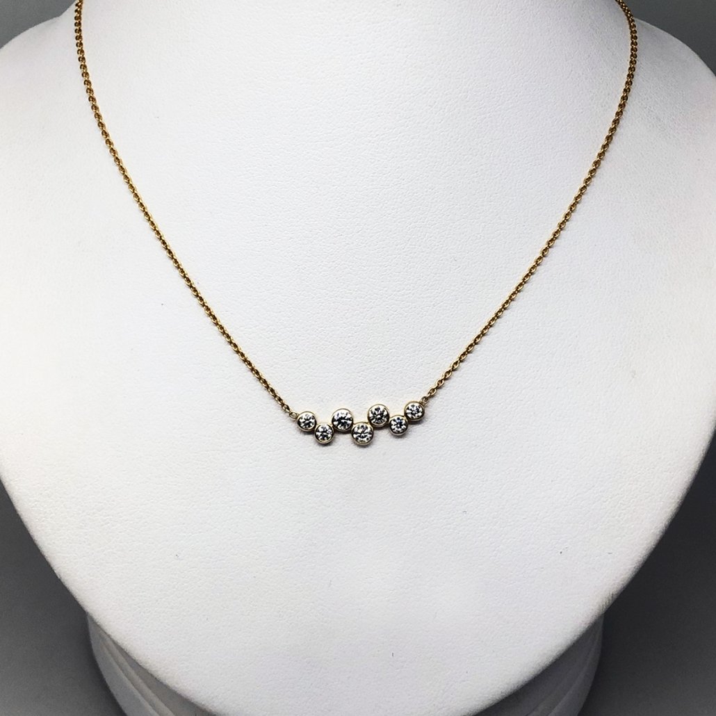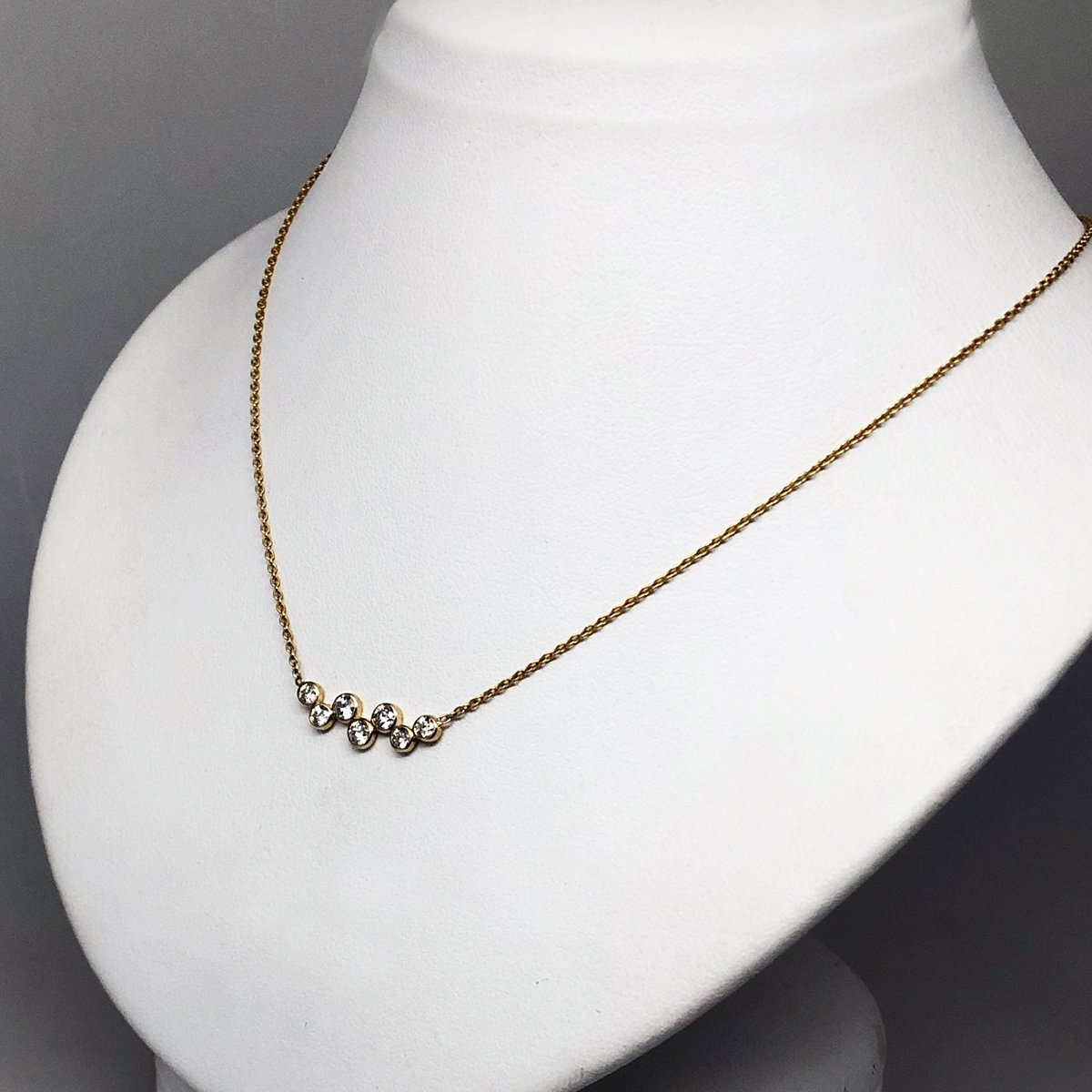 A bar of bezel-set diamonds add delicate shimmer and shine to this trendy necklace.