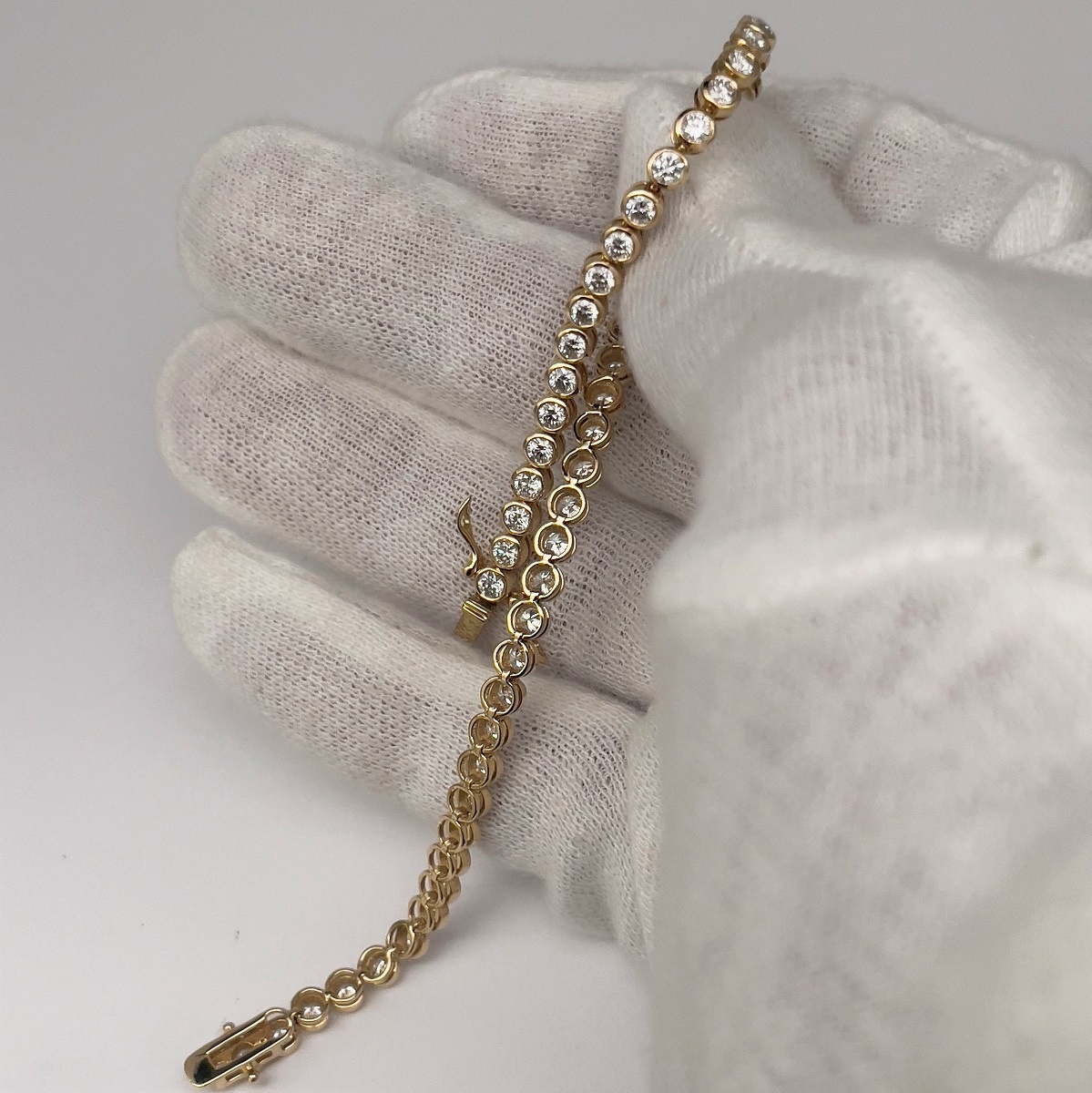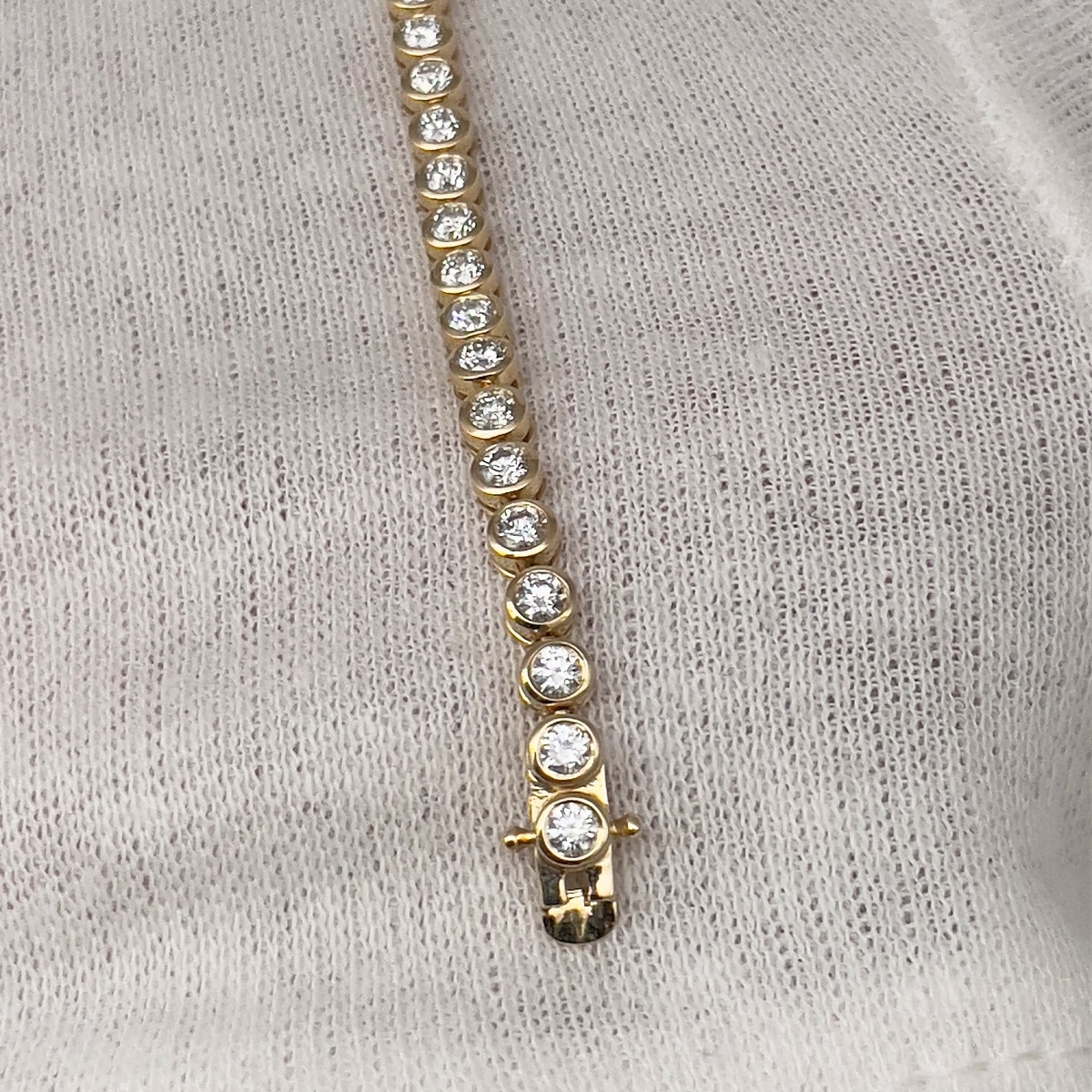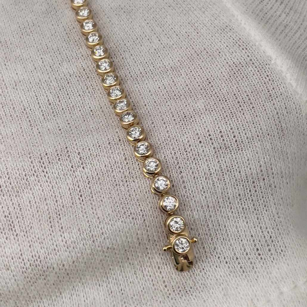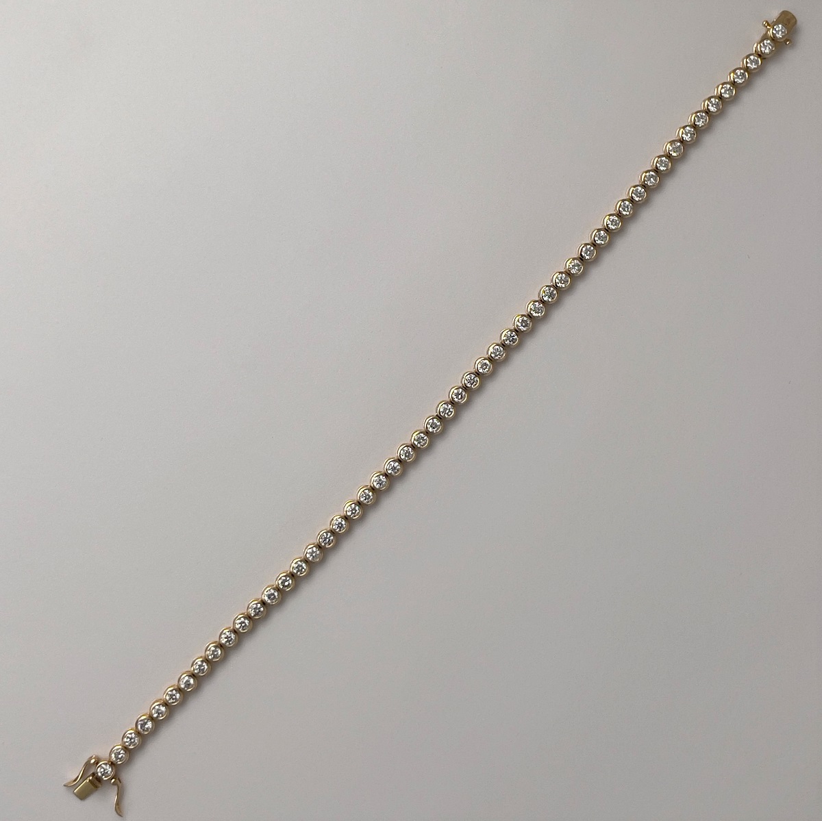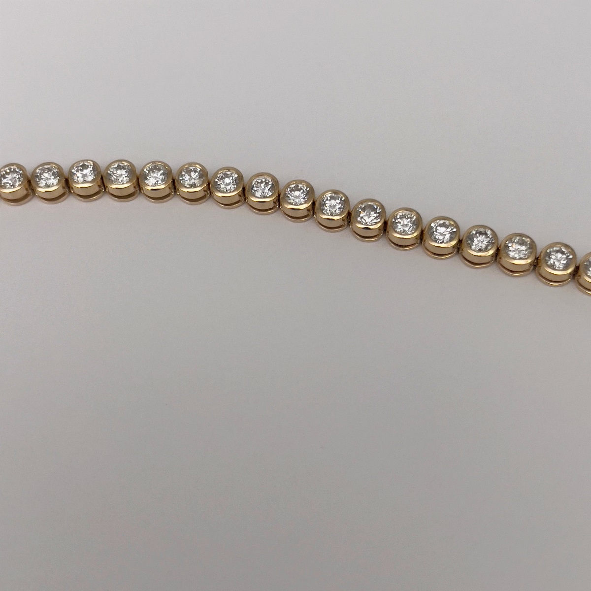 This Bracelet Is Made With 14k Yellow Gold And Natural Round Brilliant Diamonds. The Diamonds Are Bezel Set Side By Side In Open Airline Baskets.