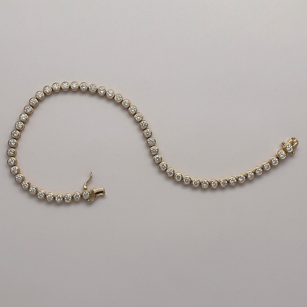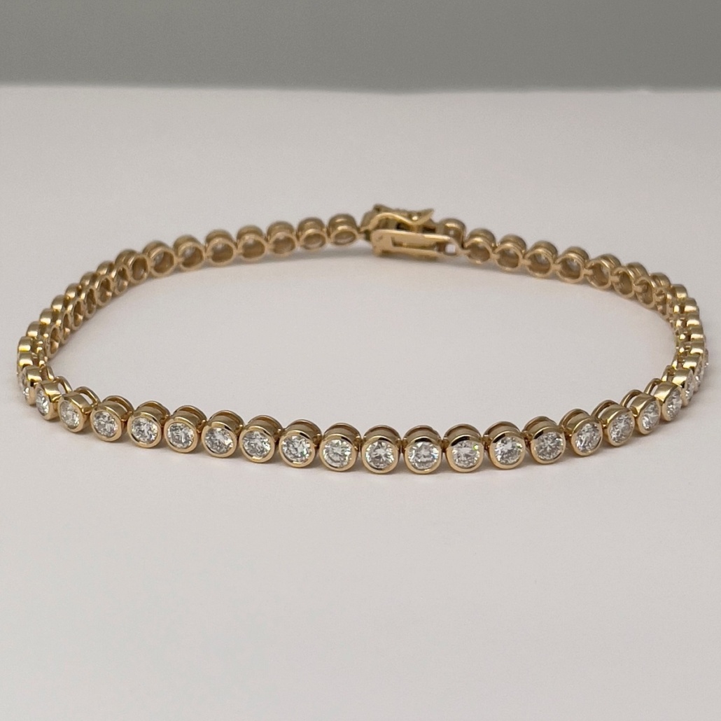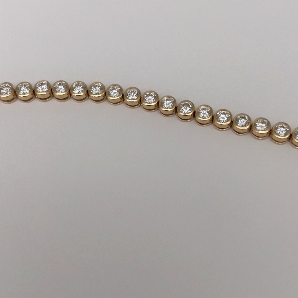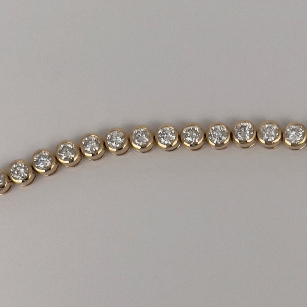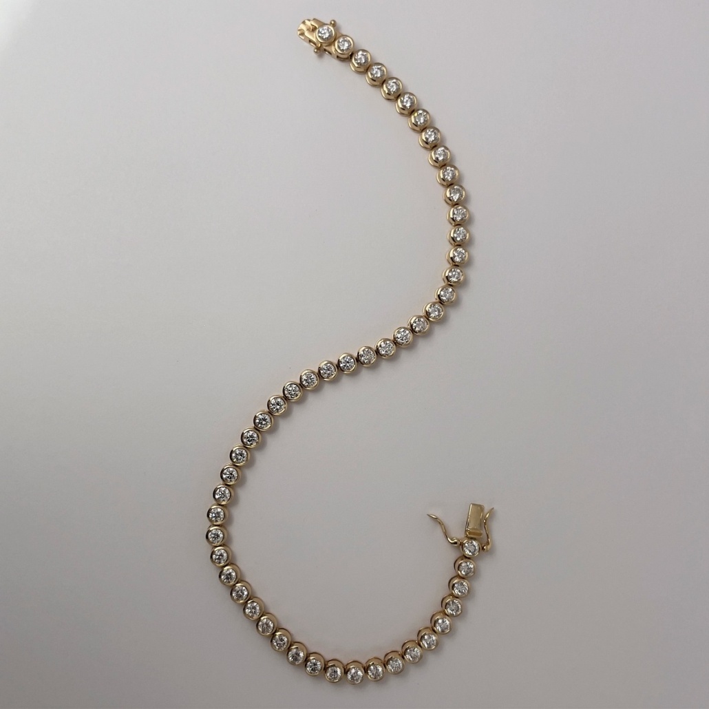 This Bracelet Is Made With 14k Yellow Gold And Natural Round Brilliant Diamonds. The Diamonds Are Bezel Set Side By Side In Open Airline Baskets.