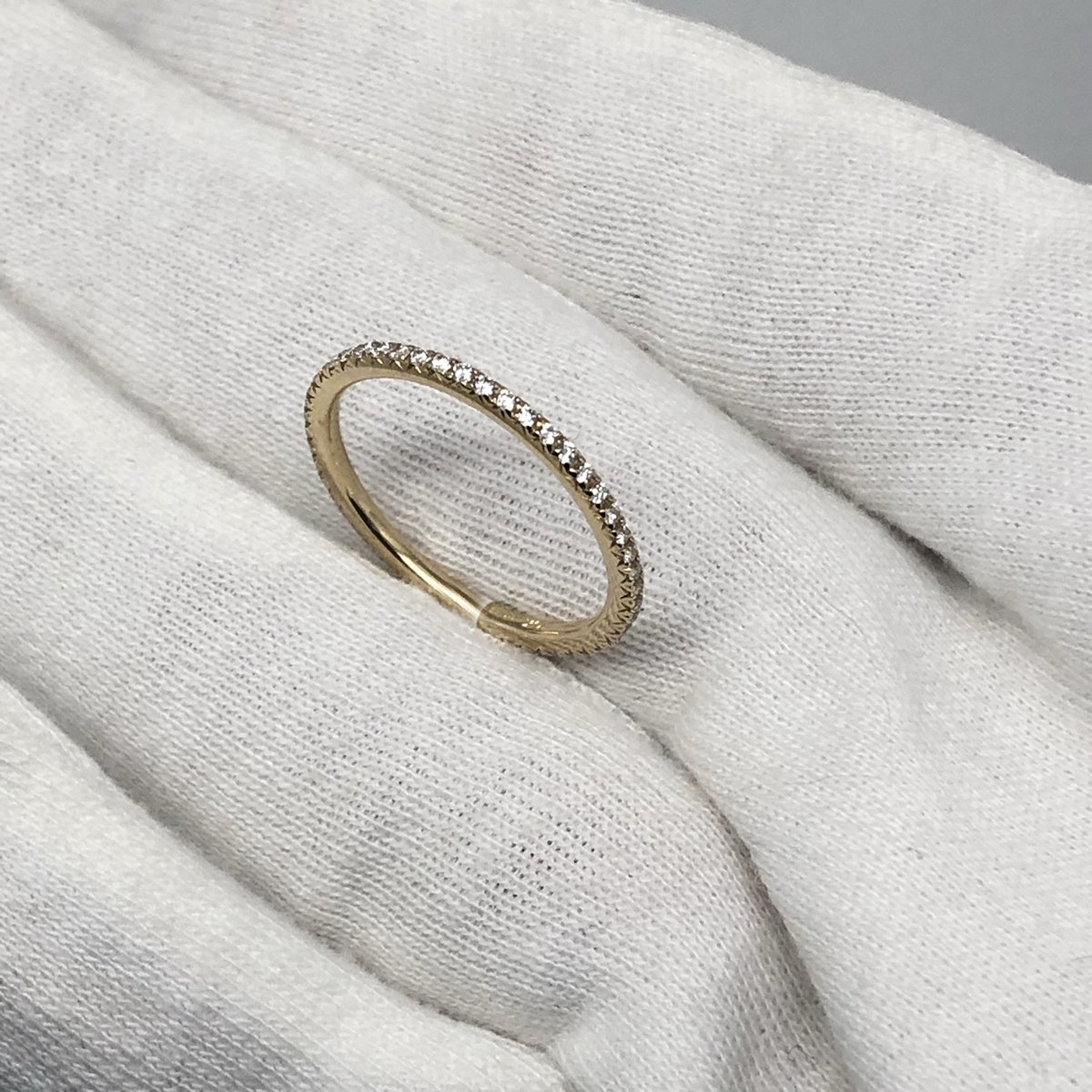 Dainty diamond eternity band is not just for weddings! This ring is the perfect accessory for delicate fingers, or as part of a stackable set.