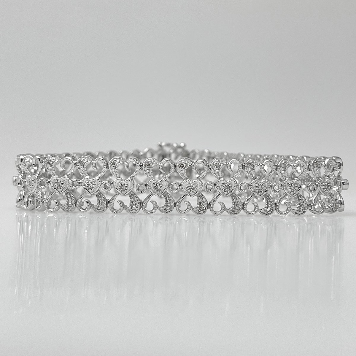 Tags Bracelet, Filigree, Fine Jewelry, Hear Design Bracelet, Heart Bracelet, Heart Design, Hearts, White Gold Bracelet