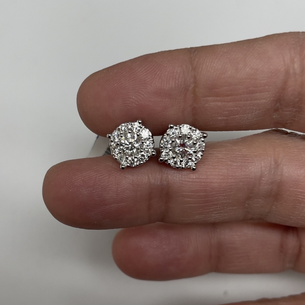 14k White Gold 9MM Diamond Halo Cluster Studs 2406-22