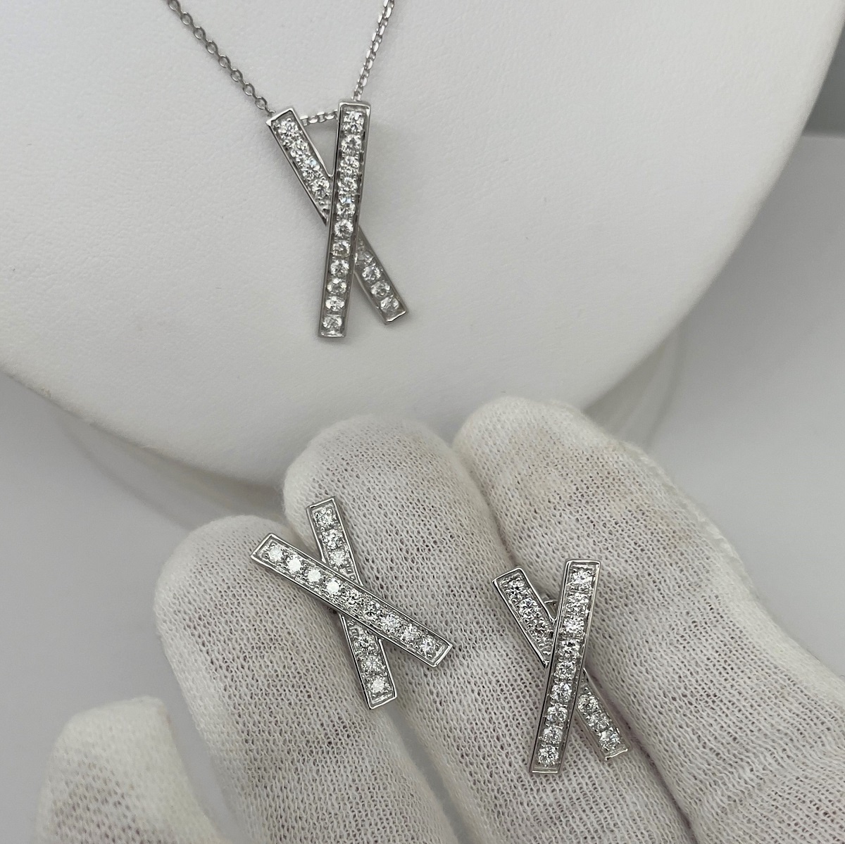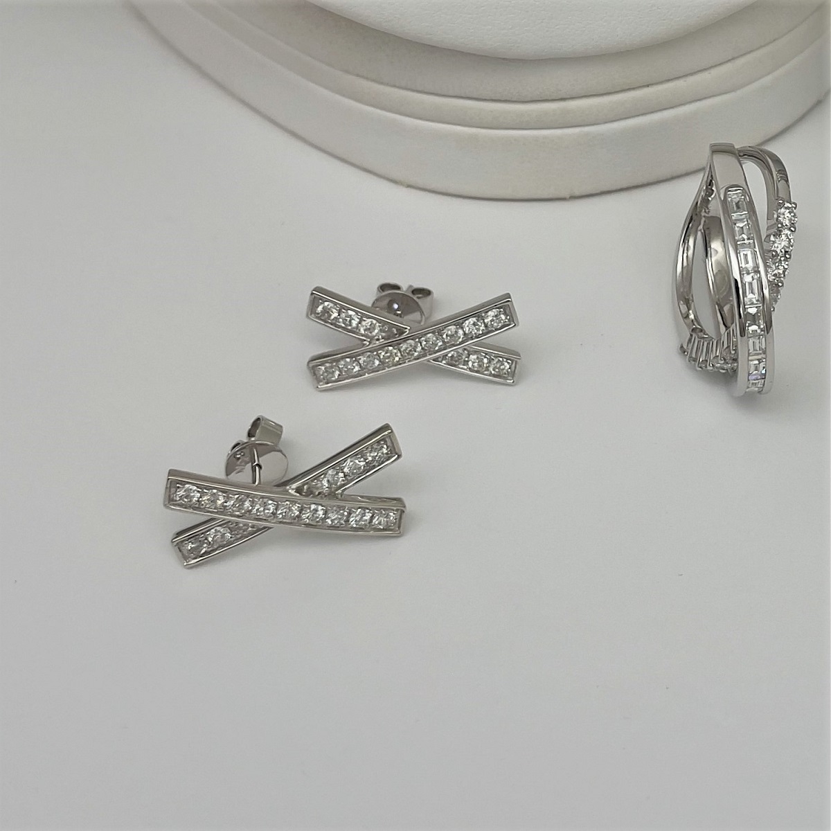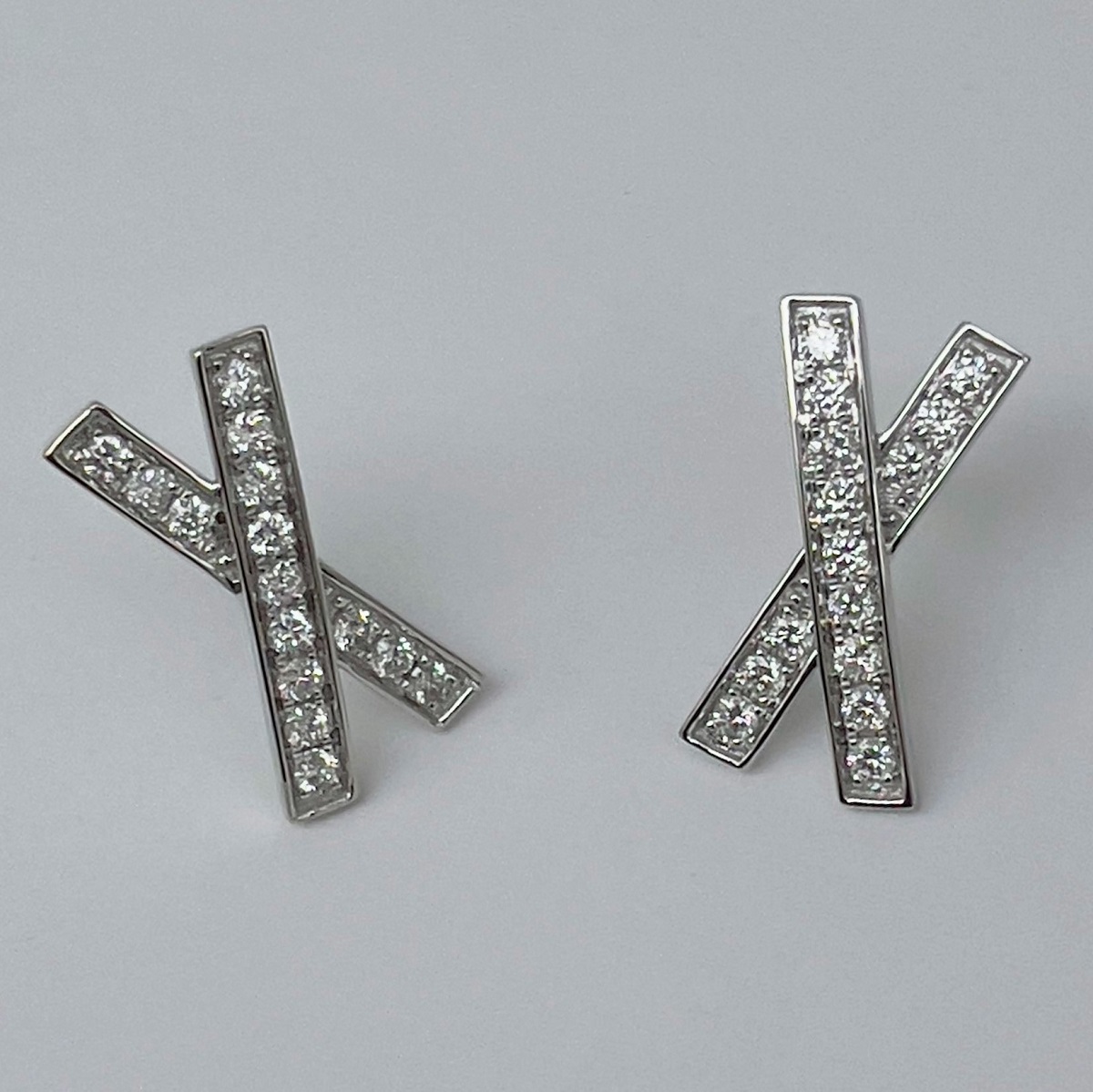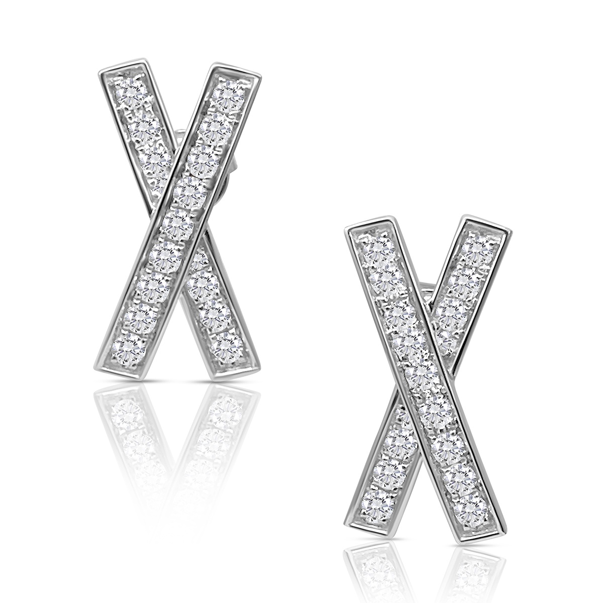 These X Shape Earrings Are Made With 14k White Gold And Set With Round Brilliant Diamonds