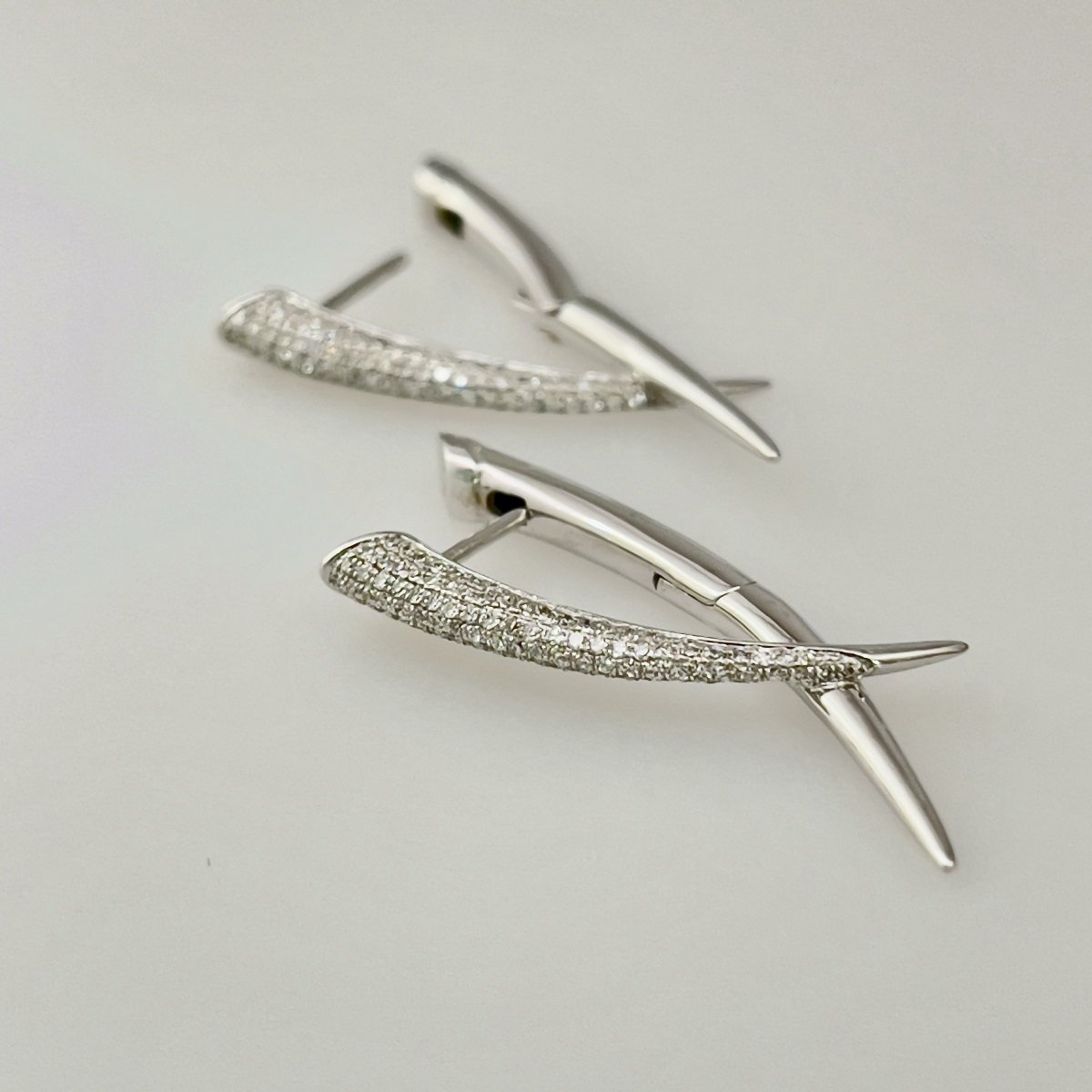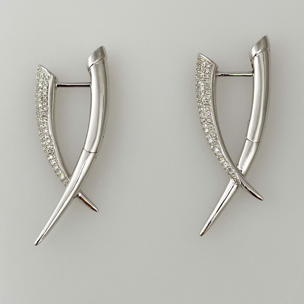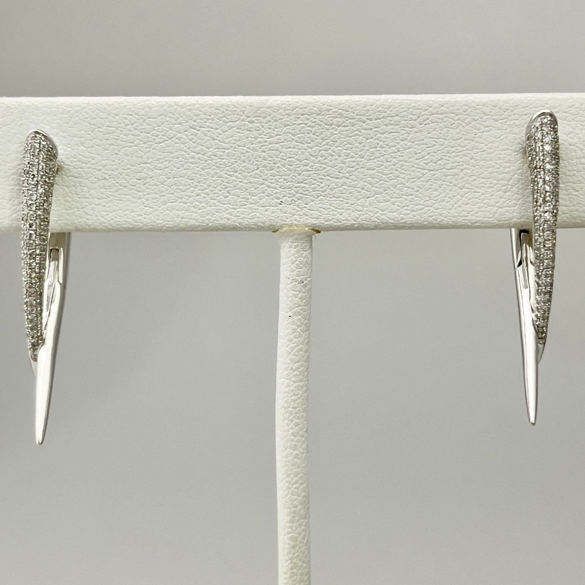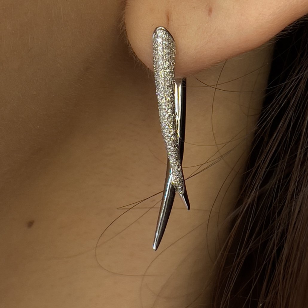 Tapered bar dangles are joined at the post. The smaller bar is diamond encrusted.