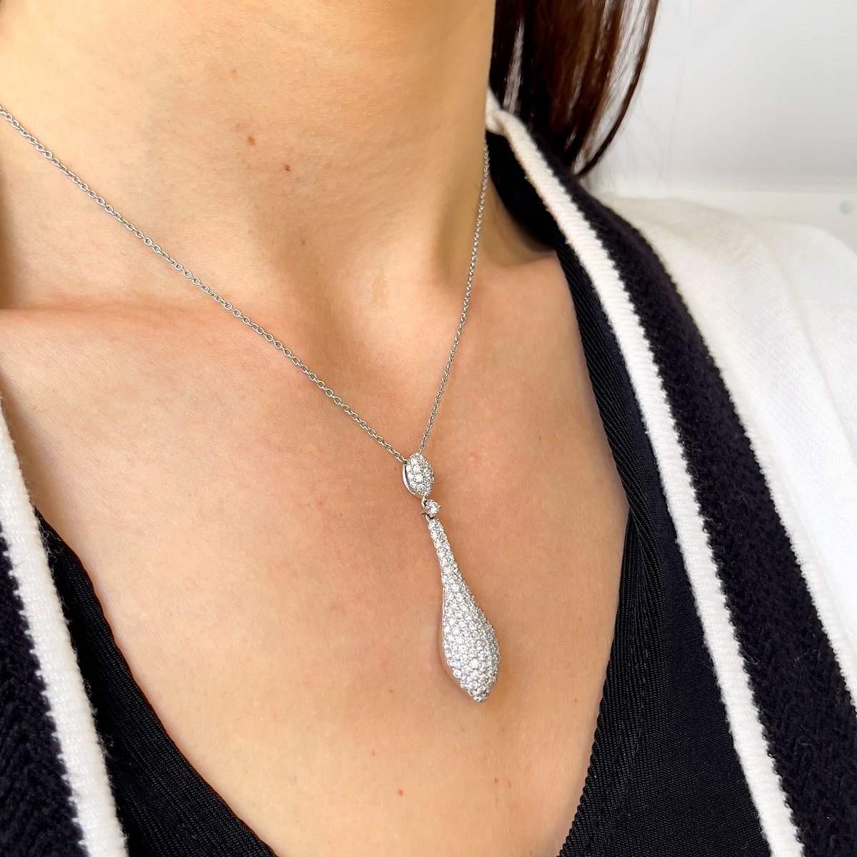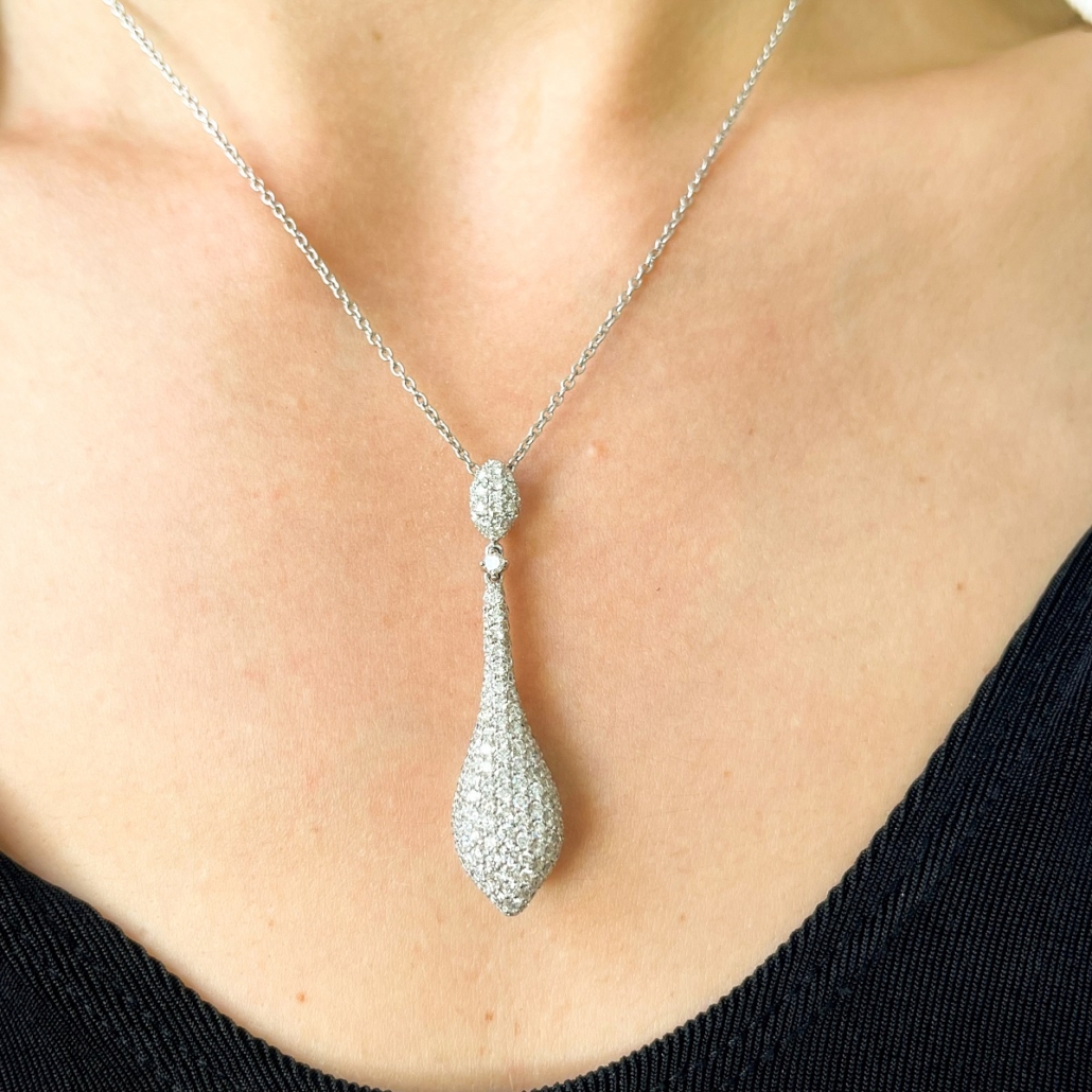 Water drop diamond pendant is a stunning statement – wear with all black to make it really pop!