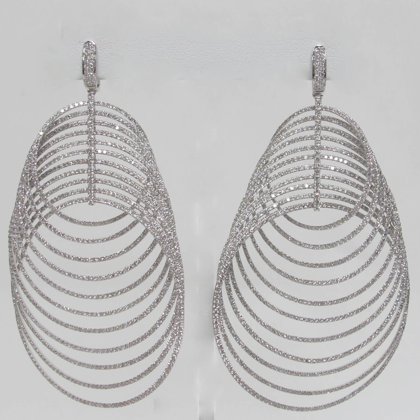 Fluid drop earrings feature eleven concentric circles crusted in more than 800 diamonds!