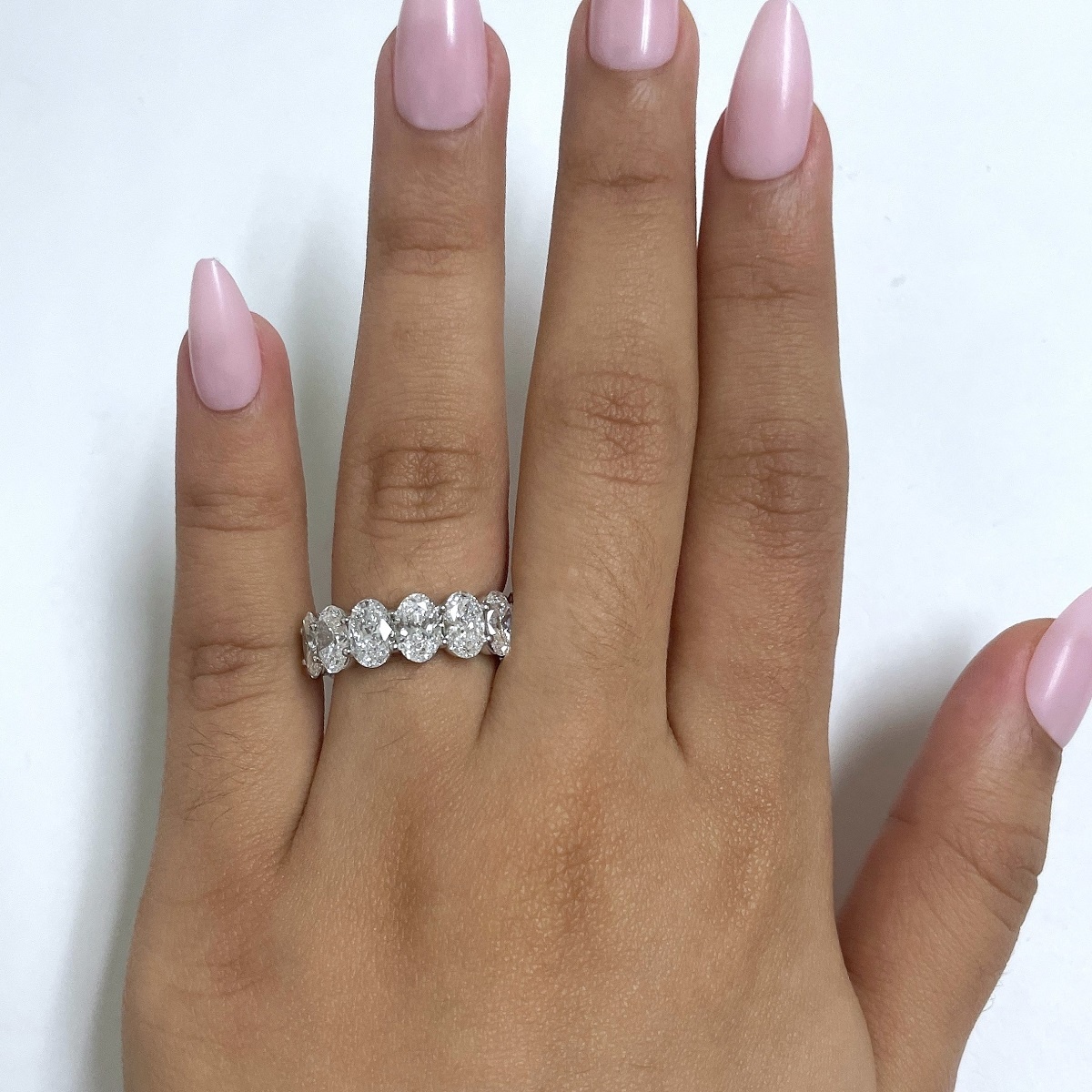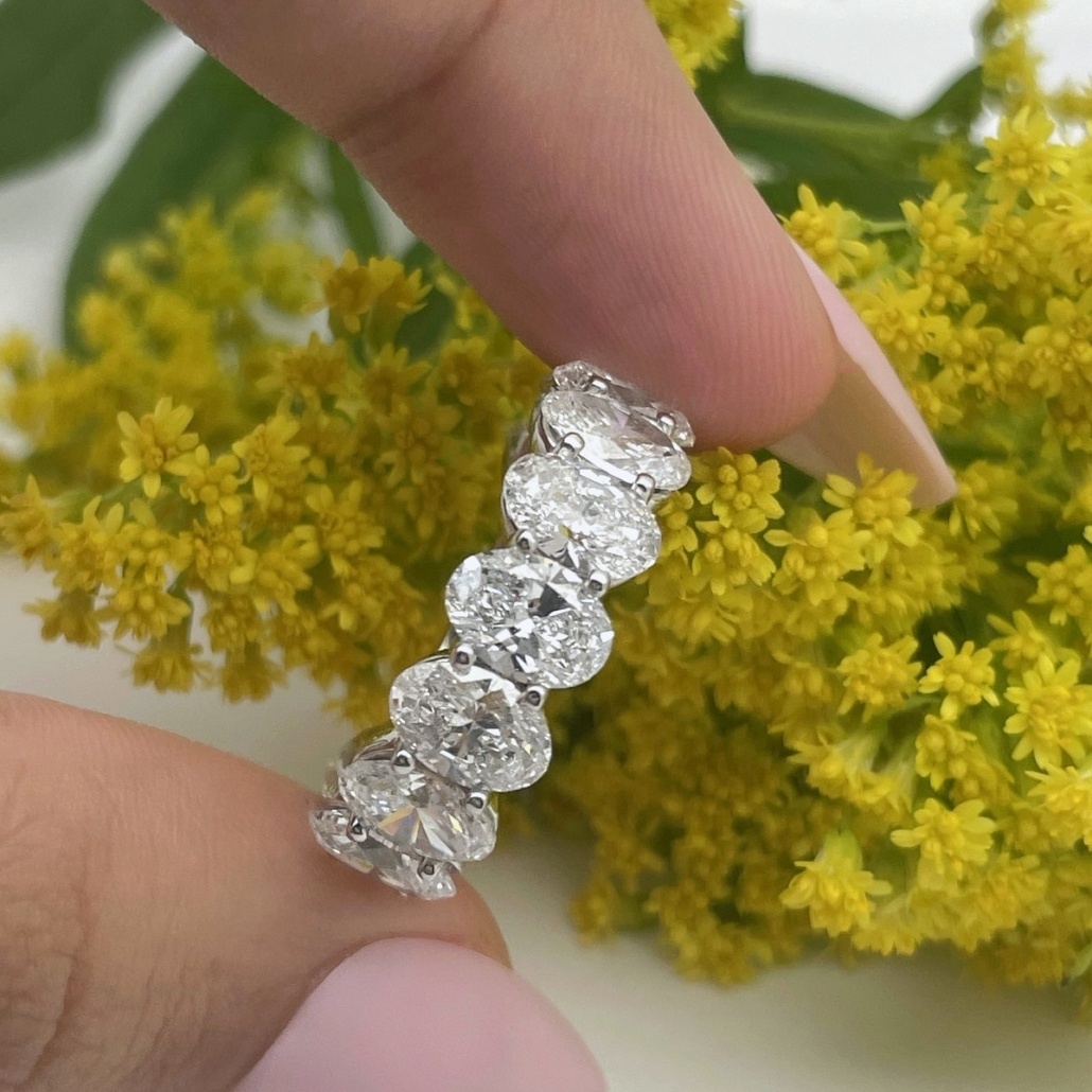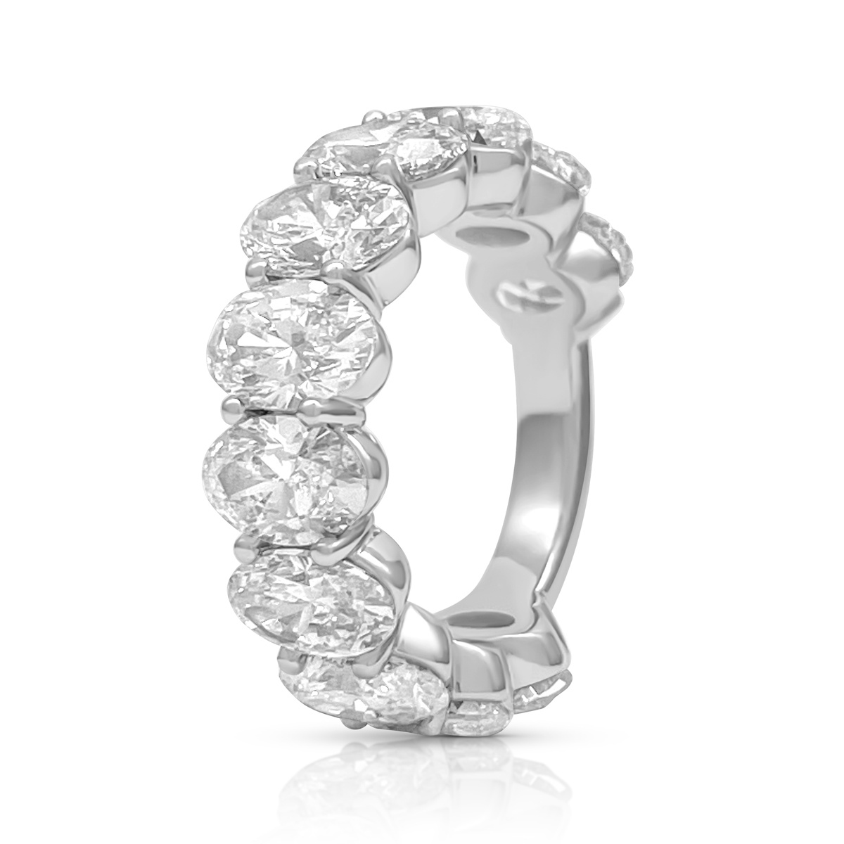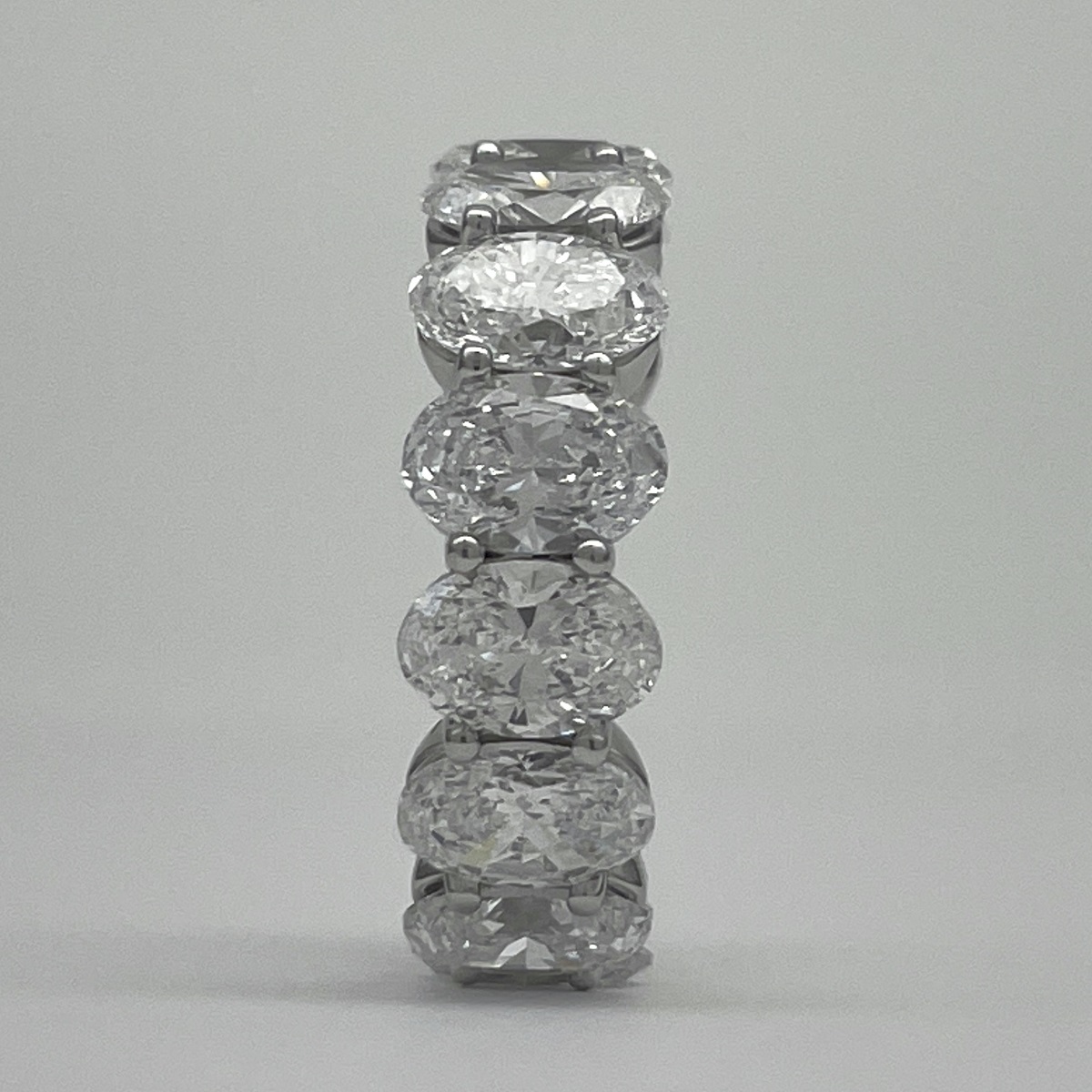 Oval-cut diamonds sparkle endlessly in this handcrafted platinum eternity band.