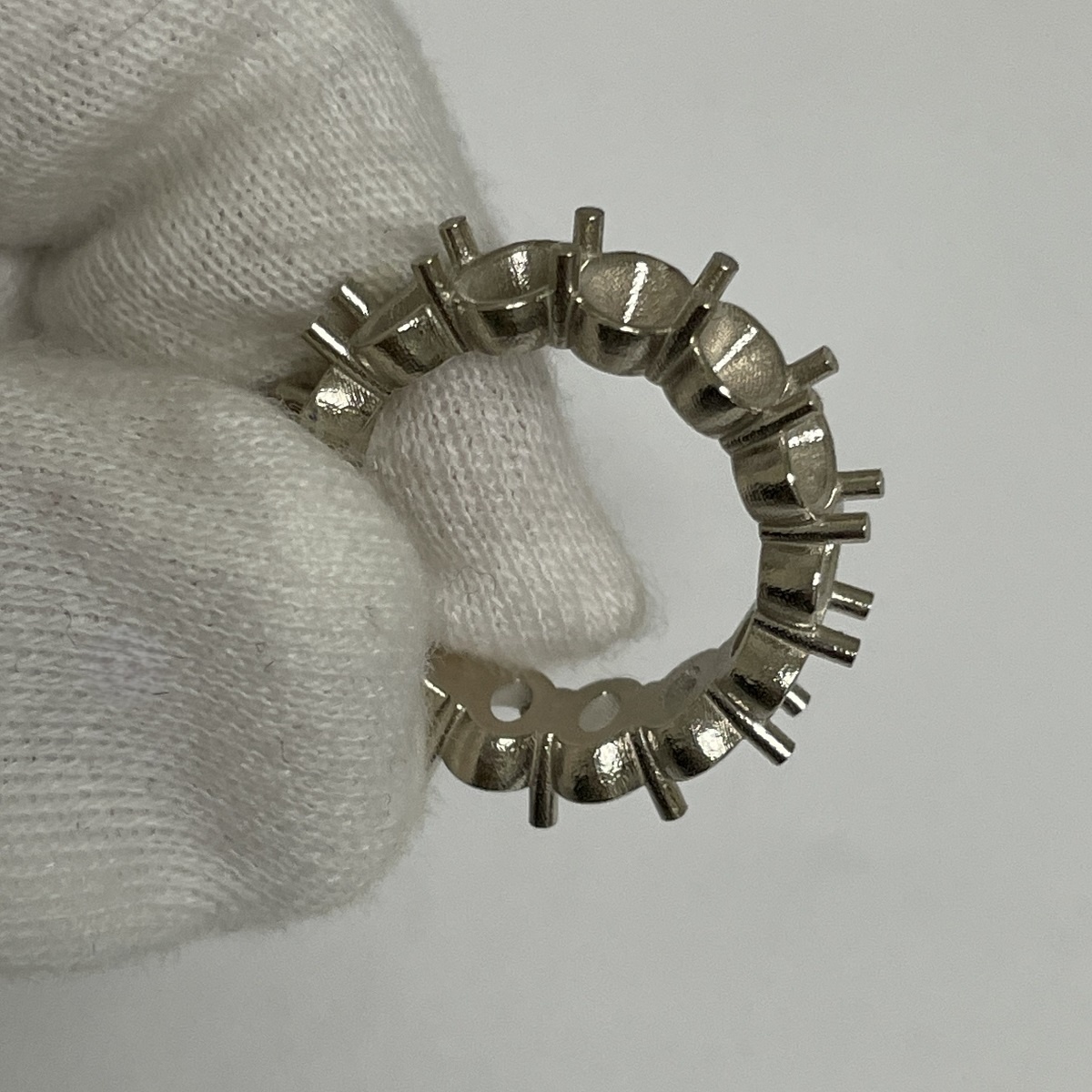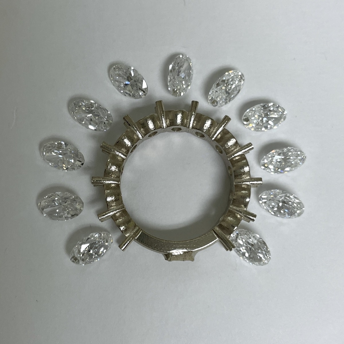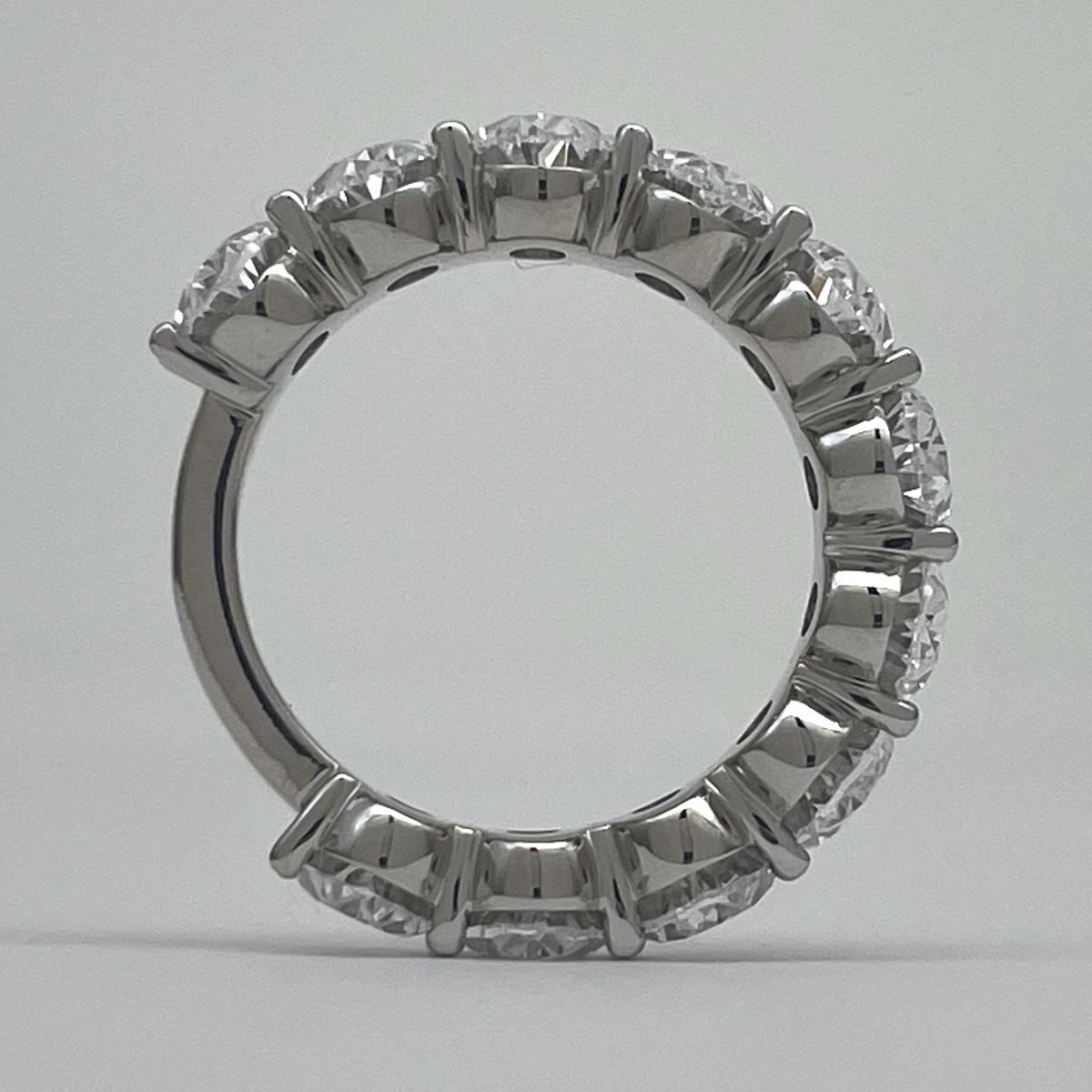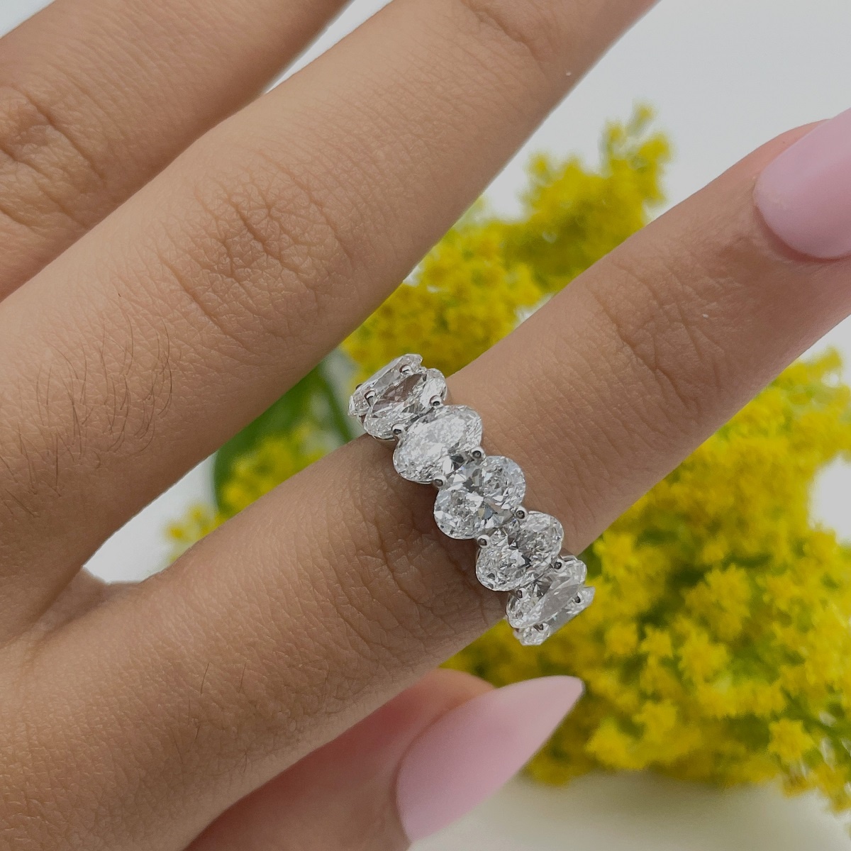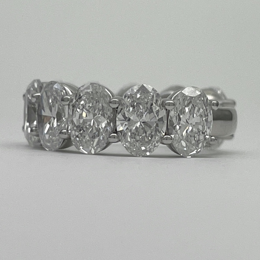Oval-cut diamonds sparkle endlessly in this handcrafted platinum eternity band.