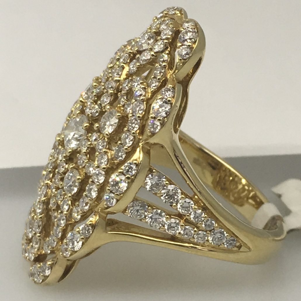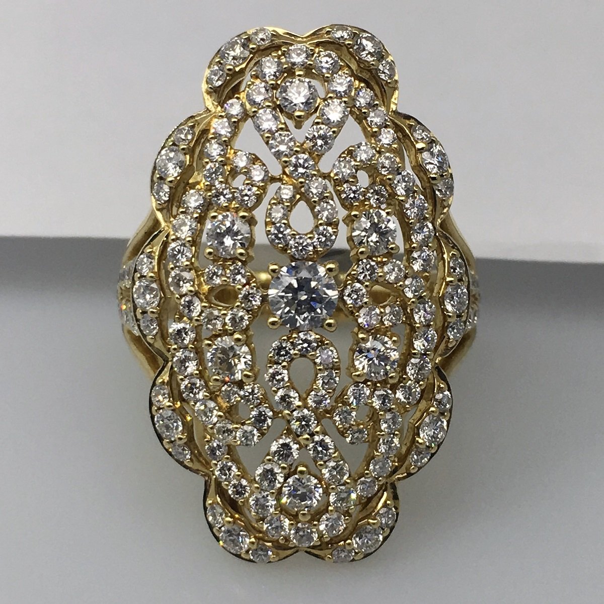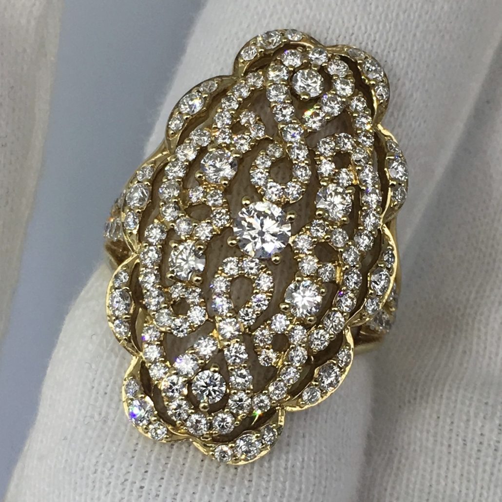 Scalloped antique design in yellow gold makes an elegant statement.