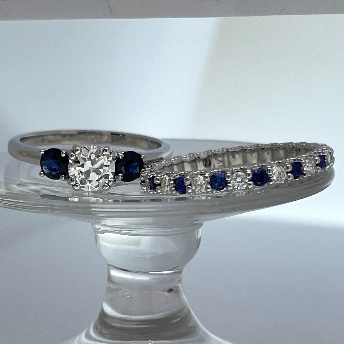 Tags Diamond, Eternity, Milgrain, Platinum, Sapphire, Vintage Style, wedding band