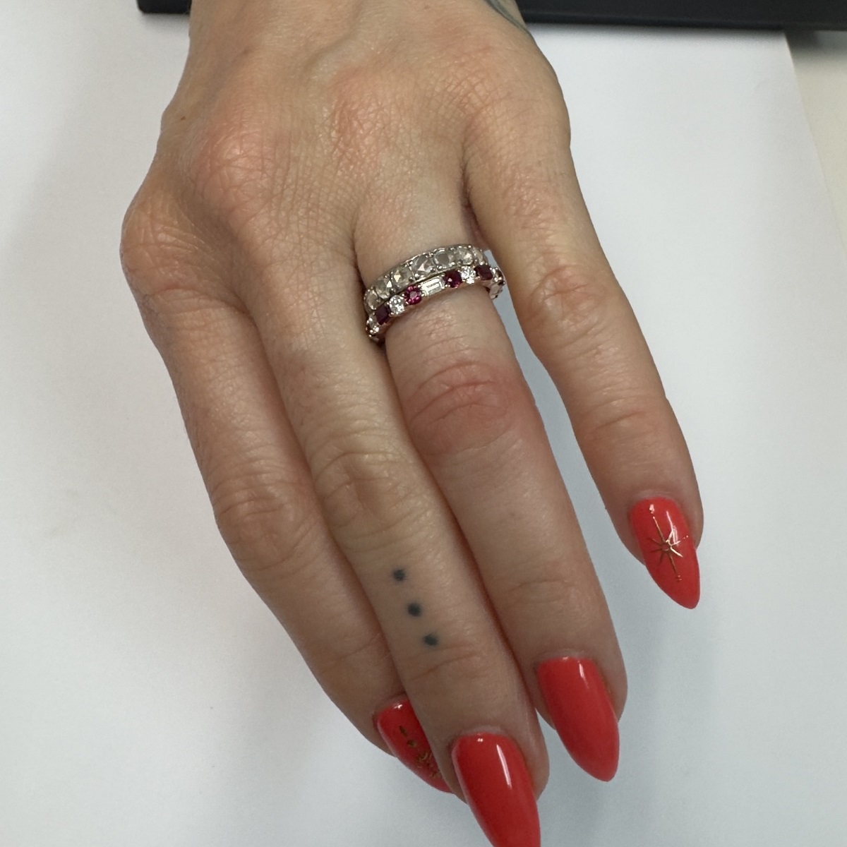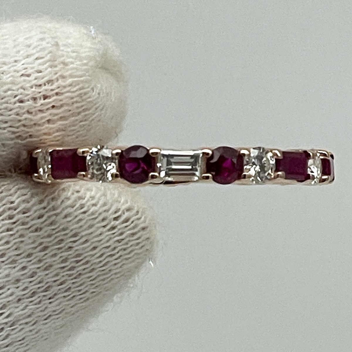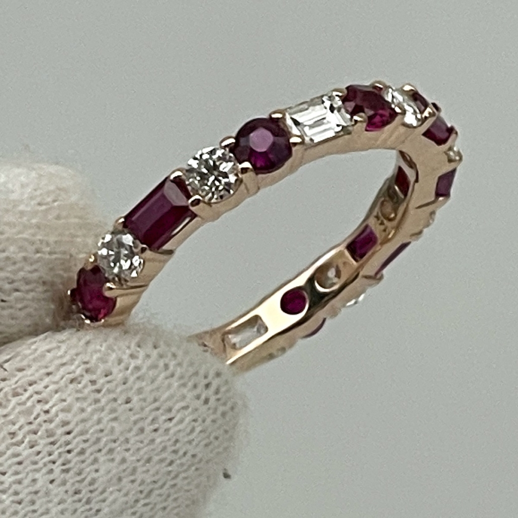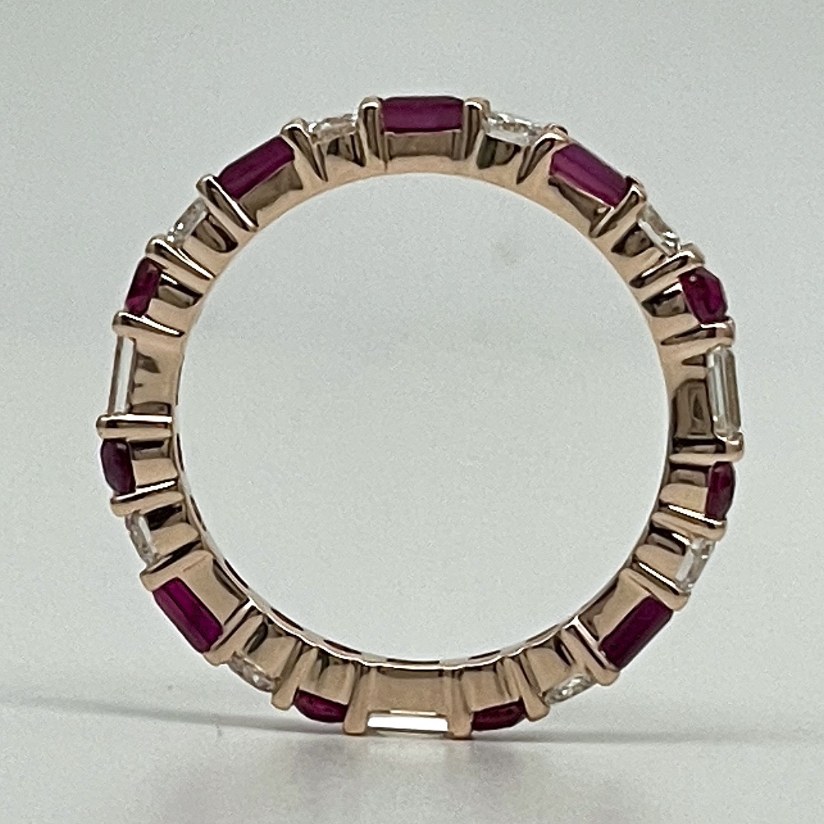 Tags 14k Pink, 14k Rose, baguette, Band, Diamond, Eternity, gemstone, Multi-Shape, Ring, Round, Ruby