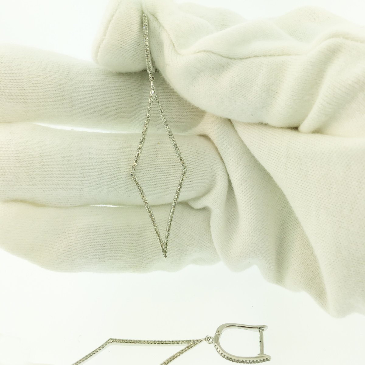 Tags 14k White, Abstract, Contemporary, Dangle, Diamond, Diamond Shape, Earring, Lever Back, Quadrilateral, Rhombus, Stylish