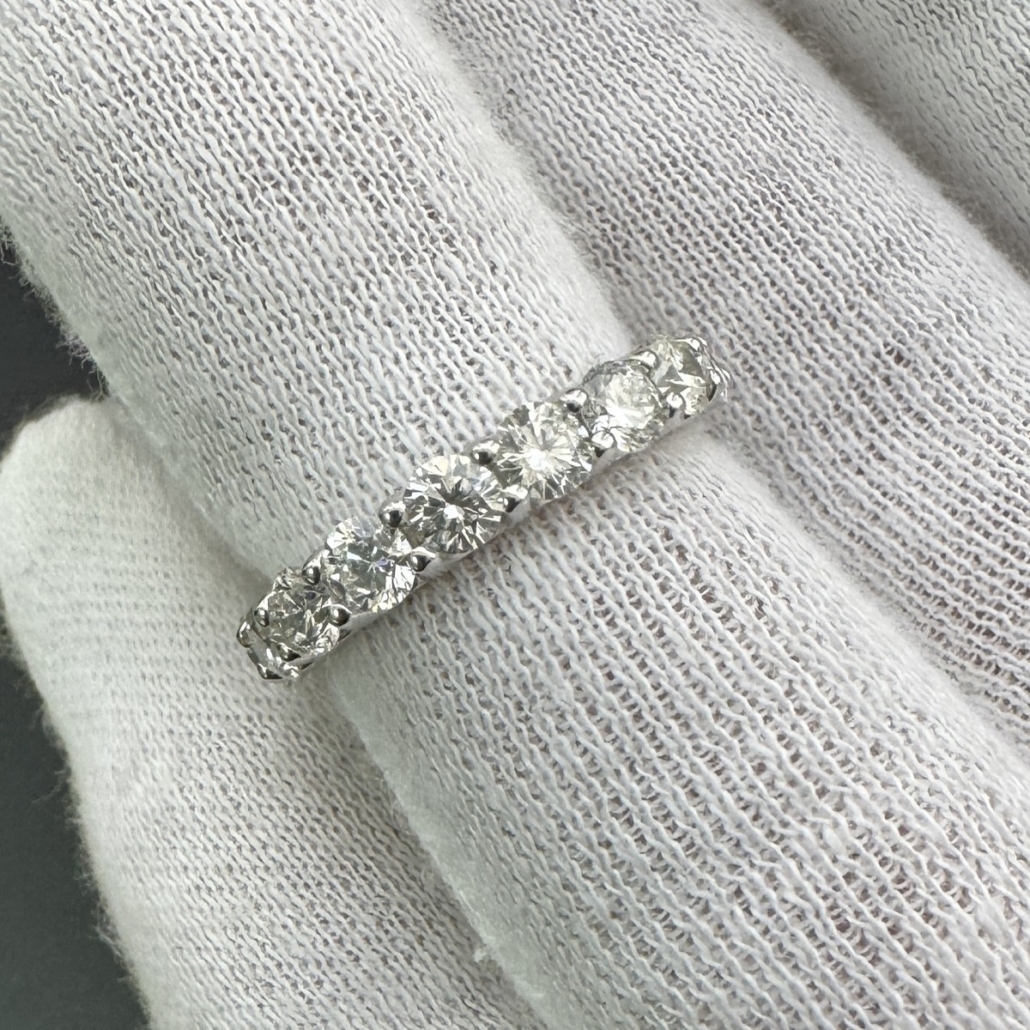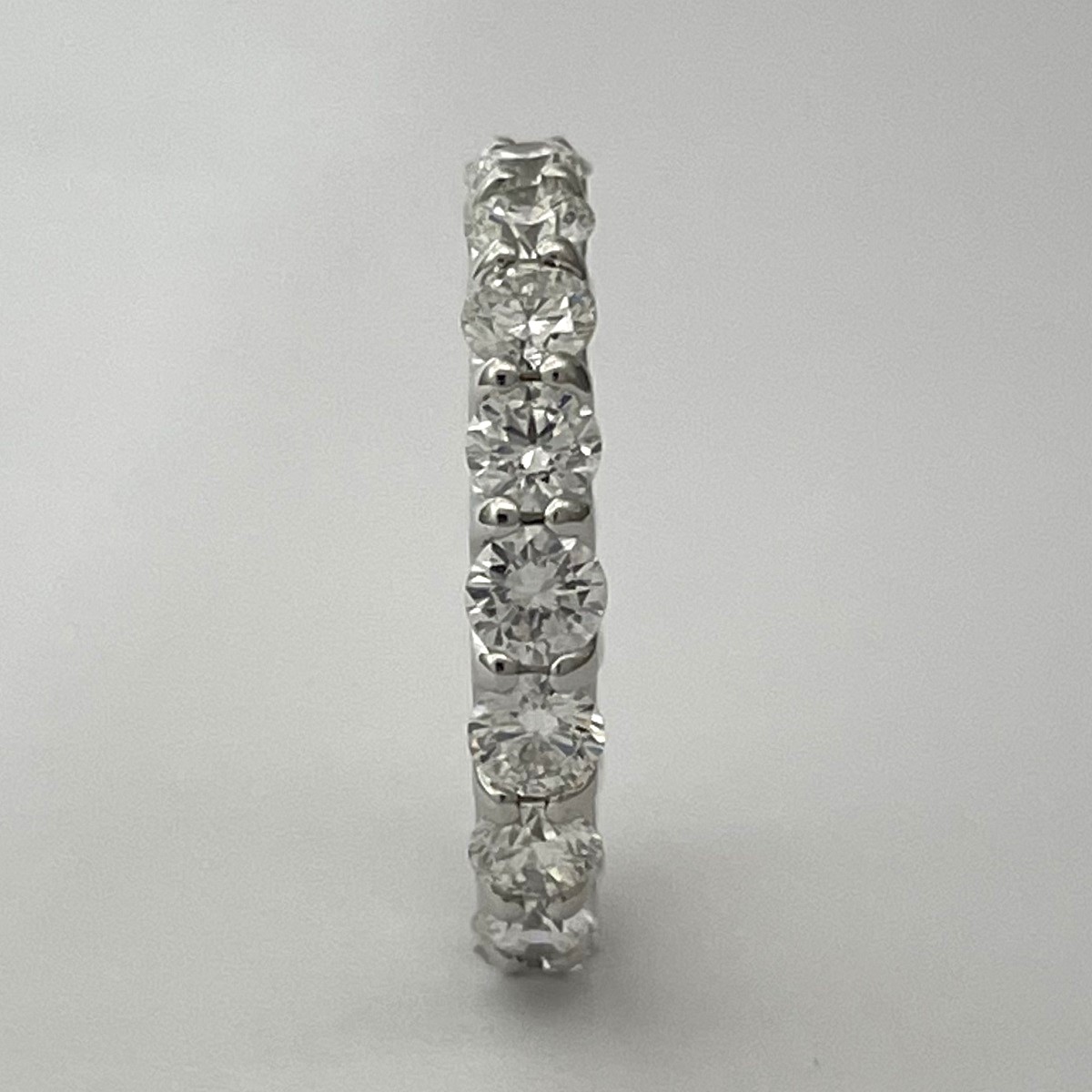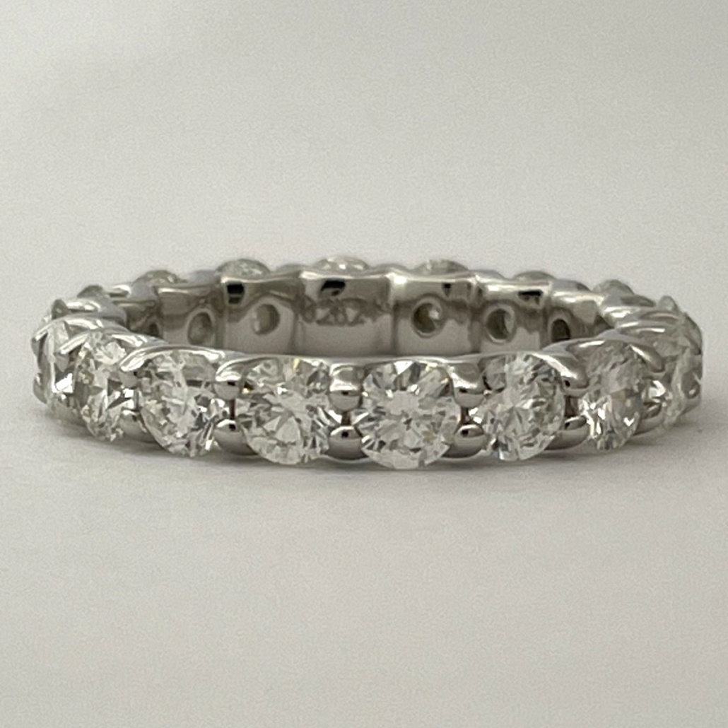 Celebrate eternal elegance with this stunning platinum eternity band, meticulously set with dazzling round diamonds. Each stone is chosen for exceptional sparkle, creating a seamless circle of radiance symbolizing endless love