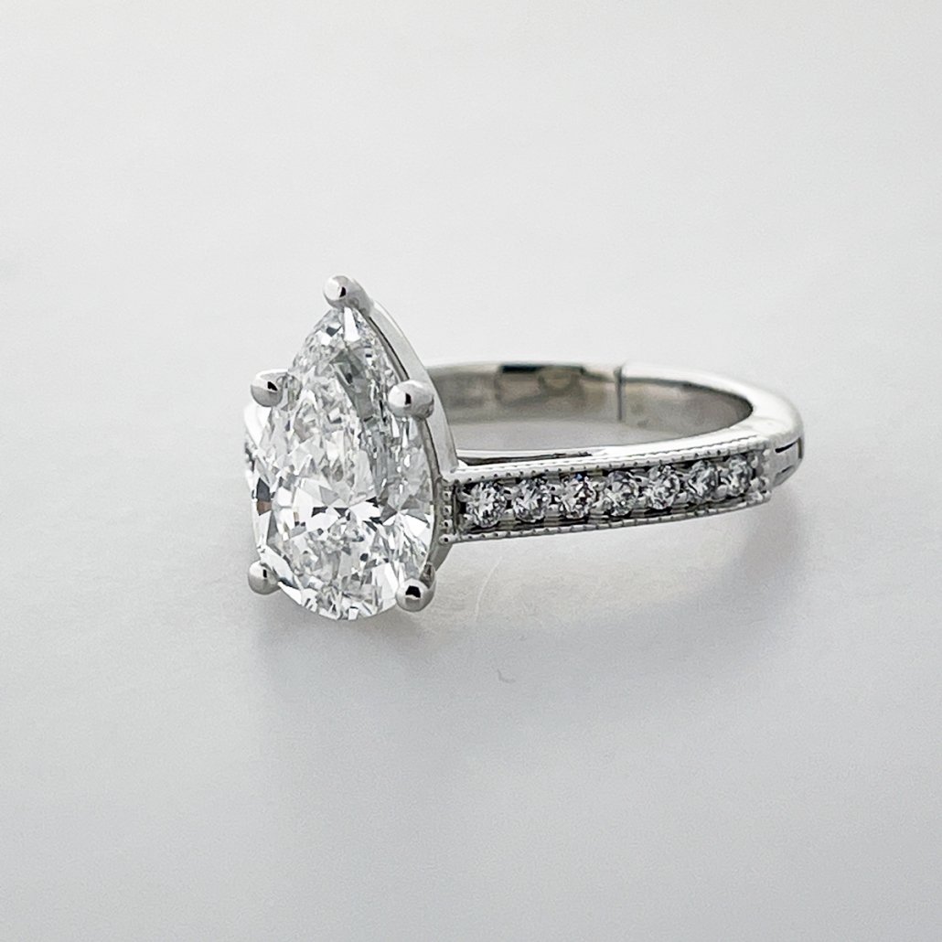 Tags Adjustable Ring, Channel Set, Diamond, engagement, Five Prong, Milgrain, NYC Jewelry, Pear Shape, personal jeweler, Platinum
