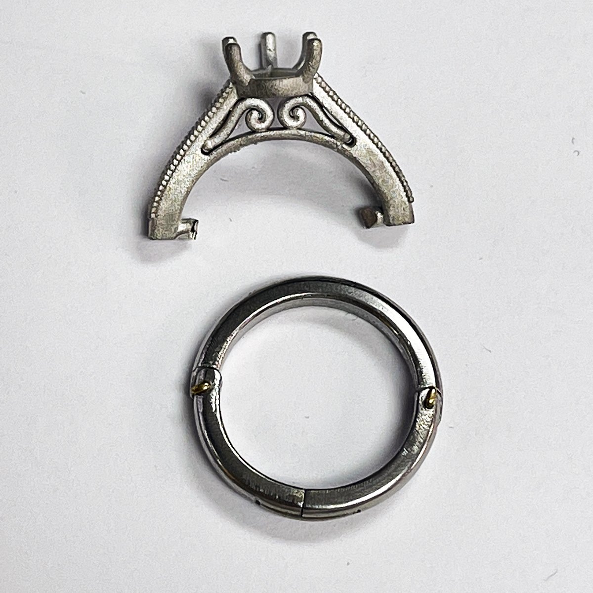 The custom setting was created to allow the wearer to put the ring on by opening the shank.
