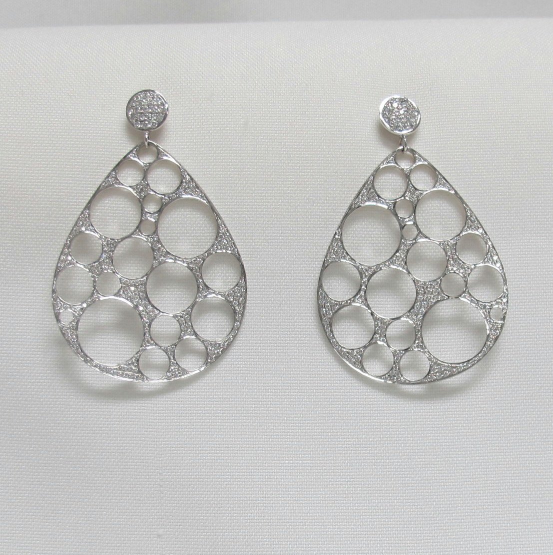 Tags 18 K White Gold, Dangle Diamond Earrings, Diamond Cheese, Diamond Dangles, Diamond Earrings, Diamond Earrings With Holes, Diamond Swiss Cheese, Earrings With Holes, Swiss Cheese Earrings