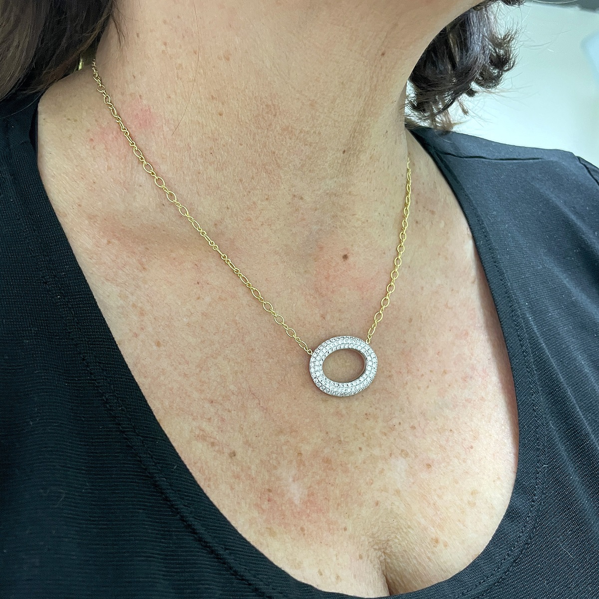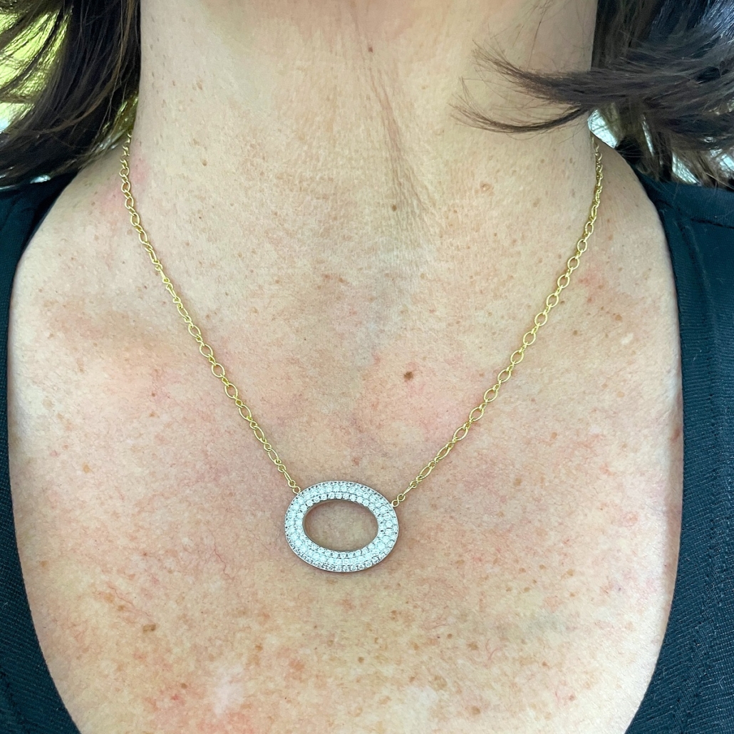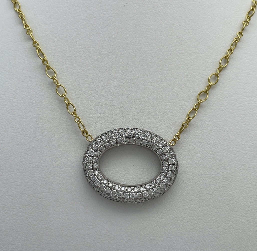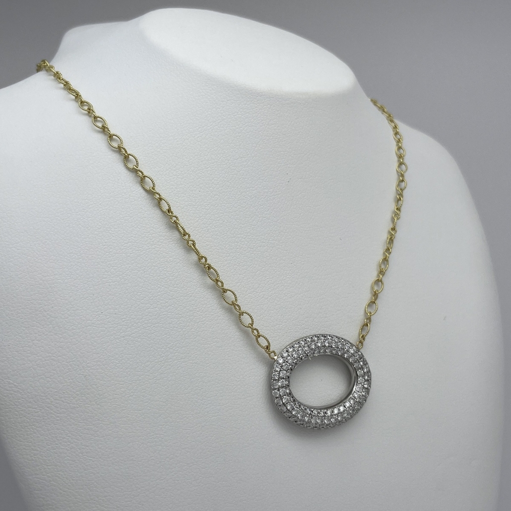 Tags 18k White, 18k Yellow, Circle, Cluster, Desire, Elegant, Fancy, Necklace, Pave Set, Pendant, Shared Prongs, Two Tone