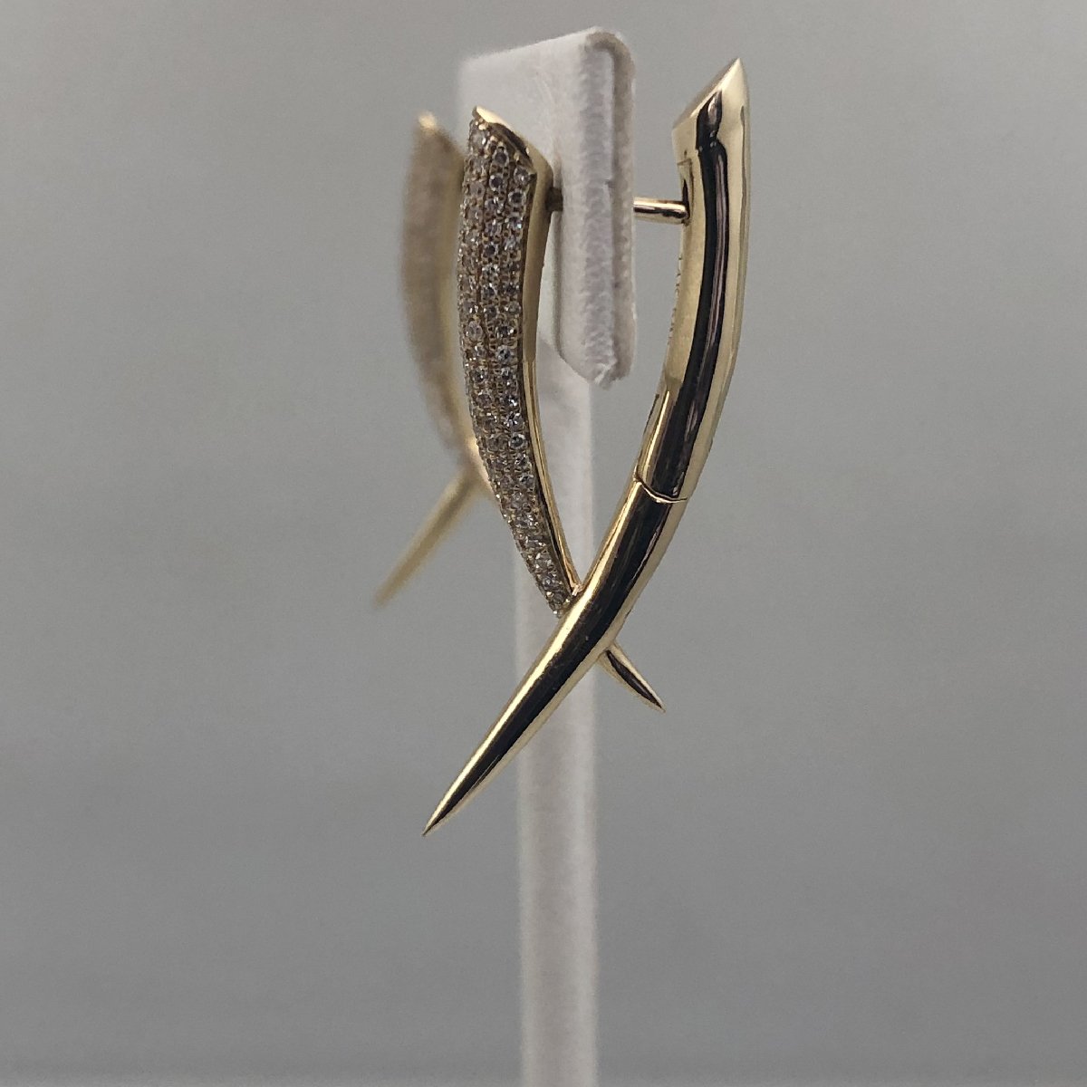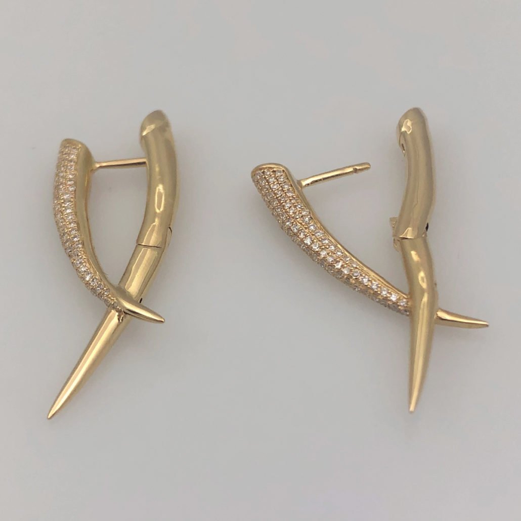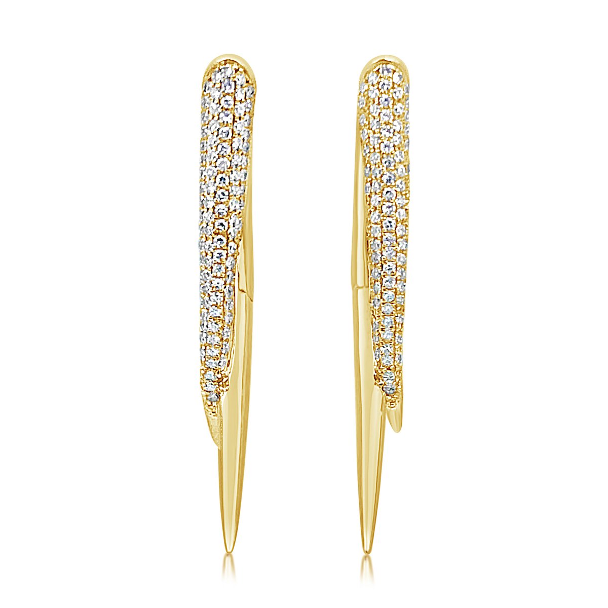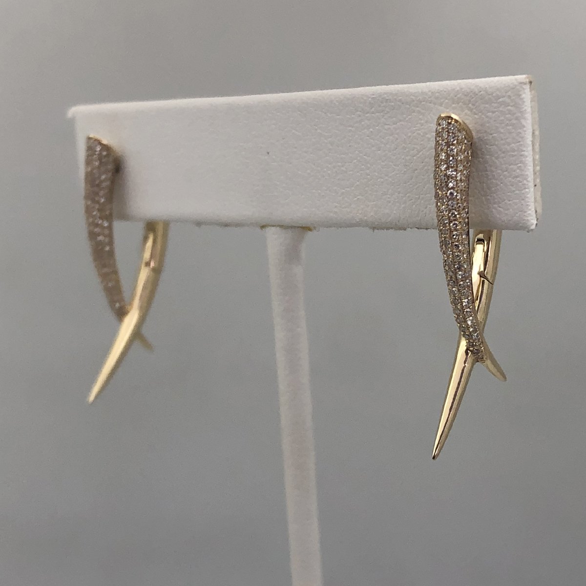 Tags Dangle Earrings, diamond horn dangle earrings, horn shaped, yellow gold
