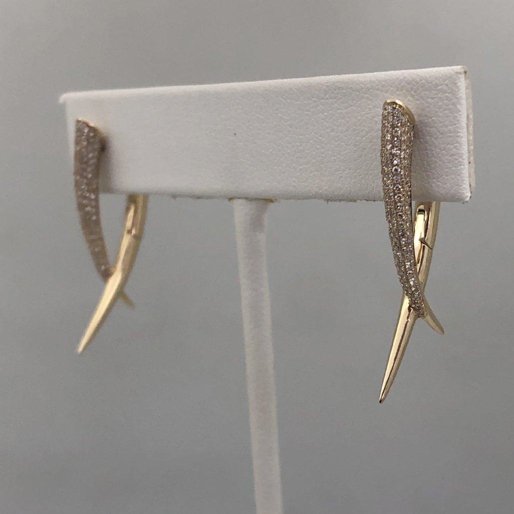 Tapered horn shaped dangles are joined at the post. The smaller horn is diamond encrusted.