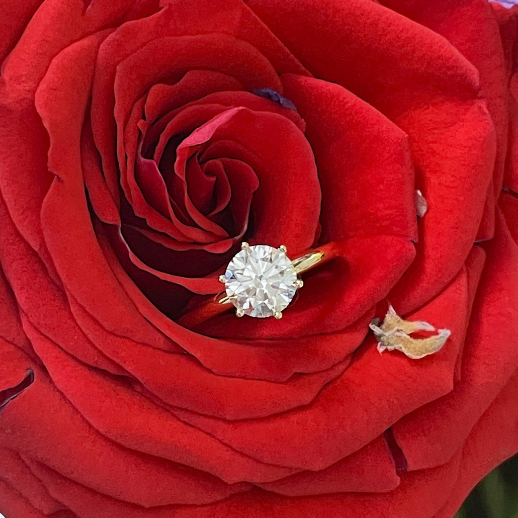 The clean lines and elegant proportions of this ring allow the diamond’s fire and beauty to take center stage.