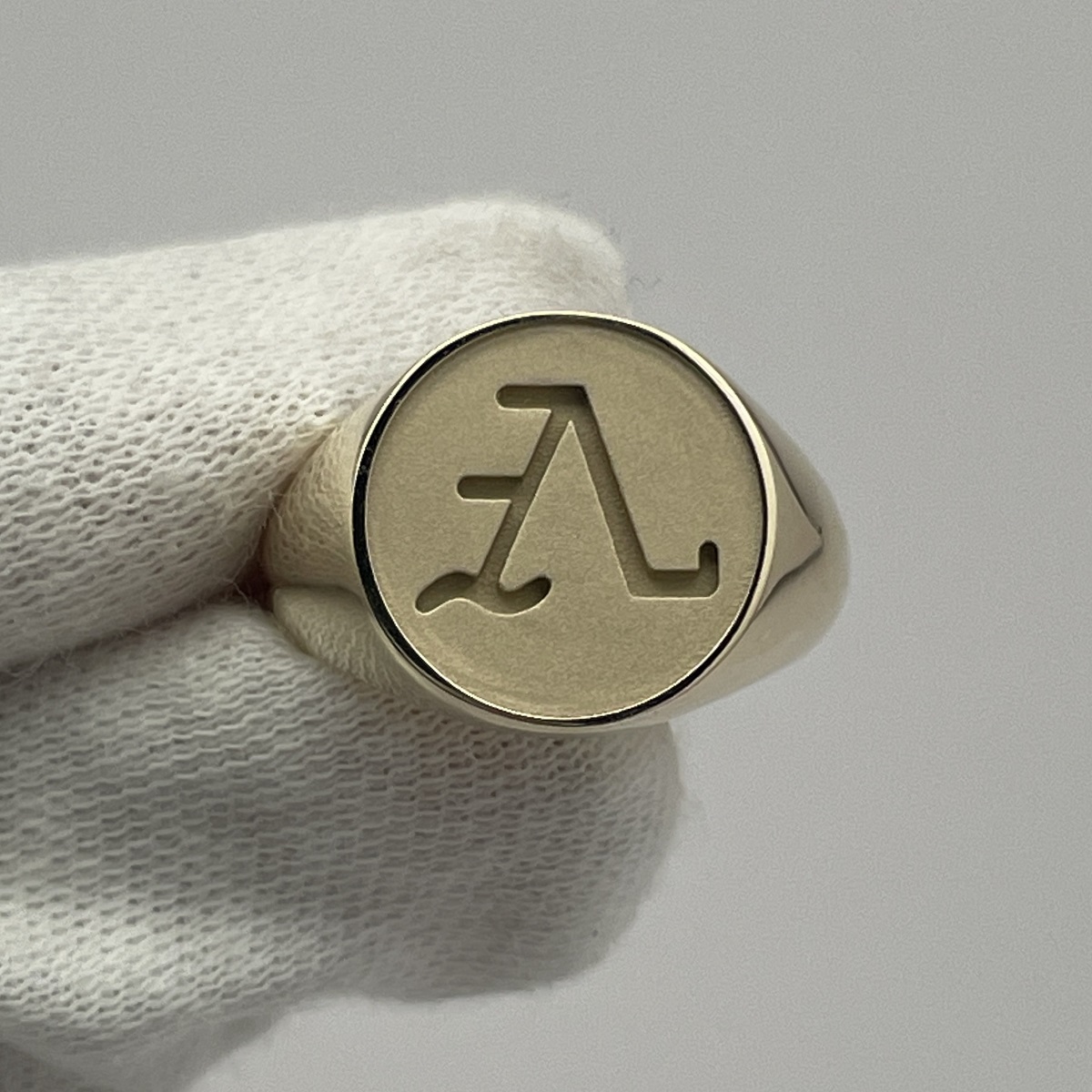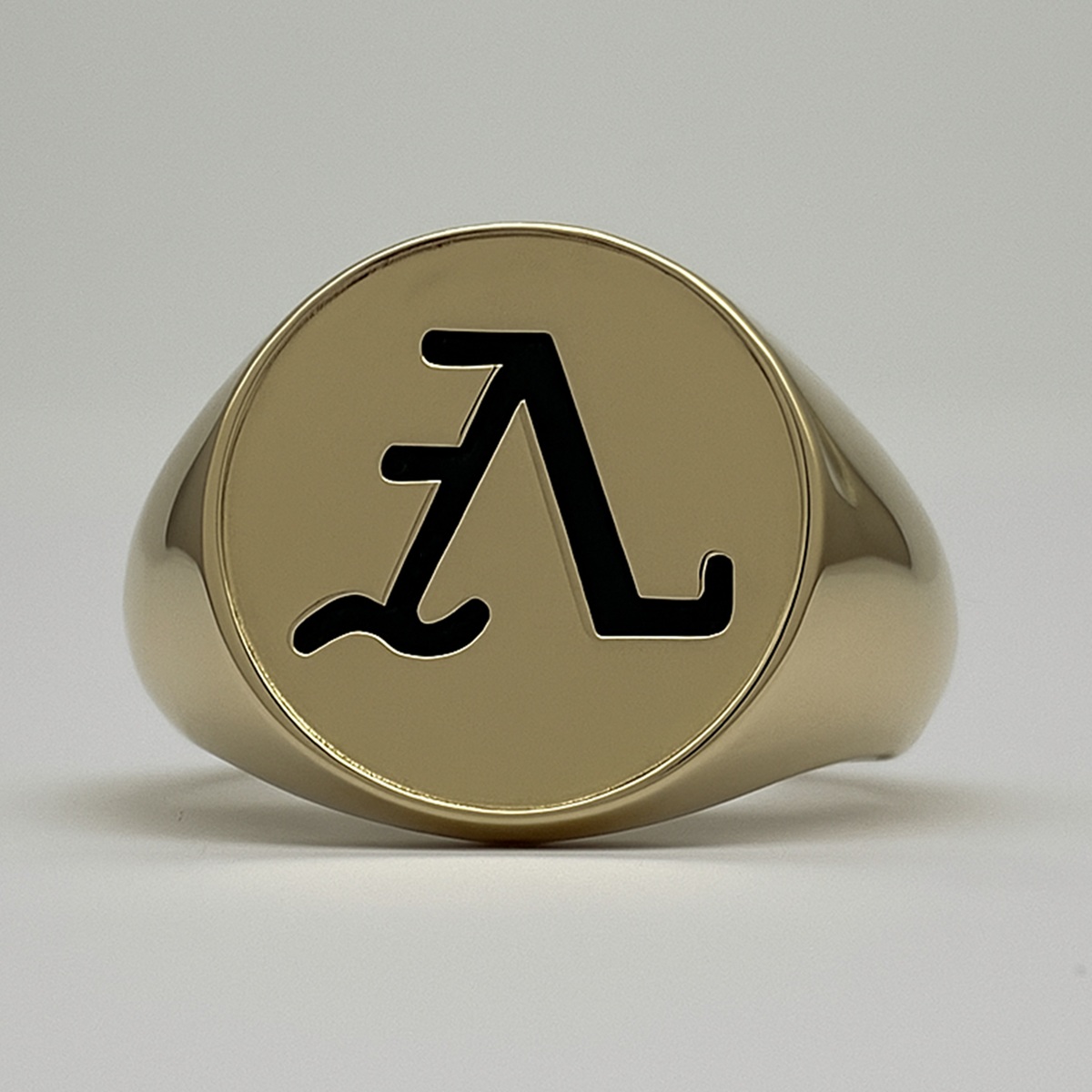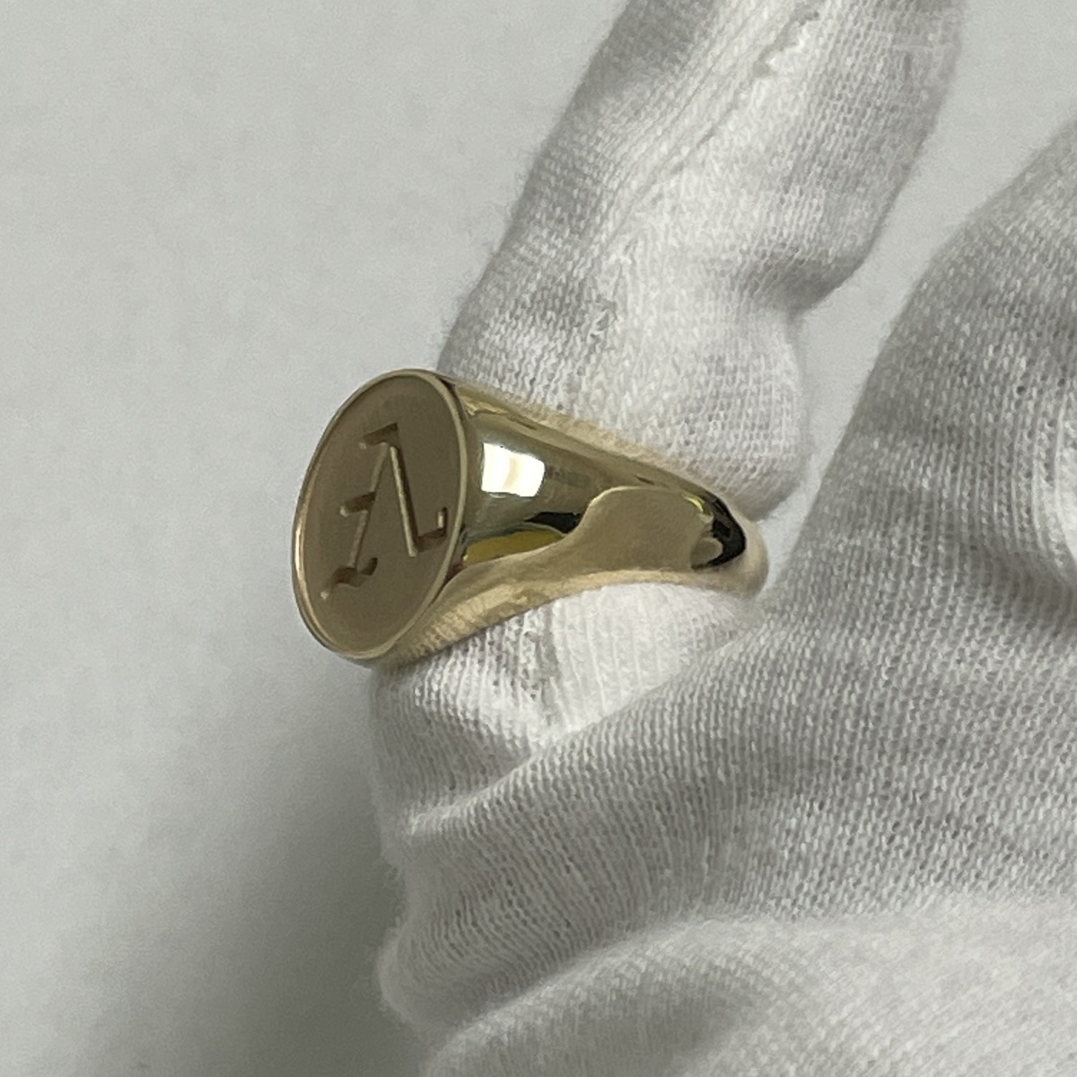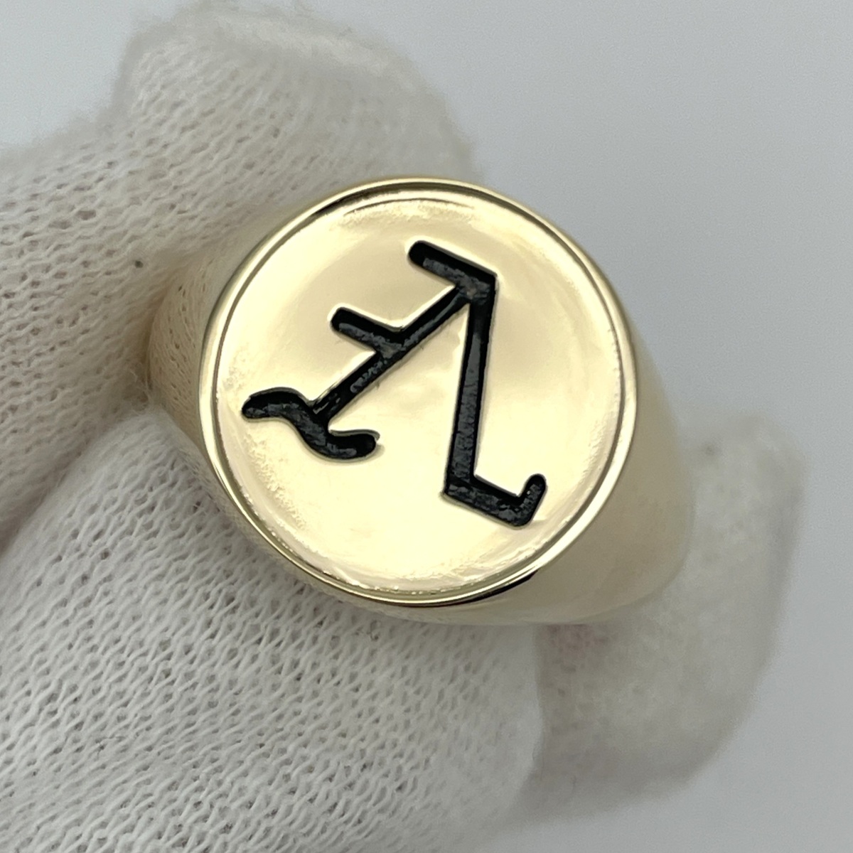 This polished gold signet ring blends tradition with personal meaning. Whether marked with initials, a family crest, or a symbolic design, it’s a signature piece that honors heritage and elevates everyday style.