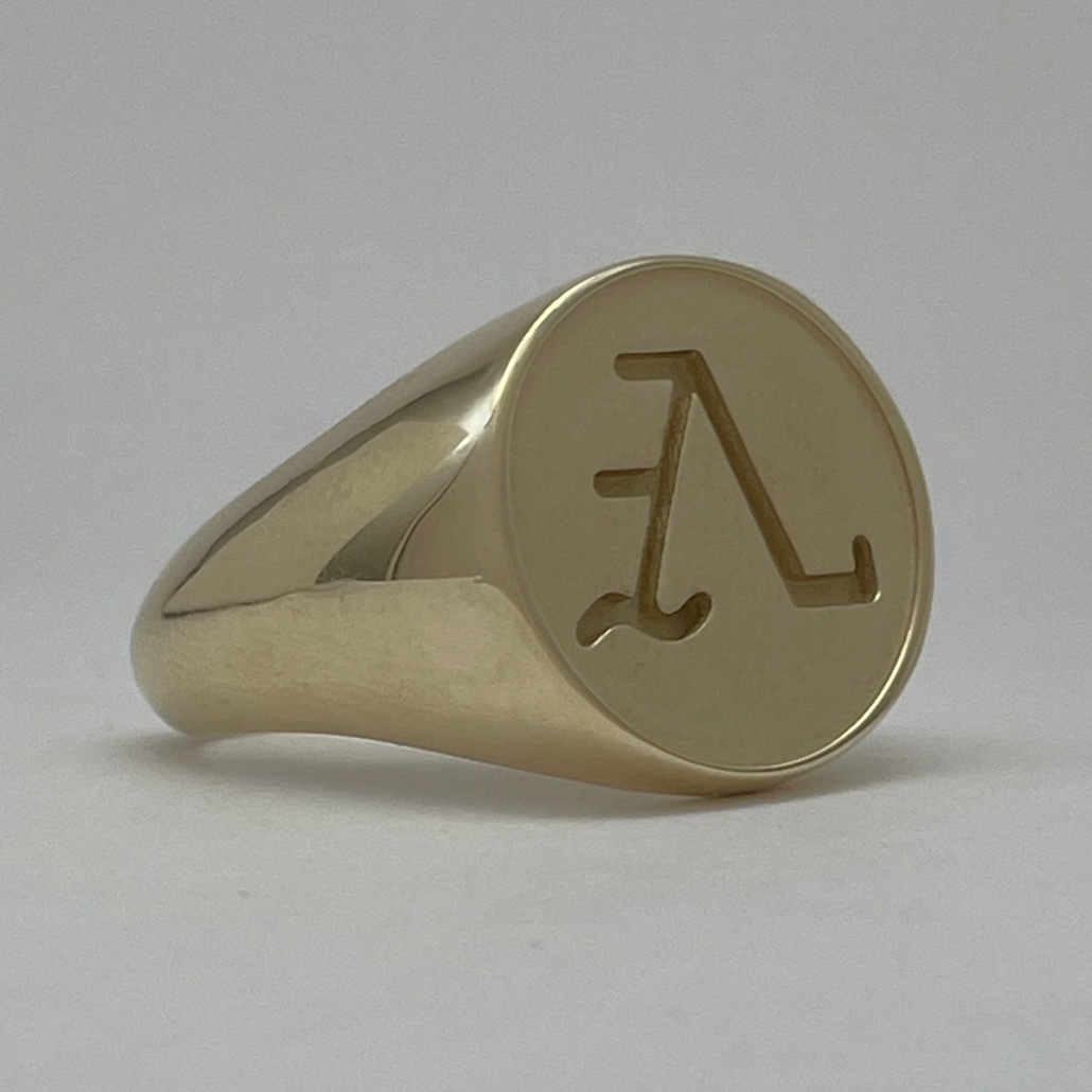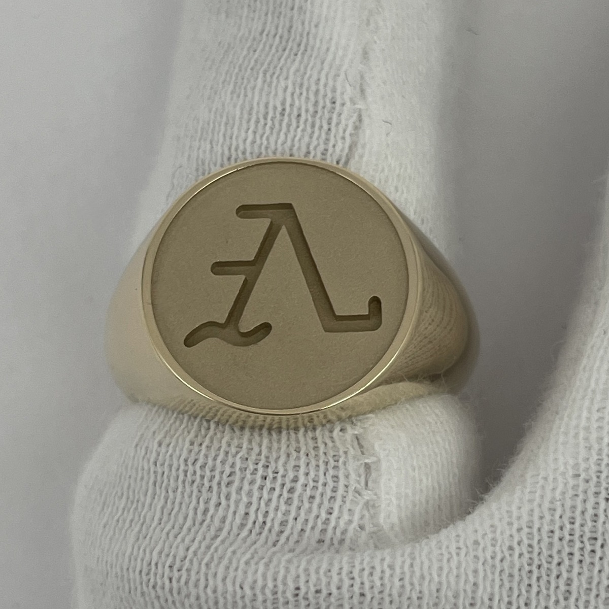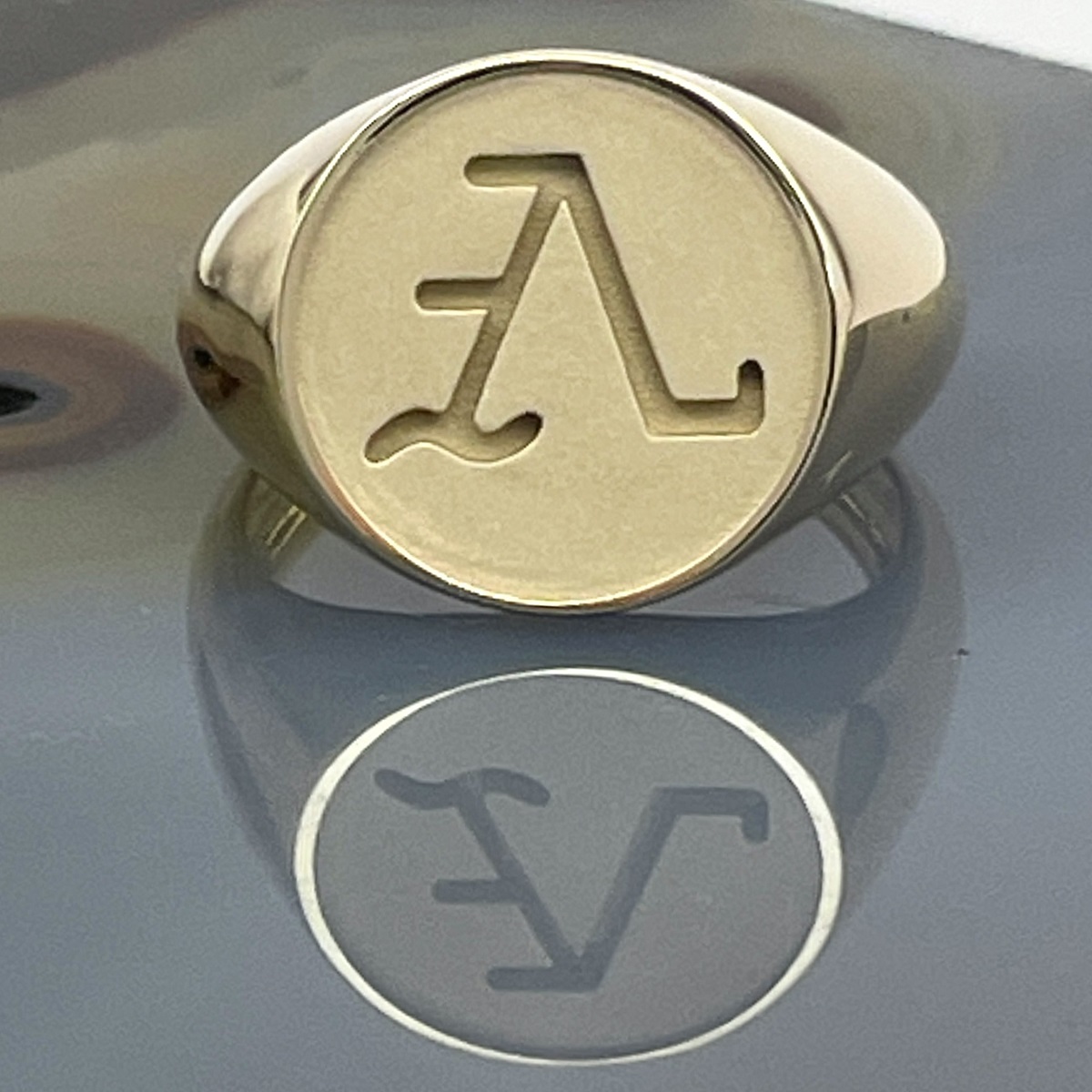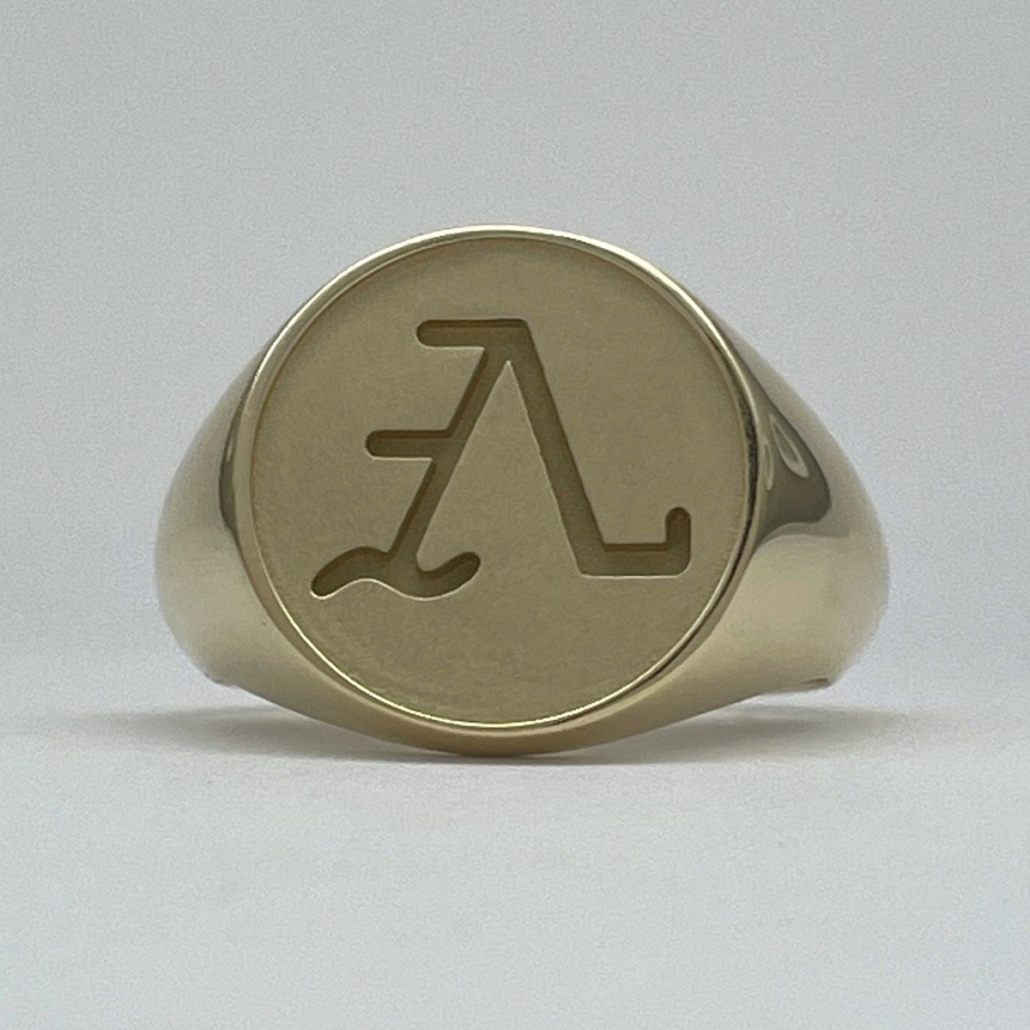 This polished gold signet ring blends tradition with personal meaning. Whether marked with initials, a family crest, or a symbolic design, it’s a signature piece that honors heritage and elevates everyday style.