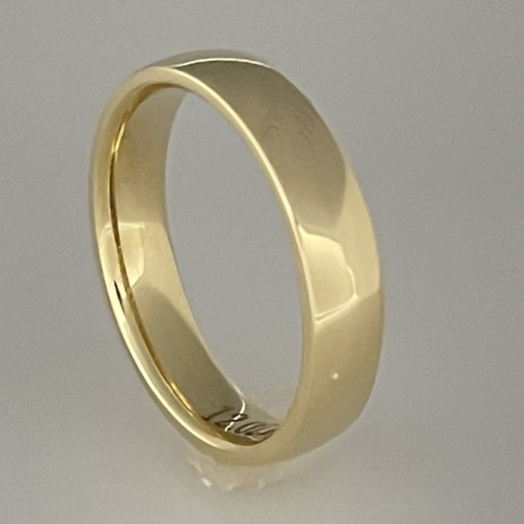 Low Dome Gentleman Wedding Band Made In 14k Yellow Gold.