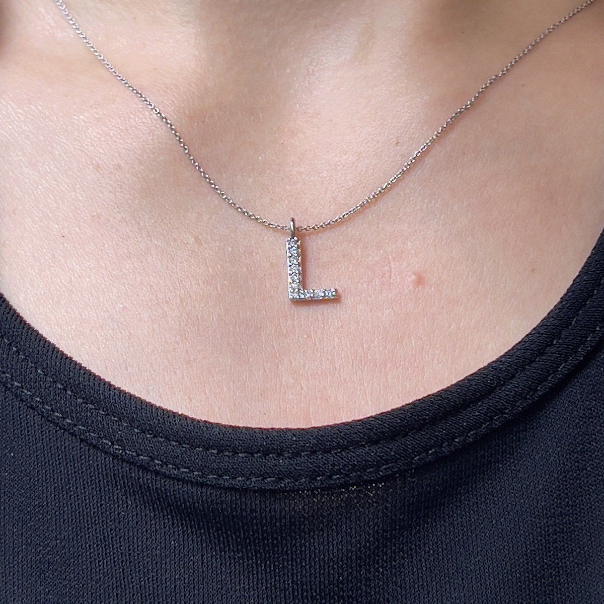 Initials are a great way to give a personalized, fashion forward gift! Made to order – ask for the letter you need. Price may vary by letter. Also available in Yellow Gold.