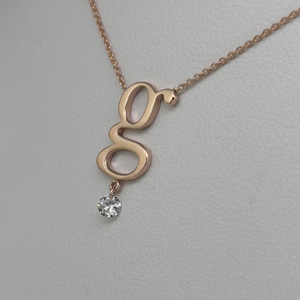 Tags Diamond Pendant, Elegant, initial, Necklace, Rose Gold