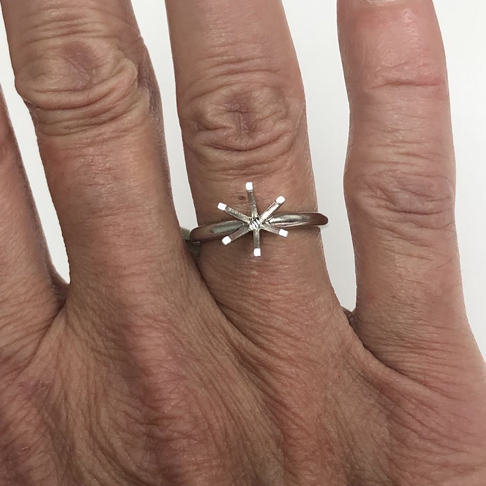 6 Prong Diamond Solitaire Engagement Ring with a half round pinched shank.