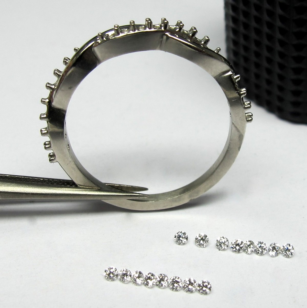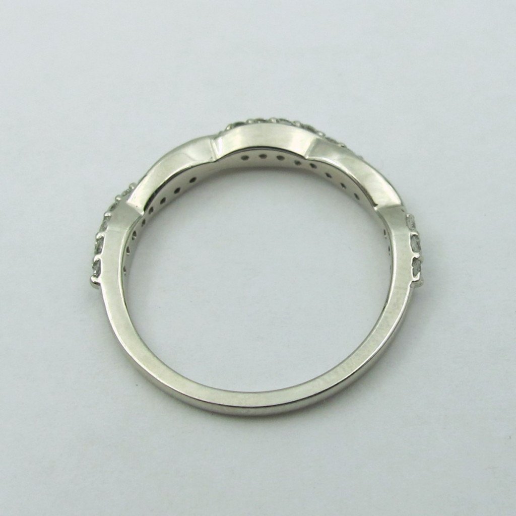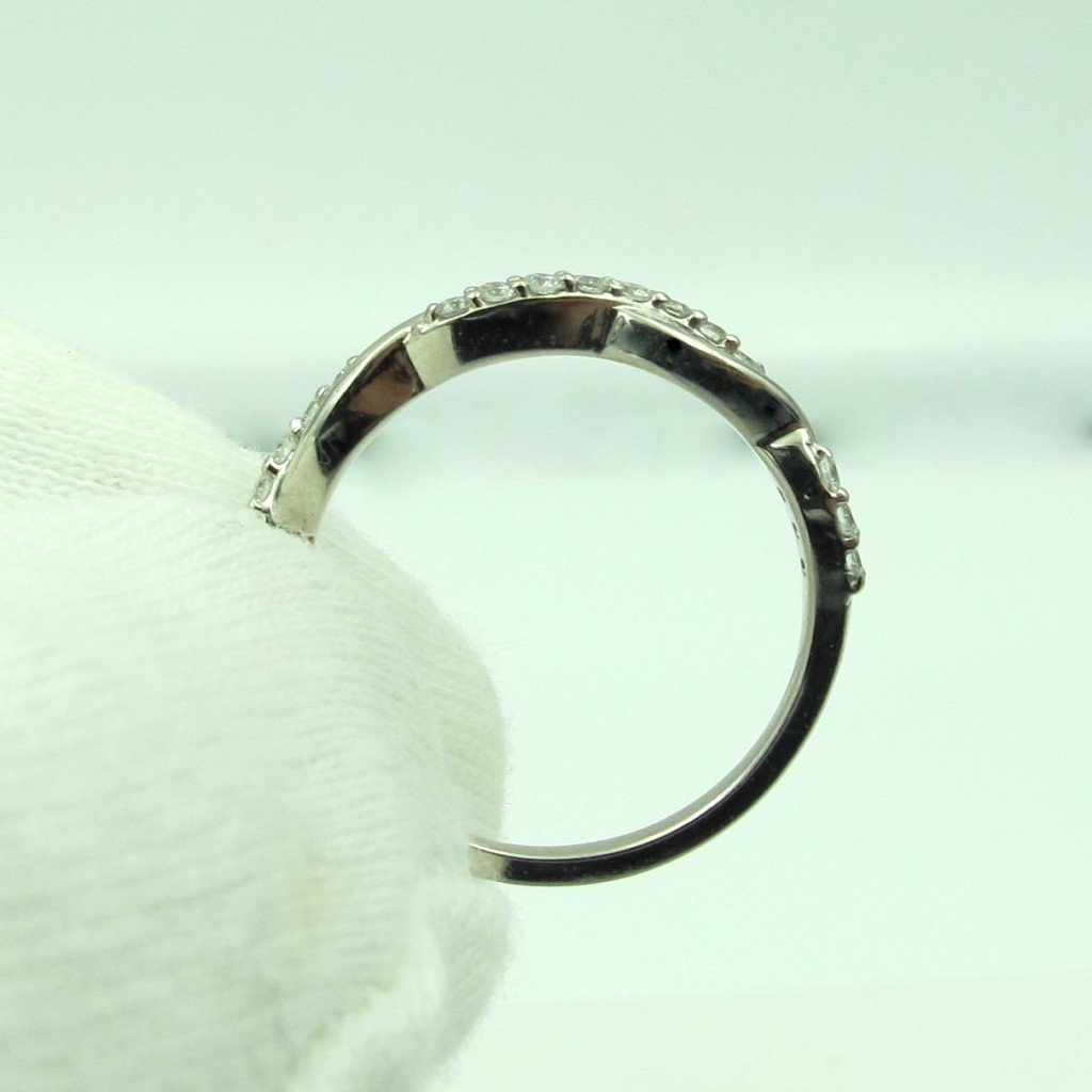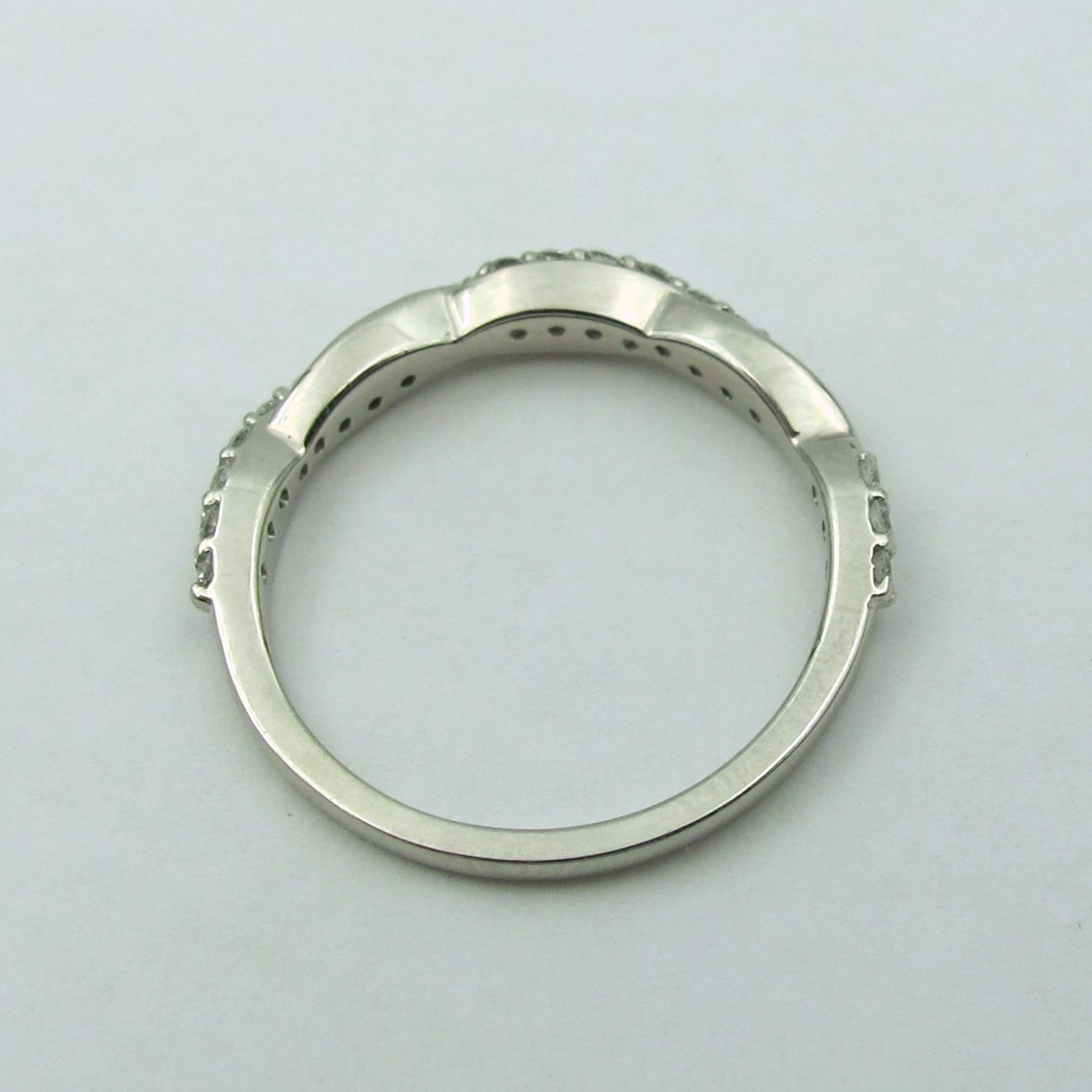 This diamond and platinum wedding band is part of a custom set, and his band matches too! They are all set to appear as if the bands twist around one another.