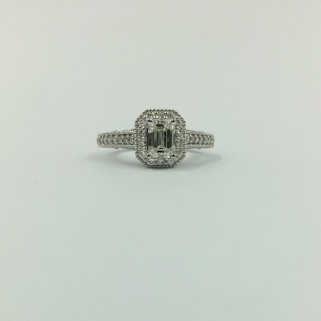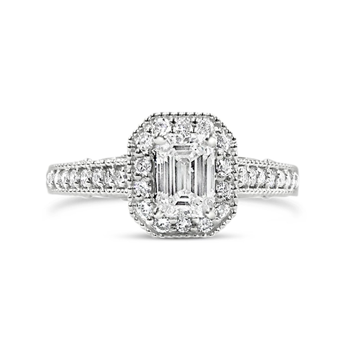 Tags Emerald Cut Diamond, Engagement Ring, Halo, Scrollwork, Vintage