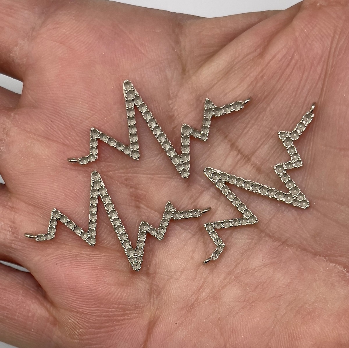 14K White Gold Necklace Made In The Shape Of EKG Heartbeat, And Set With Diamonds.