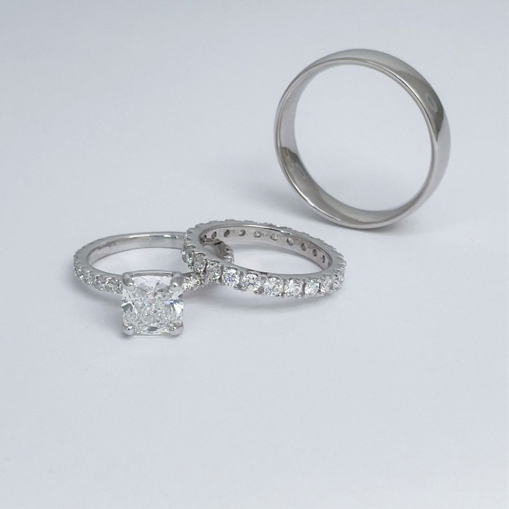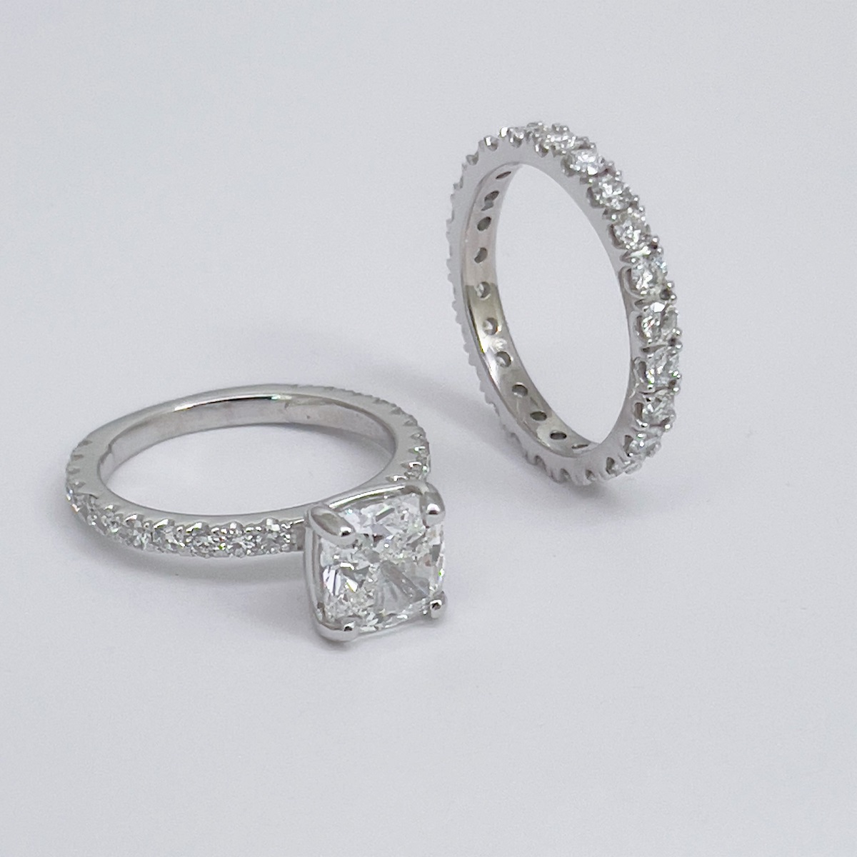 Platinum Eternity Wedding Band Set With Natural Round Brilliant Diamonds