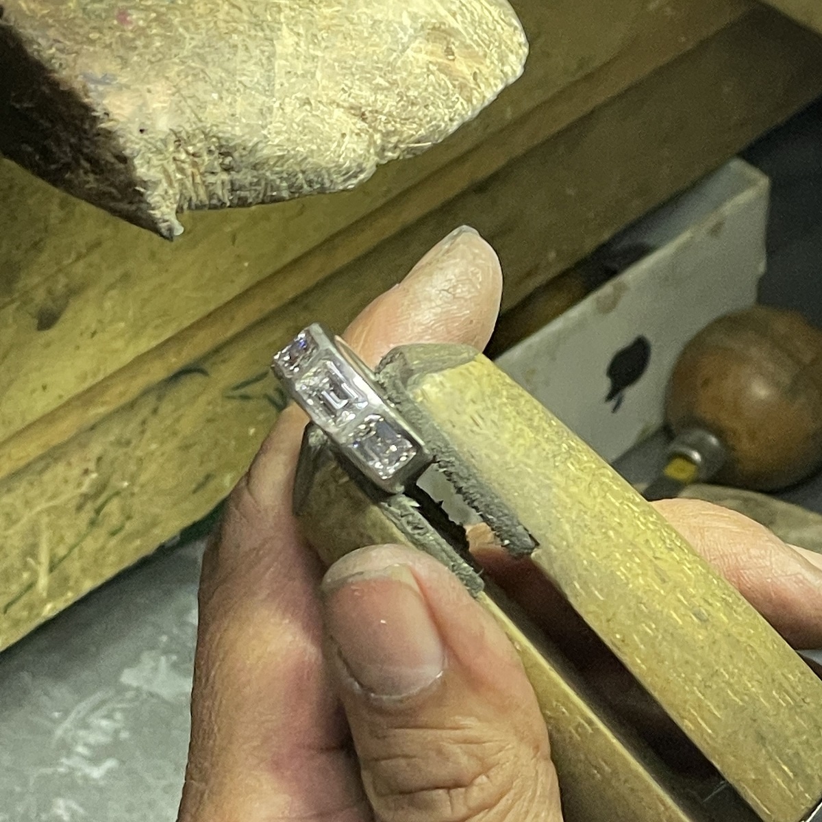 Tags Burnished, Desire, Diamond, Elegant, emerald cut, Handcrafted, Multi-Stone, personal jeweler, Platinum, Ring