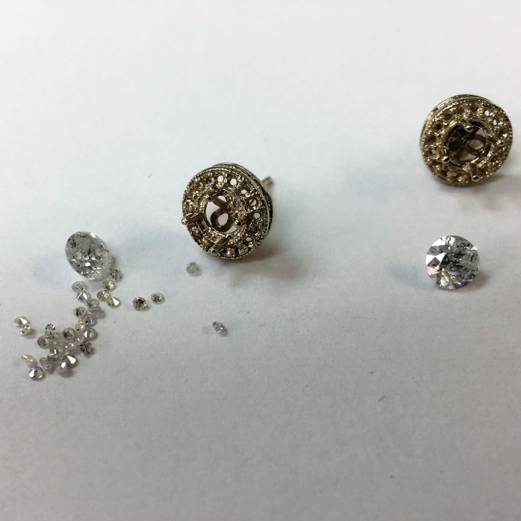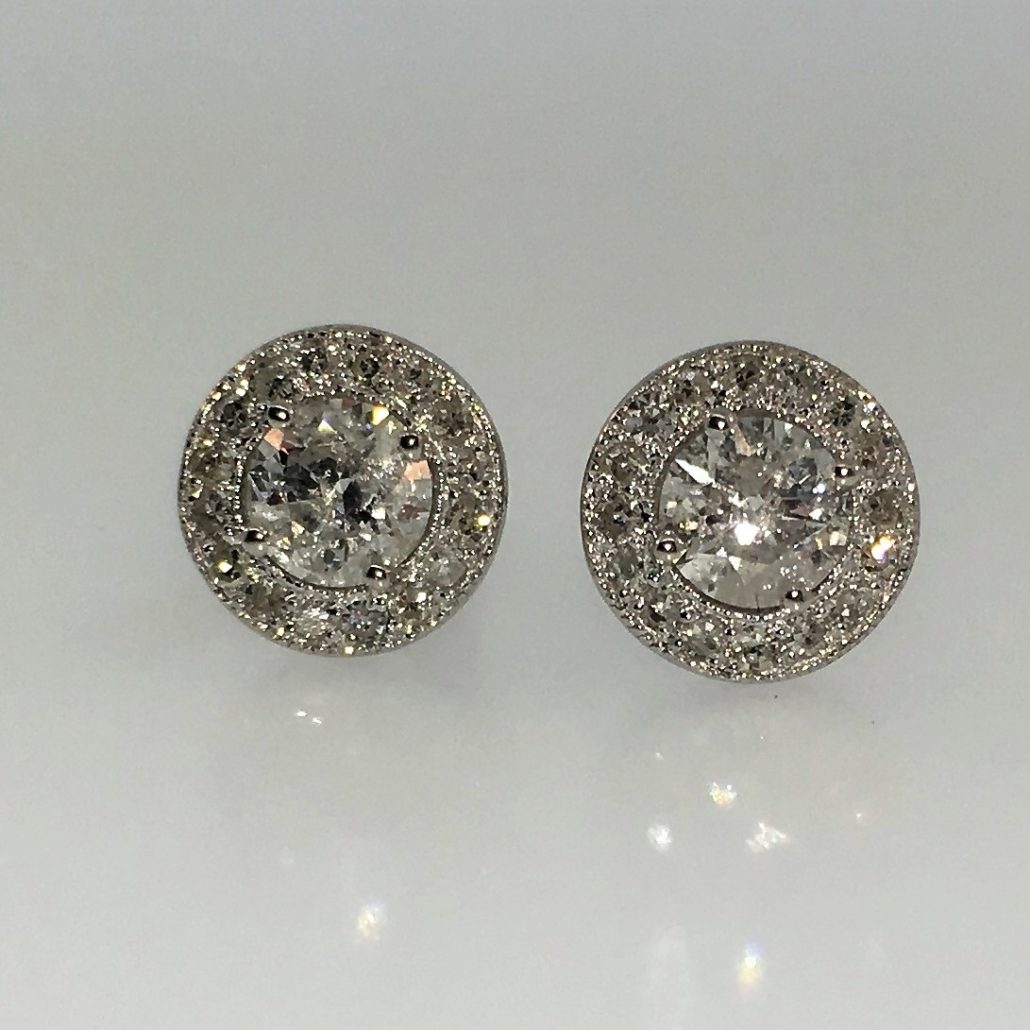 Tags Cluster Stud, Custom Jeweler, Customer Owned Diamonds, Diamond Cluster Studs, Grants Jeweler, Halo, made to order, One-Of-A-Kind, Redesign, Remake