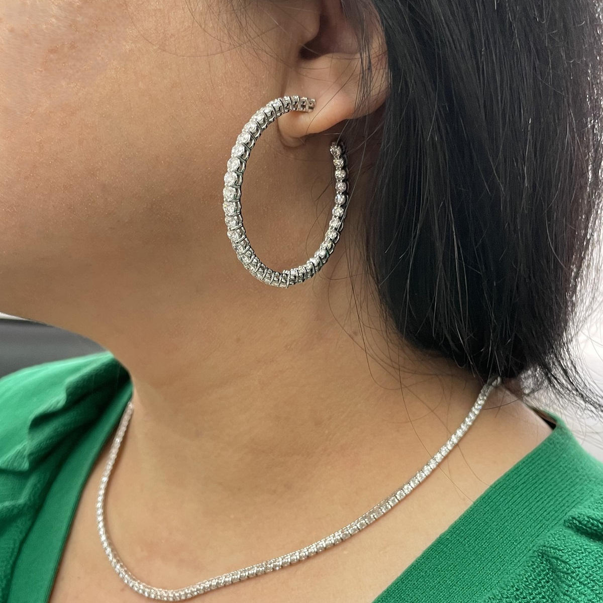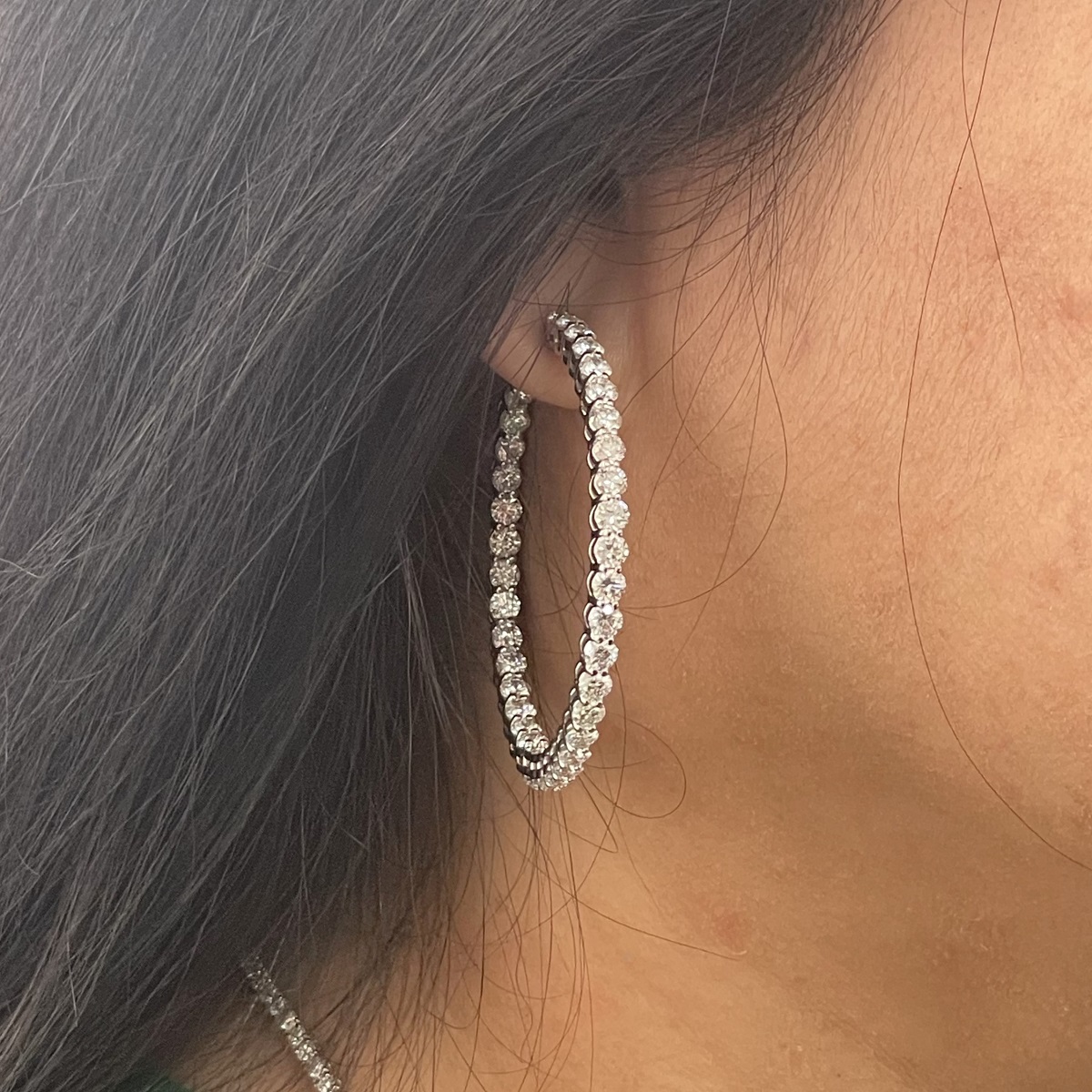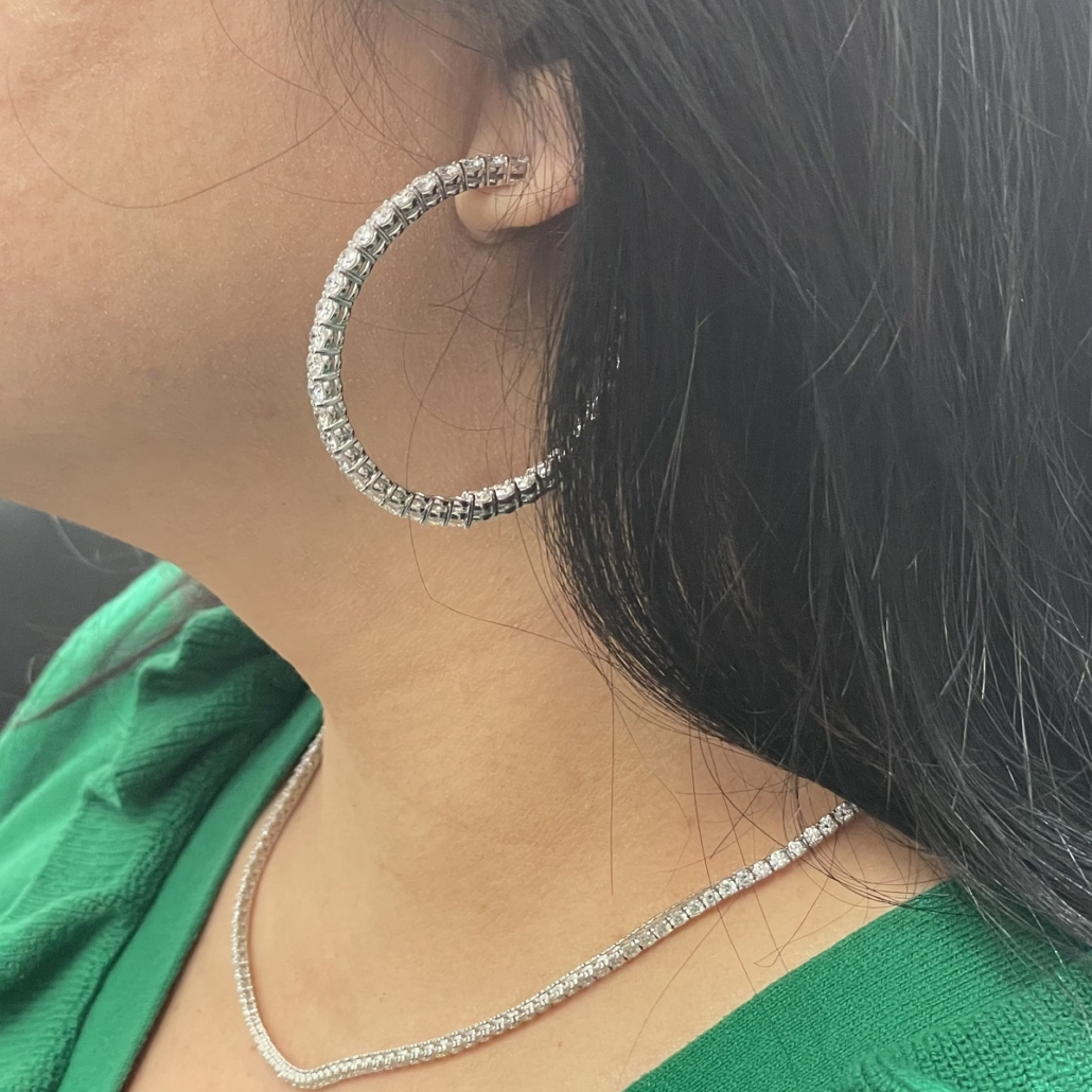 Tags 14k White, Desire, Diamond, Elegant, Forward Facing, Handcrafted, Hoops, Inside Out, Large Earrings, NYC Jewelry, Open Airline, Share Prongs