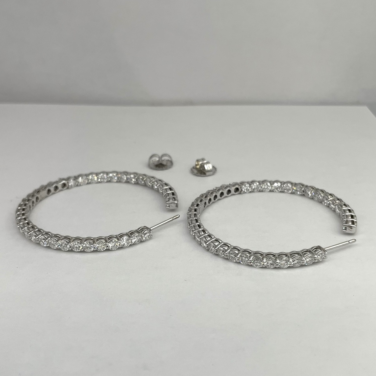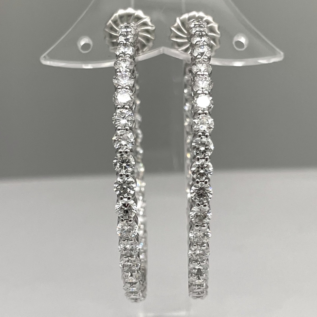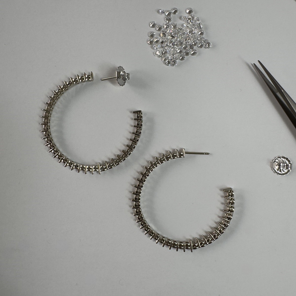 Tags 14k White, Desire, Diamond, Elegant, Forward Facing, Handcrafted, Hoops, Inside Out, Large Earrings, NYC Jewelry, Open Airline, Share Prongs