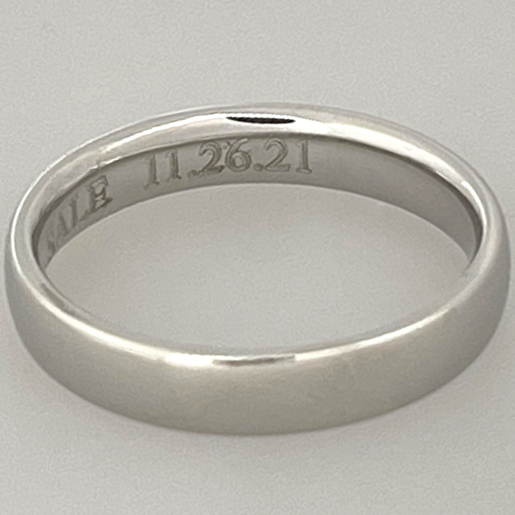 This man’s platinum wedding band is a 3.5mm low-dome band.