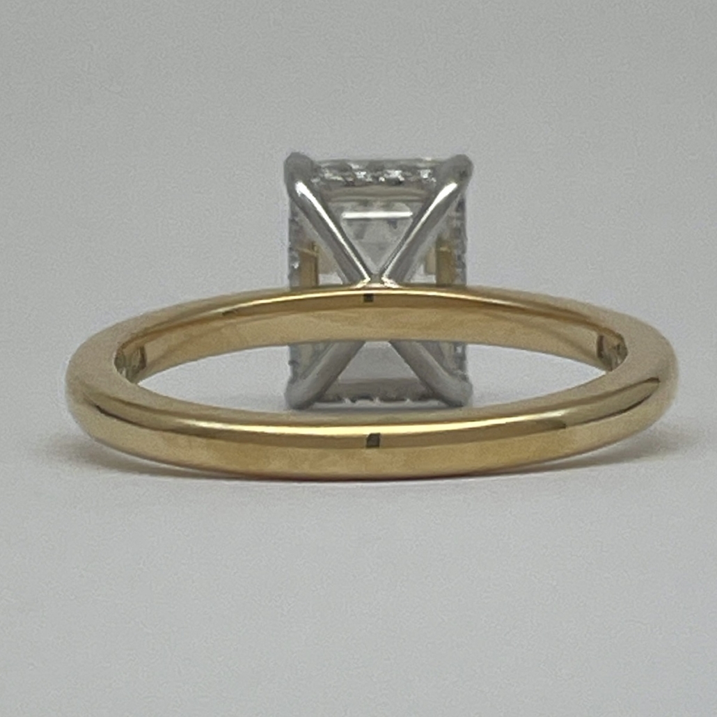 Tags 18k Yellow, Classic, Diamond, emerald cut, engagement, Four Prong, Halo, Platinum, Shared Prongs. Hidden