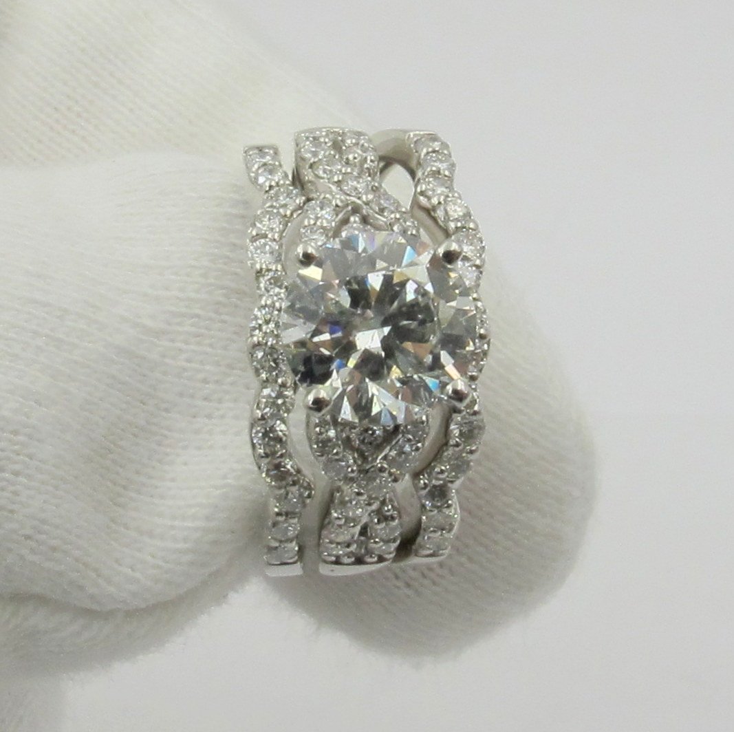 Tags 14k White, Diamond, Elegant, engagement, Pave Set, Ring, Shank, Split Shank, Stones On Shank, Twist Shank