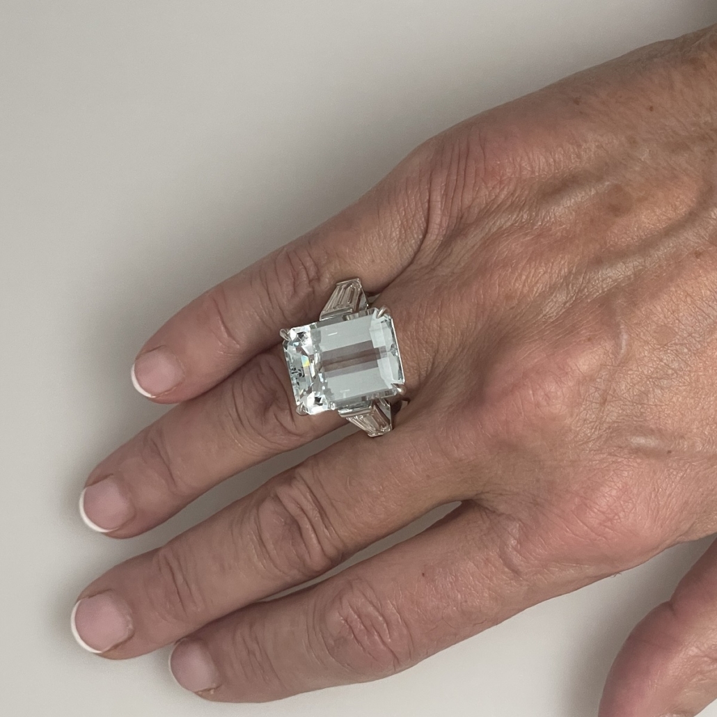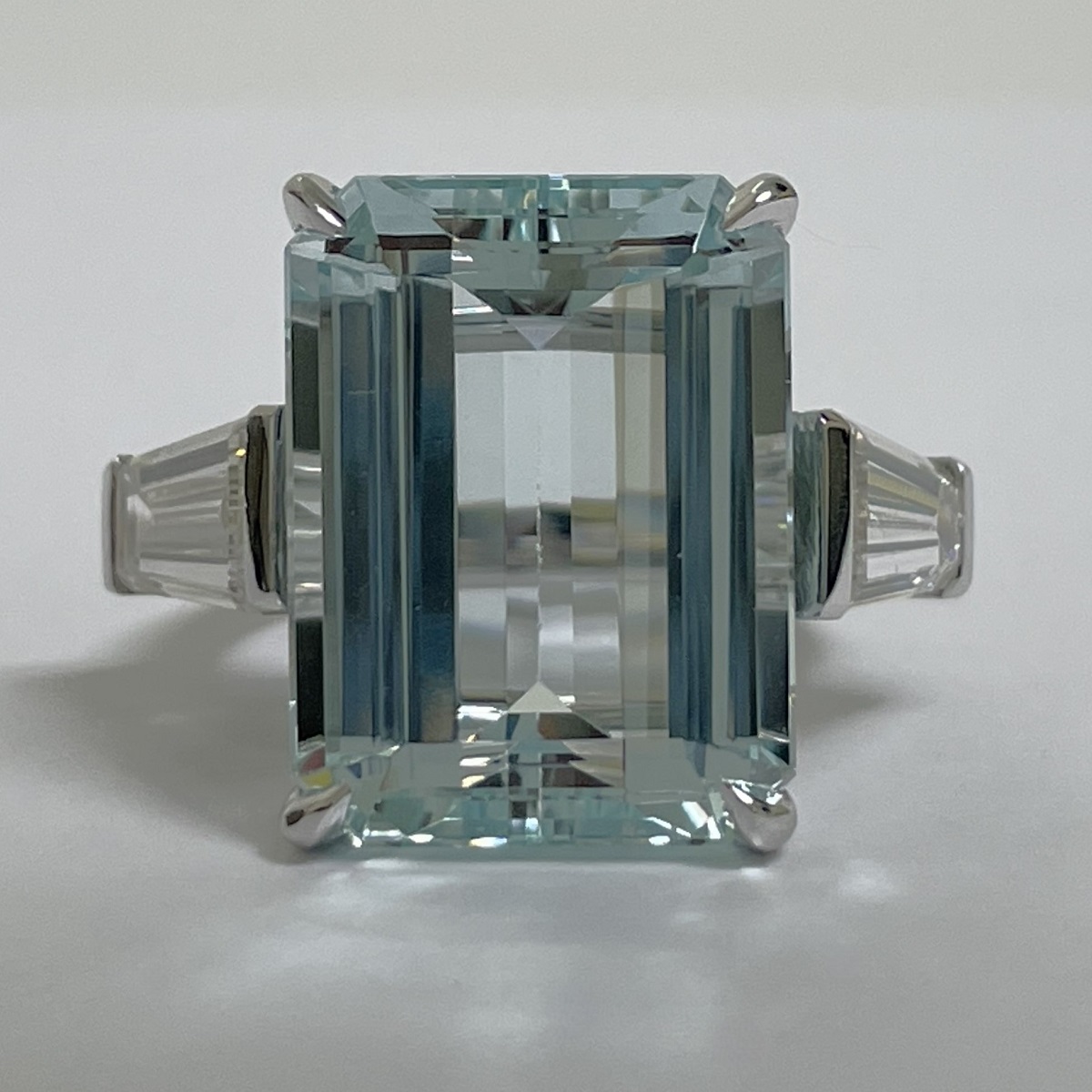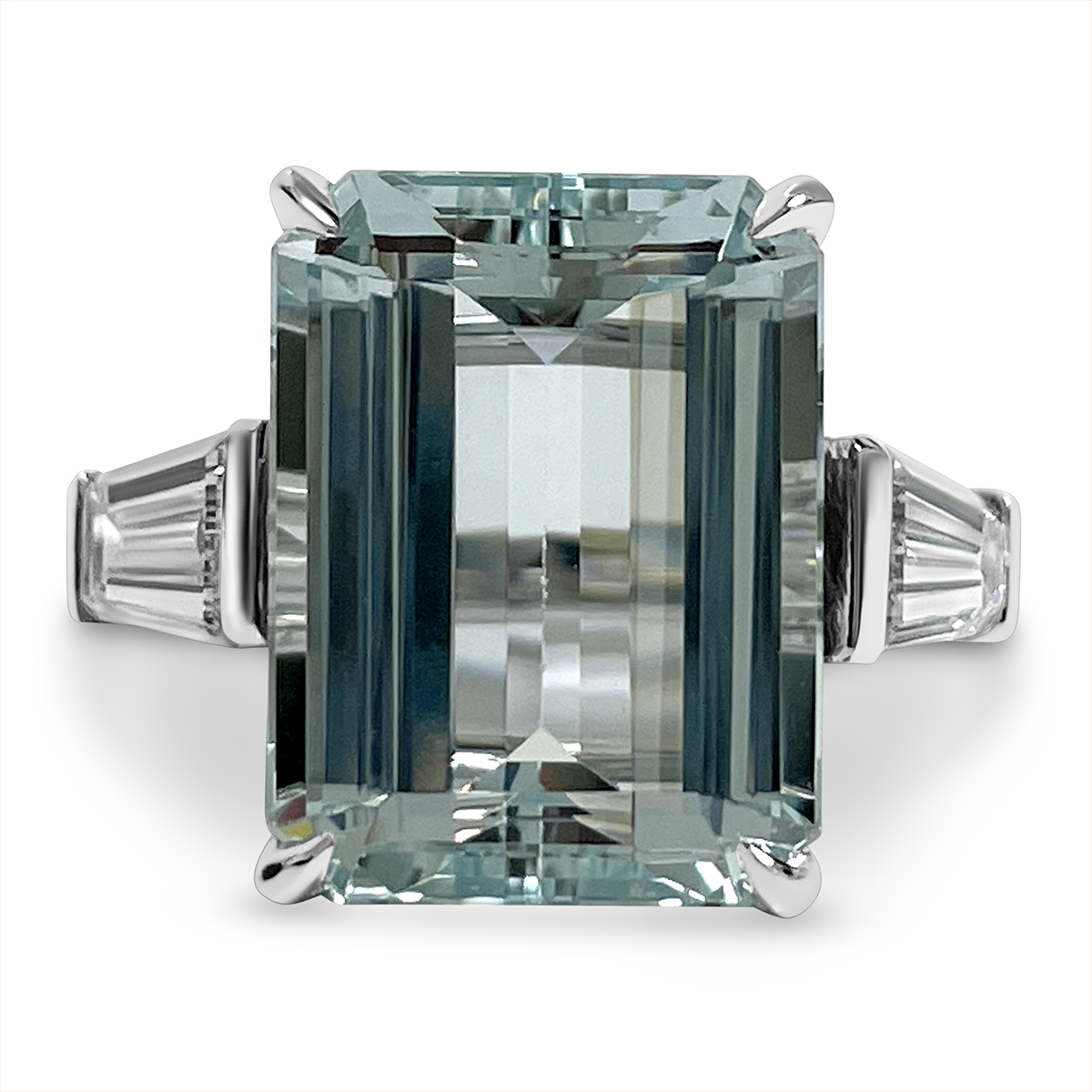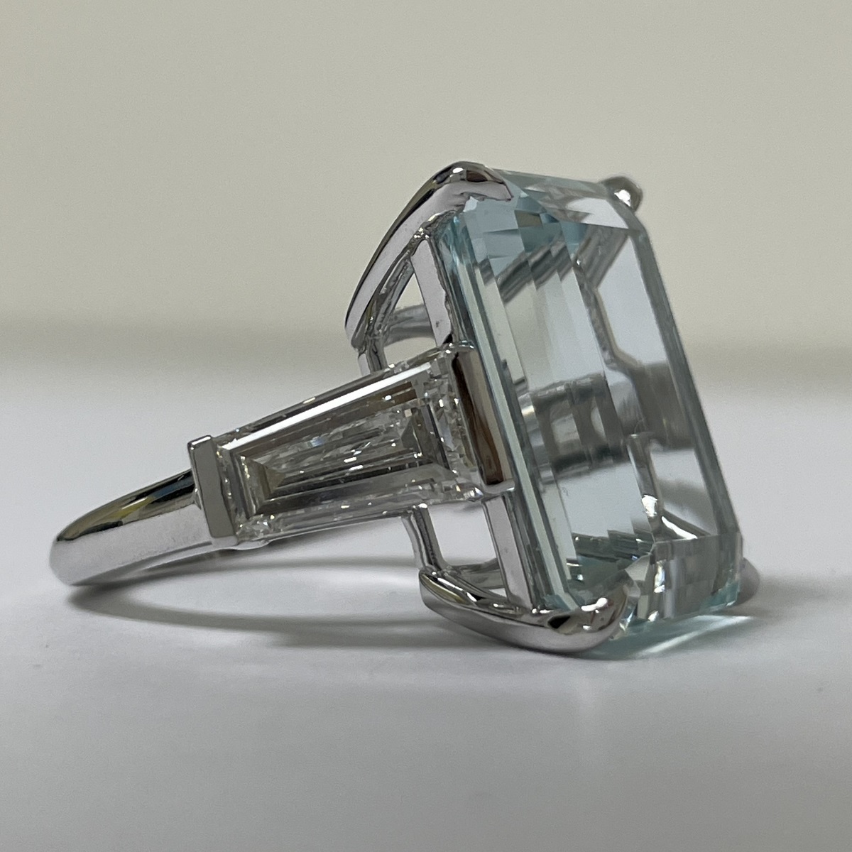 Tags 14k White Gold, Aquamarine, Art Deco, Cocktail, Diamond, gemstone, One-Of-A-Kind, Tapered Baguettes